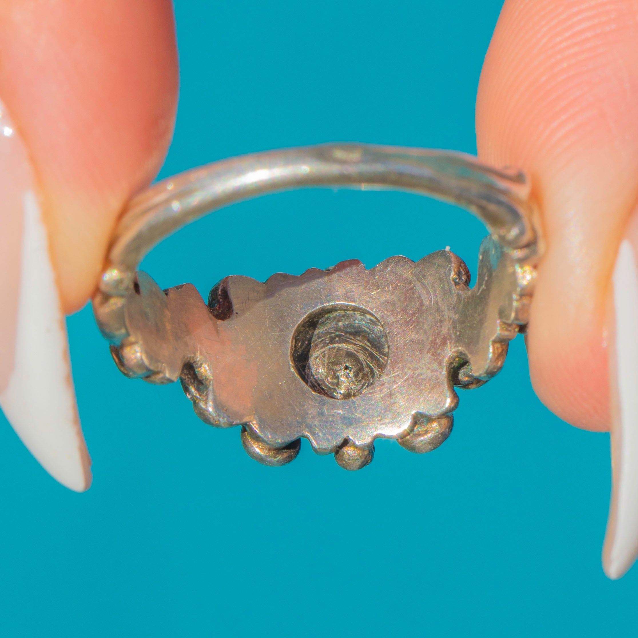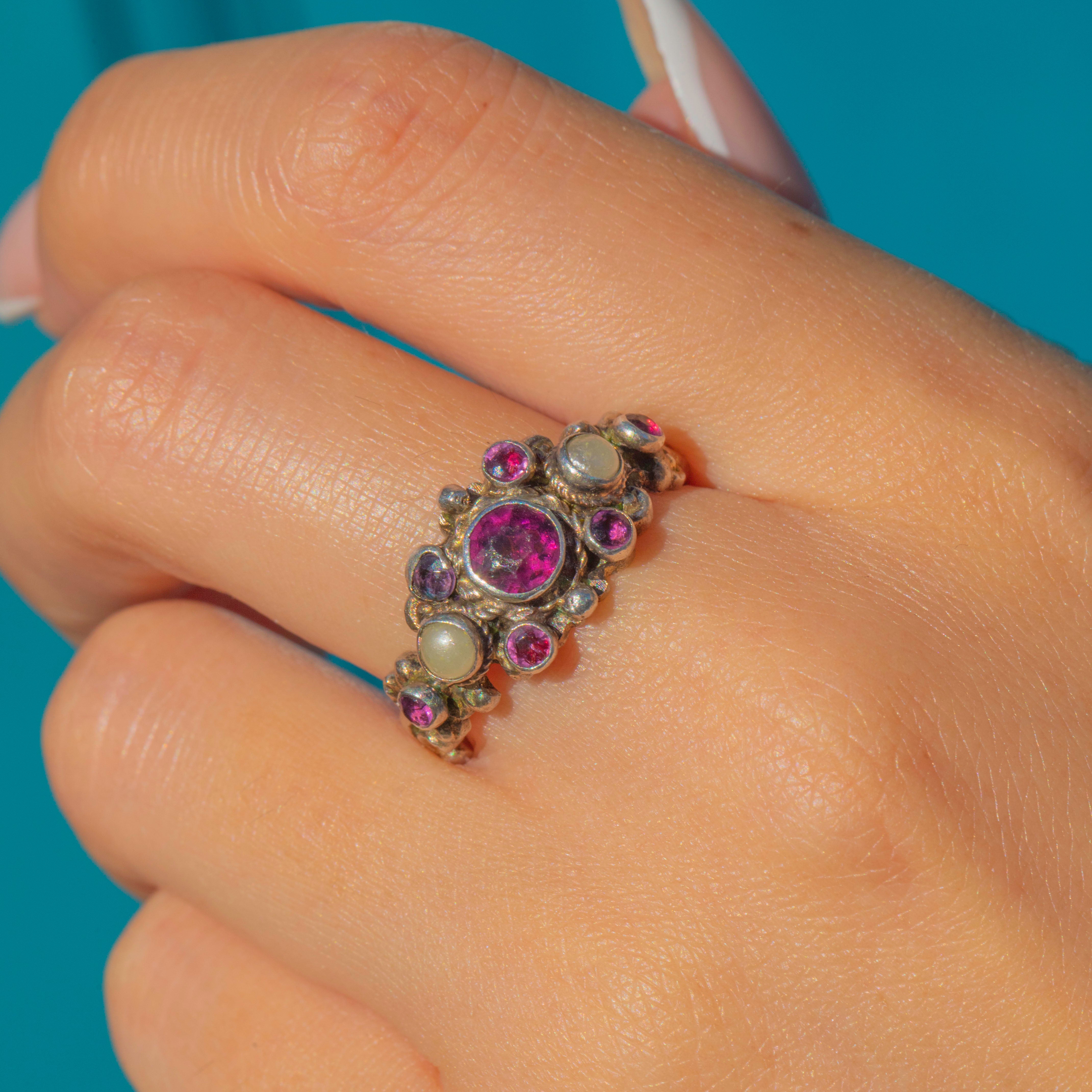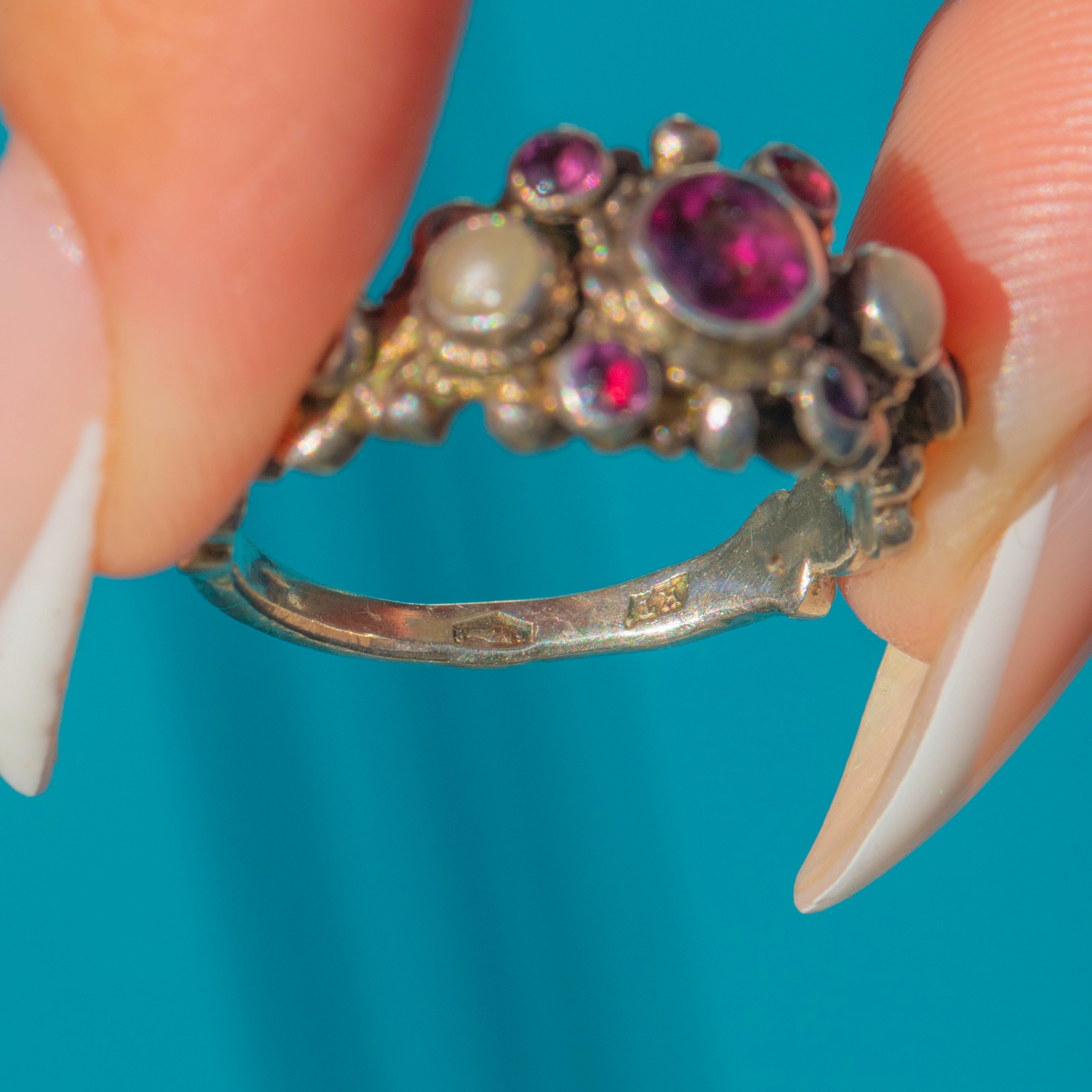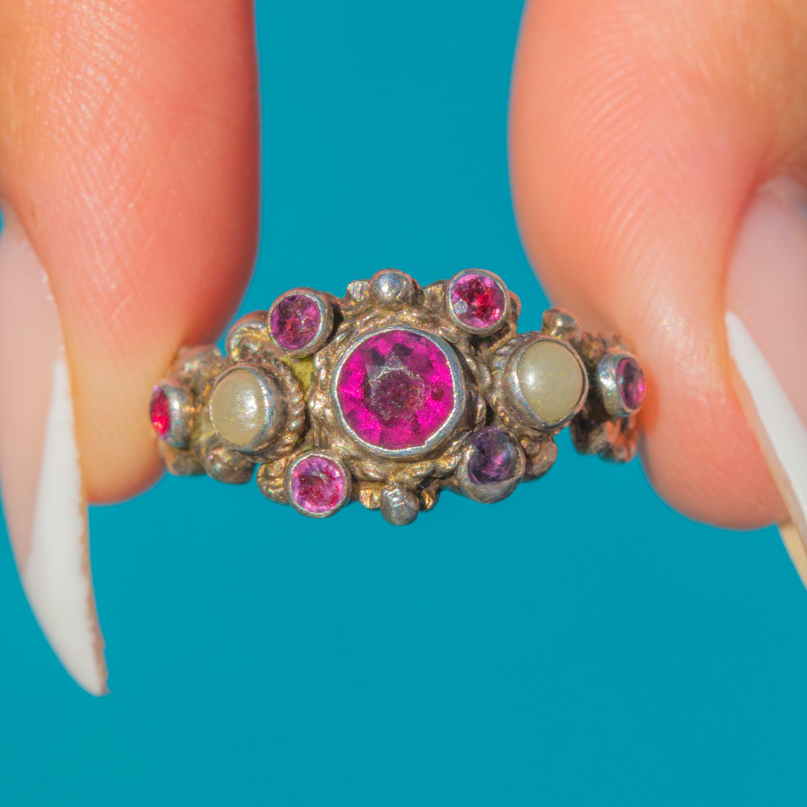 Austro Hungarian Silver Garnet Pearl Ring c.1900