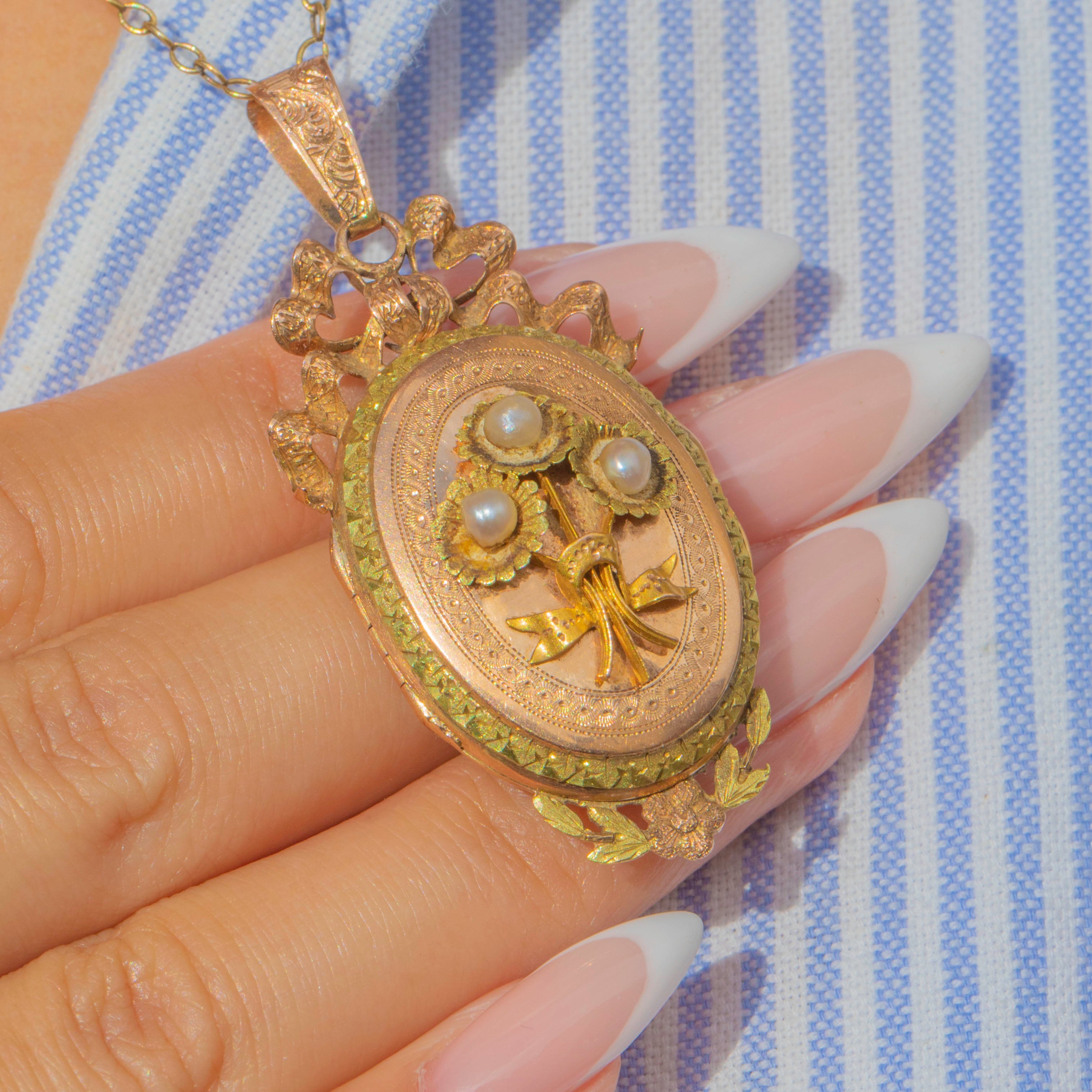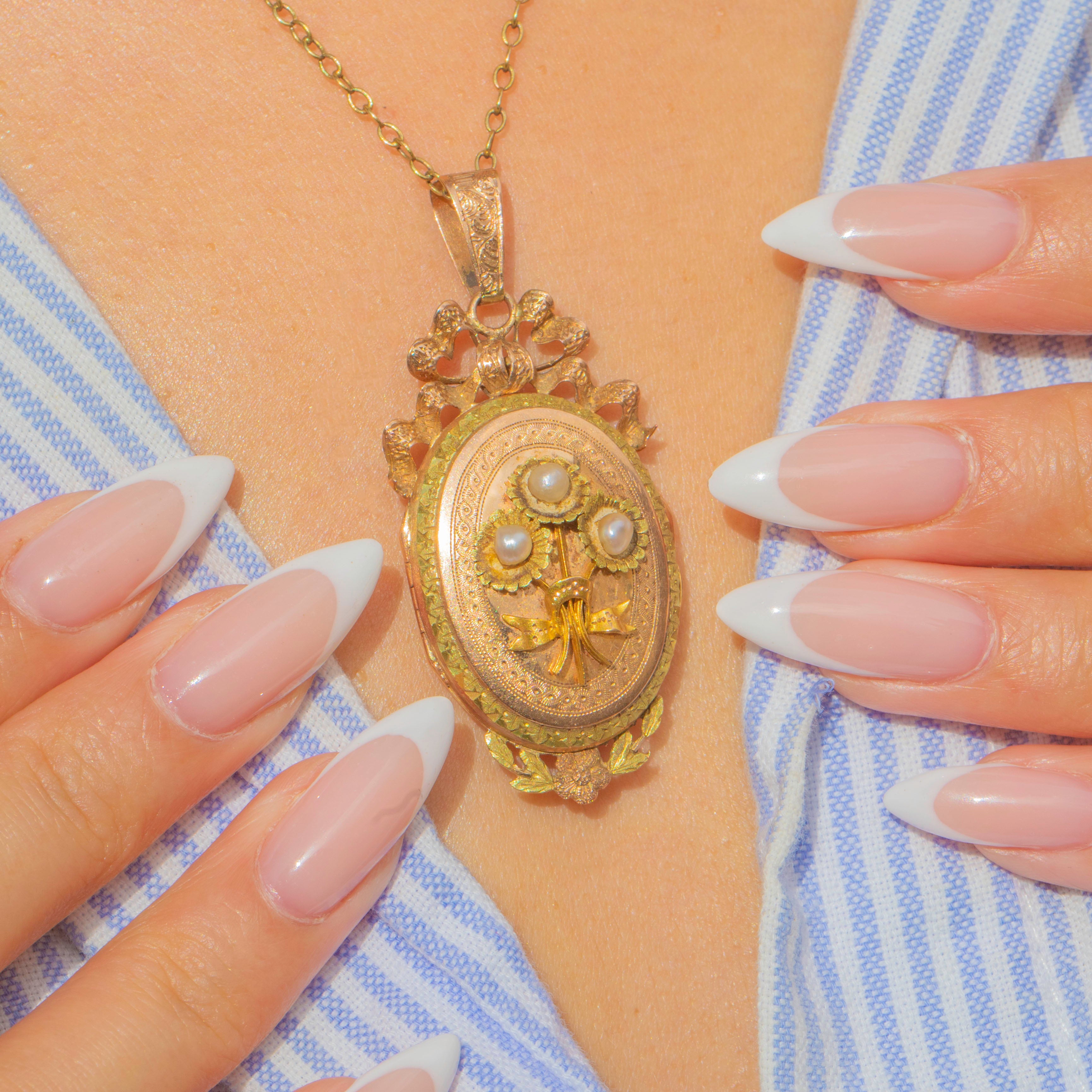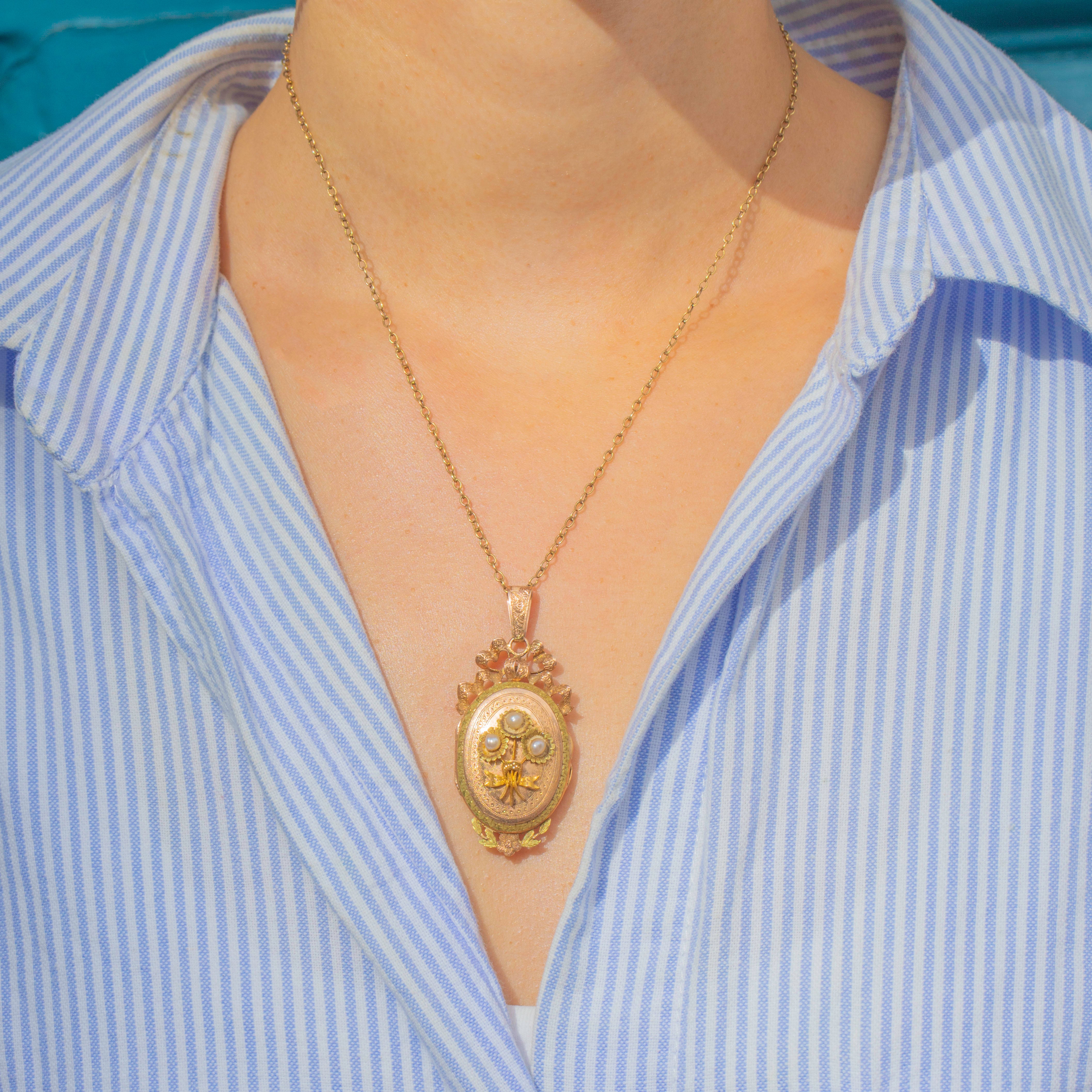 Belle Époque French 18ct Gold Pearl Locket Pendant, c.1900