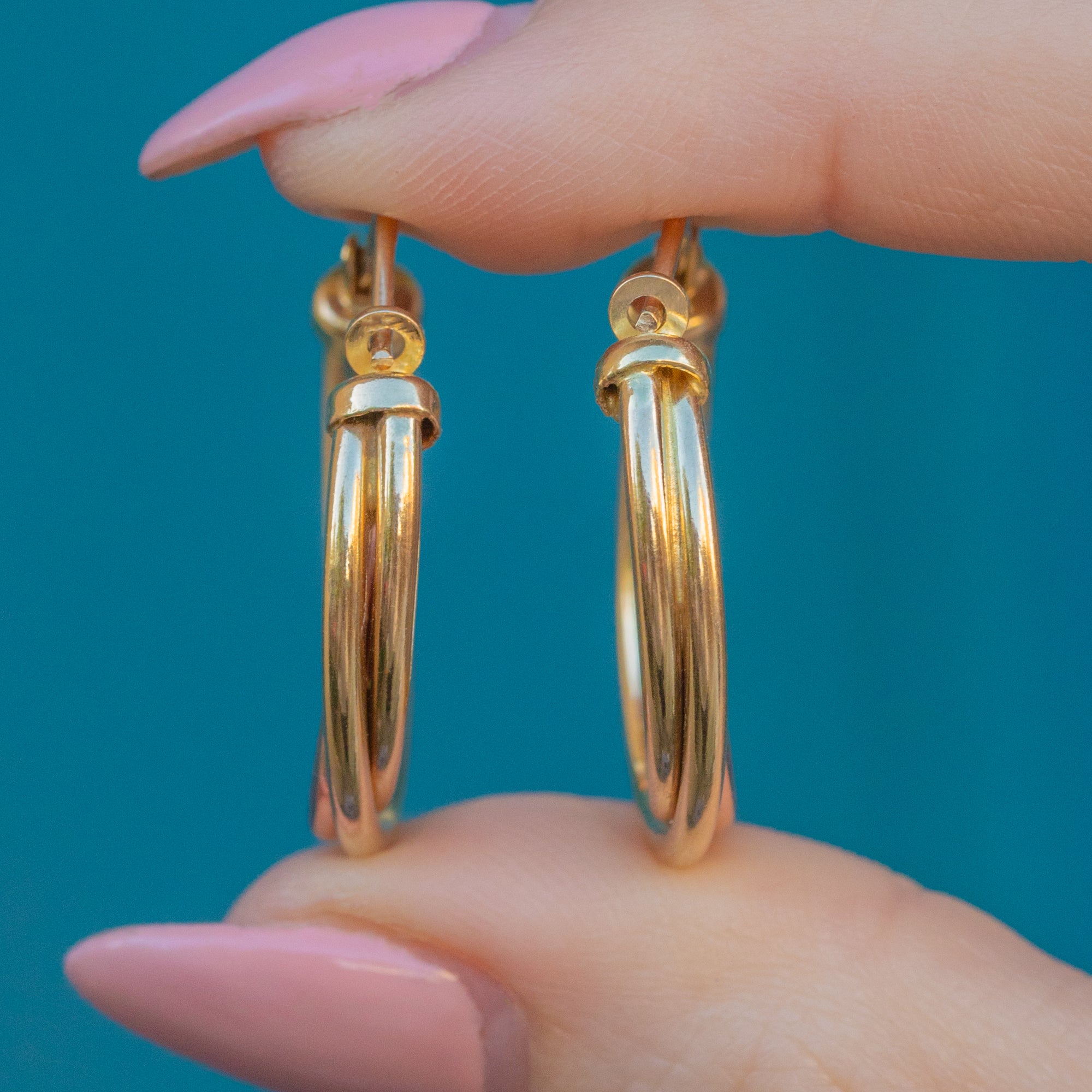 Crafted from buttery 9ct yellow and warm rose Gold forming their circular shape, these Vintage earrings add a twist to the traditional Gold hoop earring. The perfect size for everyday wear, you'll be reaching for these Vintage hoops often!