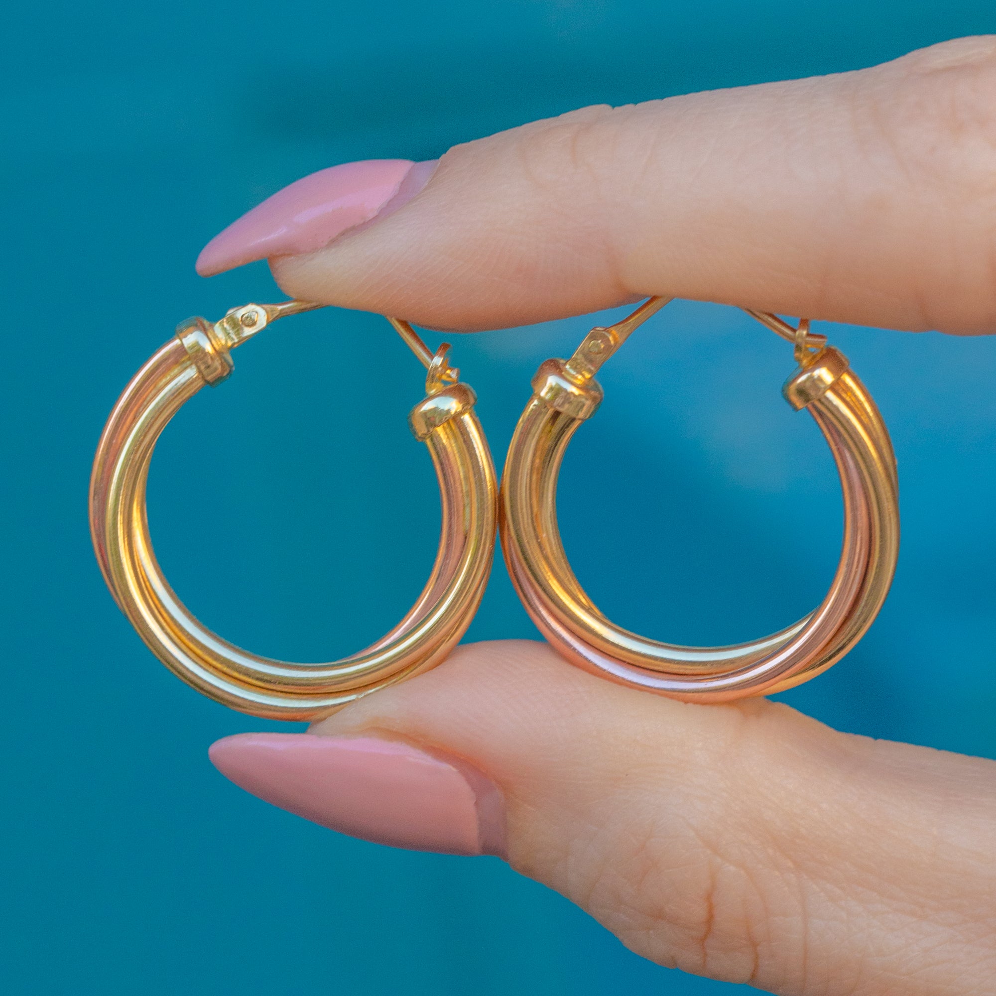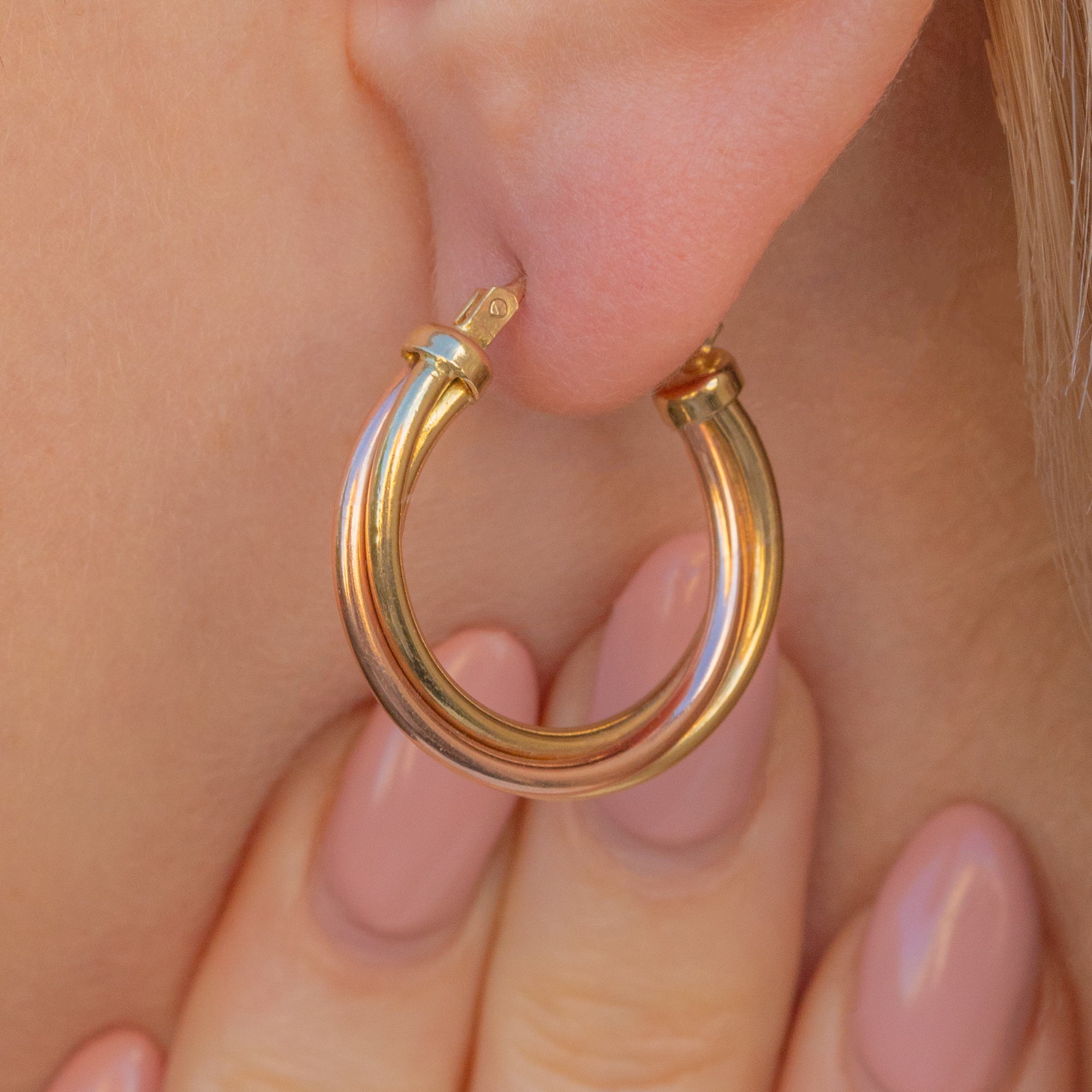 Make your jewellery staples stand out from the crowd with these bi-colour 9ct yellow and rose Gold hoop earrings!