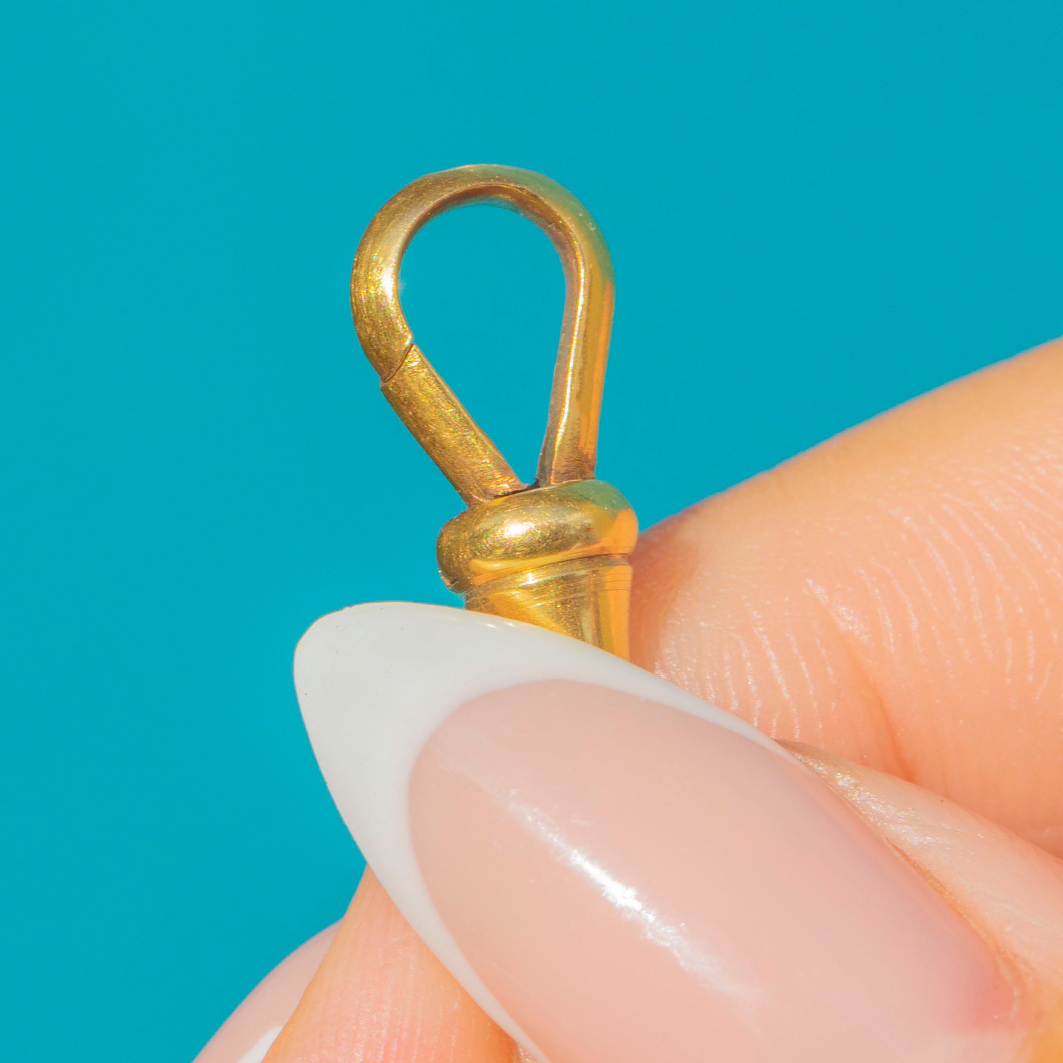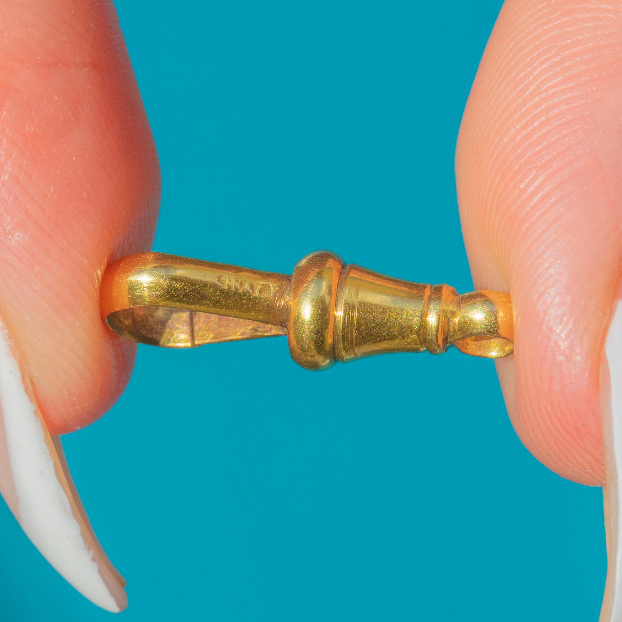 A classic antique 9ct Gold dog-clip clasp crafted in bright Yellow Gold. Dog-clips are highly sought after for their practicality and versatility, perfect for attaching pendants, charms, or converting into a clasp for chains and bracelets.