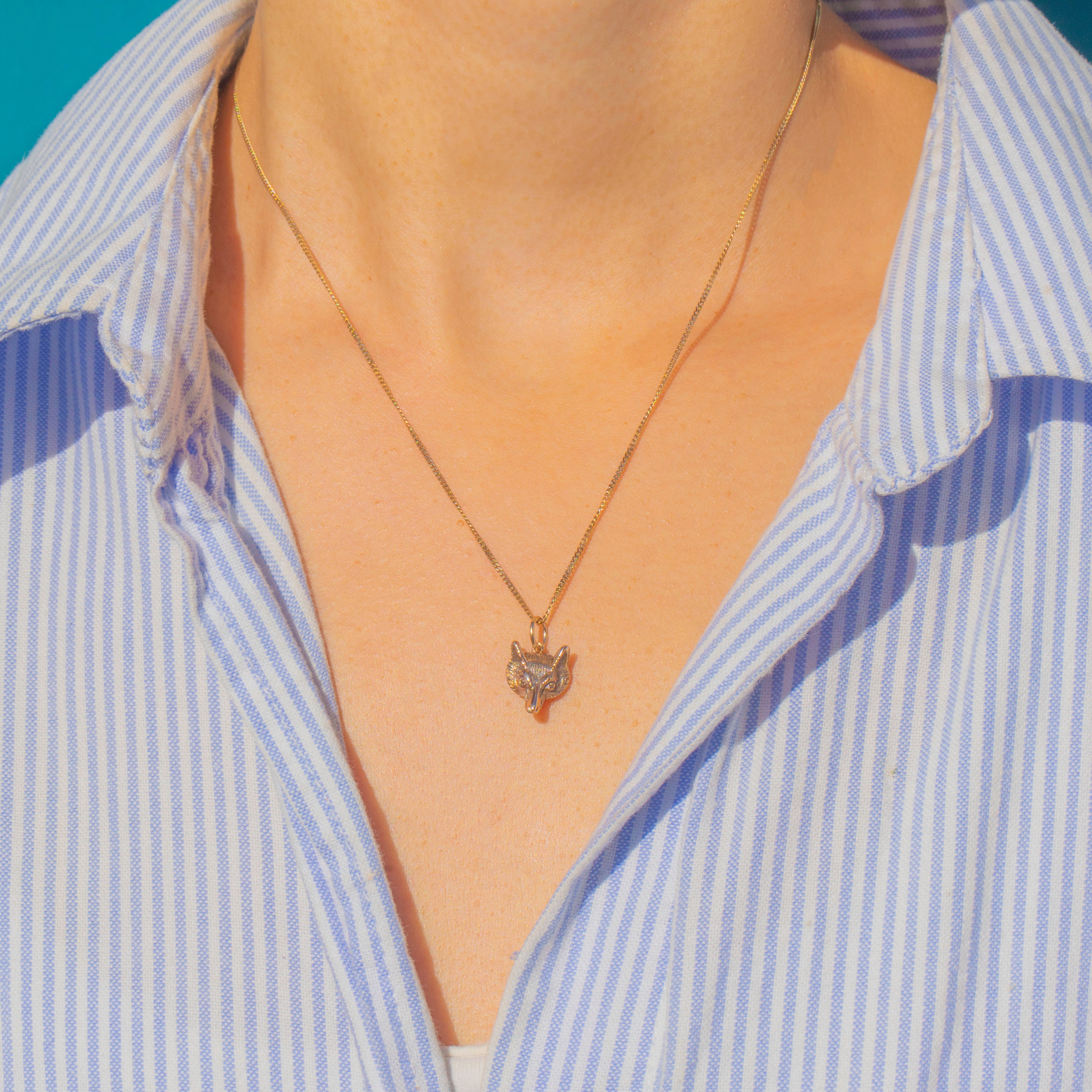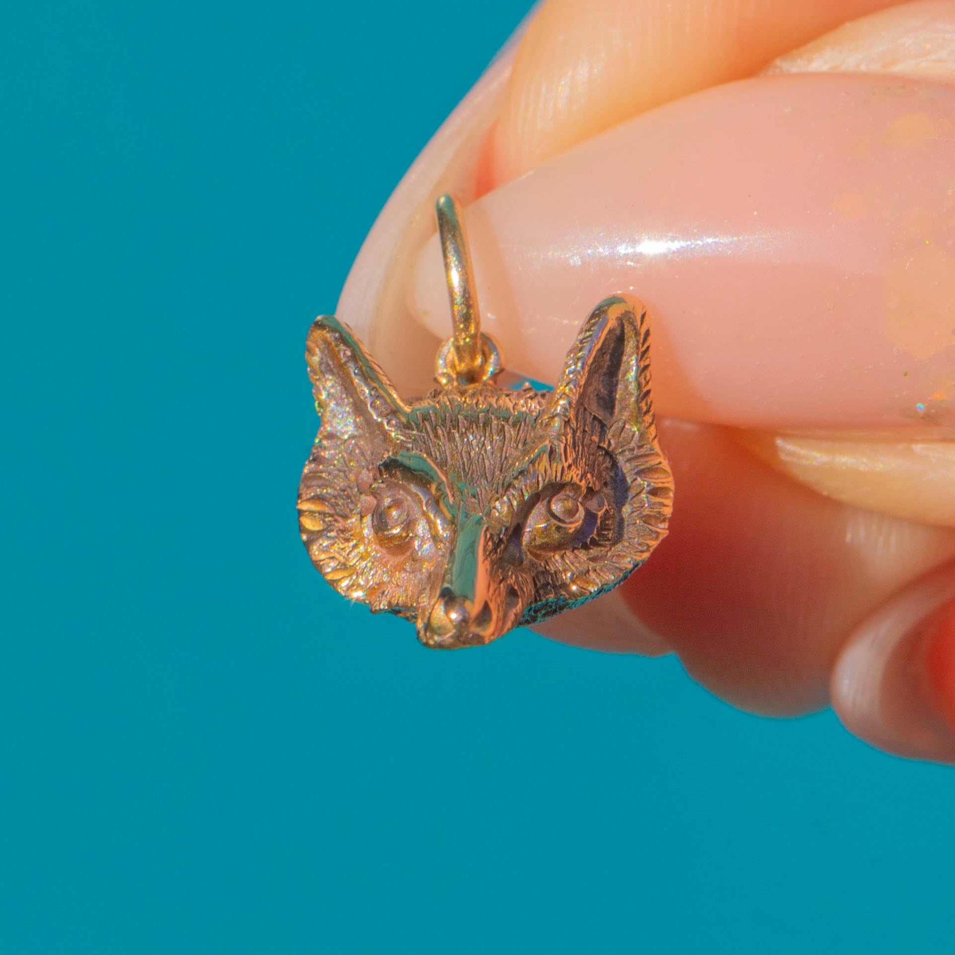 This antique charm depicts the head of a fox, finely crafted in solid 9ct Gold. The detail is beautifully rendered, from the pointed ears to the textured fur and alert eyes, giving the piece a lifelike character.