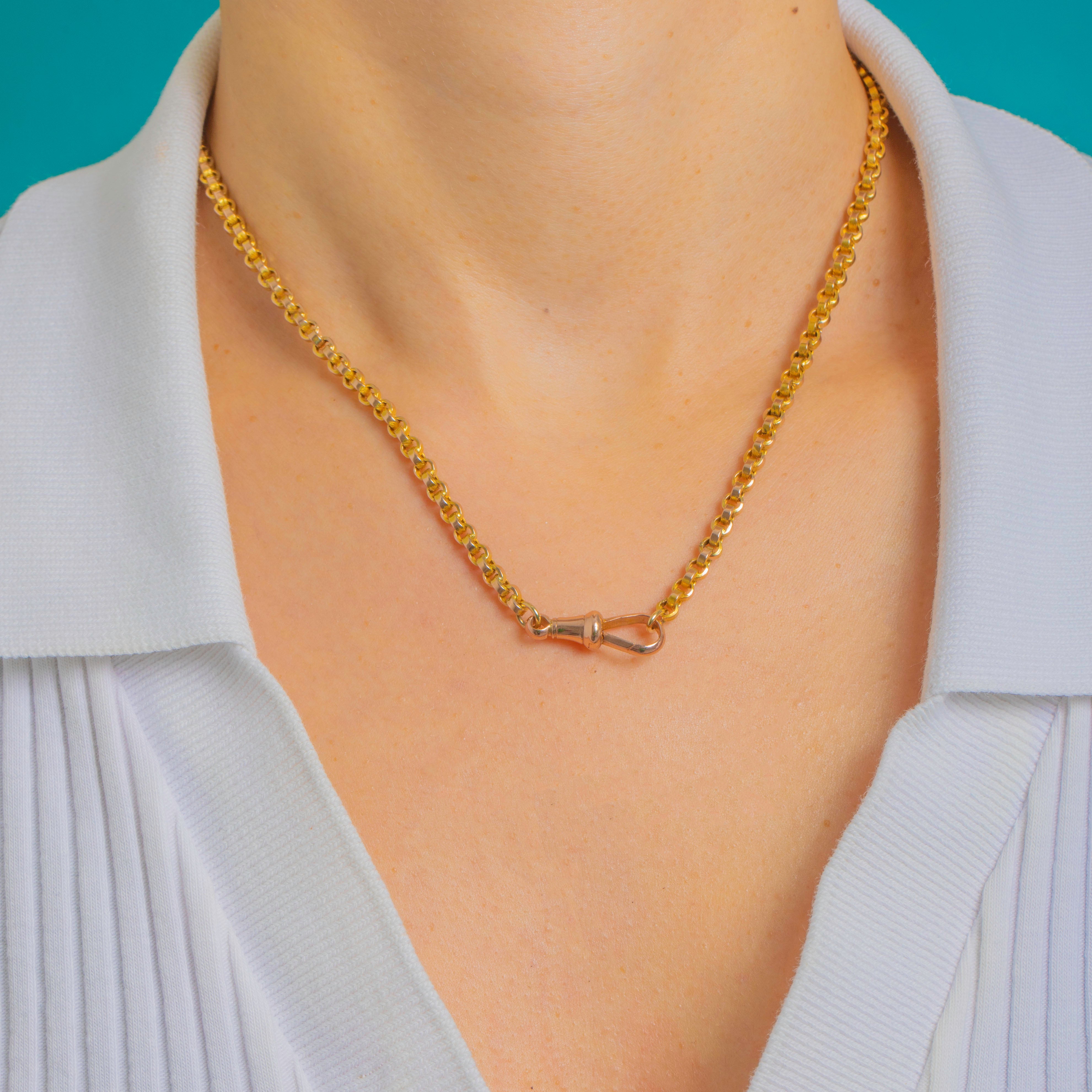 Chunky 18" Antique Bright Yellow 9ct Gold Chain with Dog-Clip