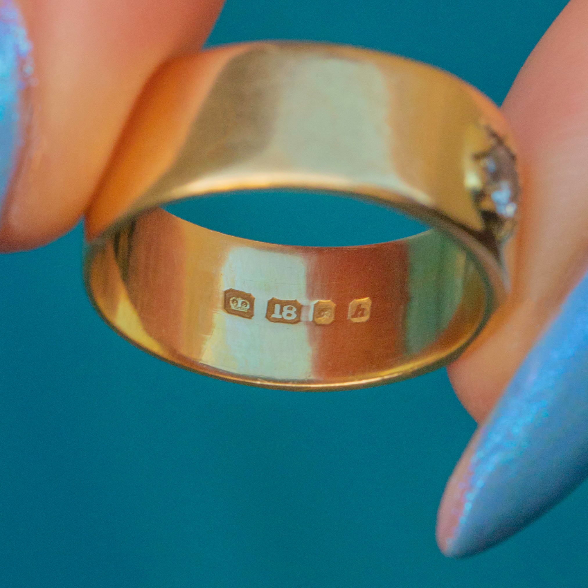 EXCELLENT. This chunky 18ct Gold star-set ring is in excellent condition. Her Gold has a lovely saturation and is free from any visible signs of wear. A natural Diamond is set securely within her star setting, allowing for confident and comfortable wear. With little else to note, she is a must-have wardrobe staple!