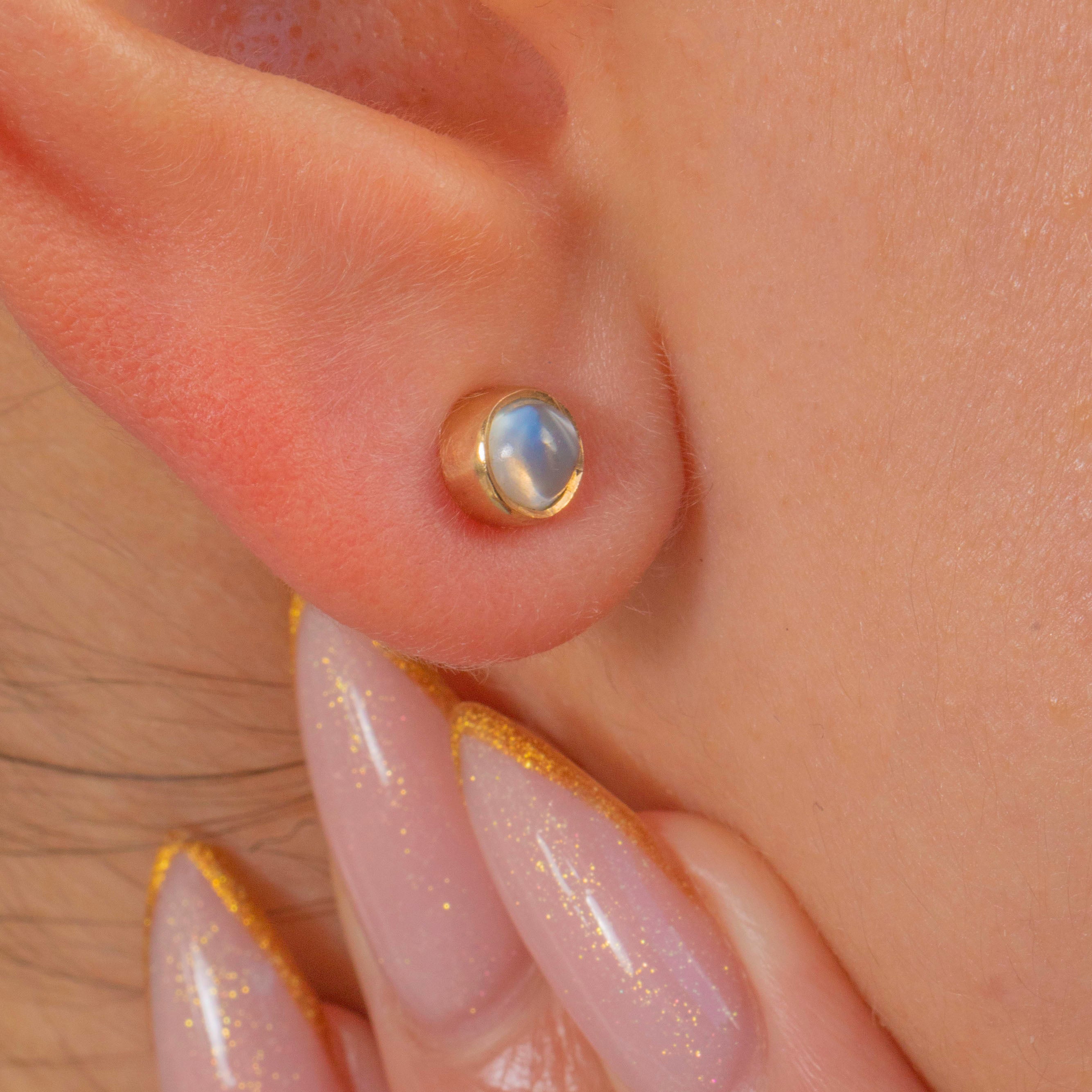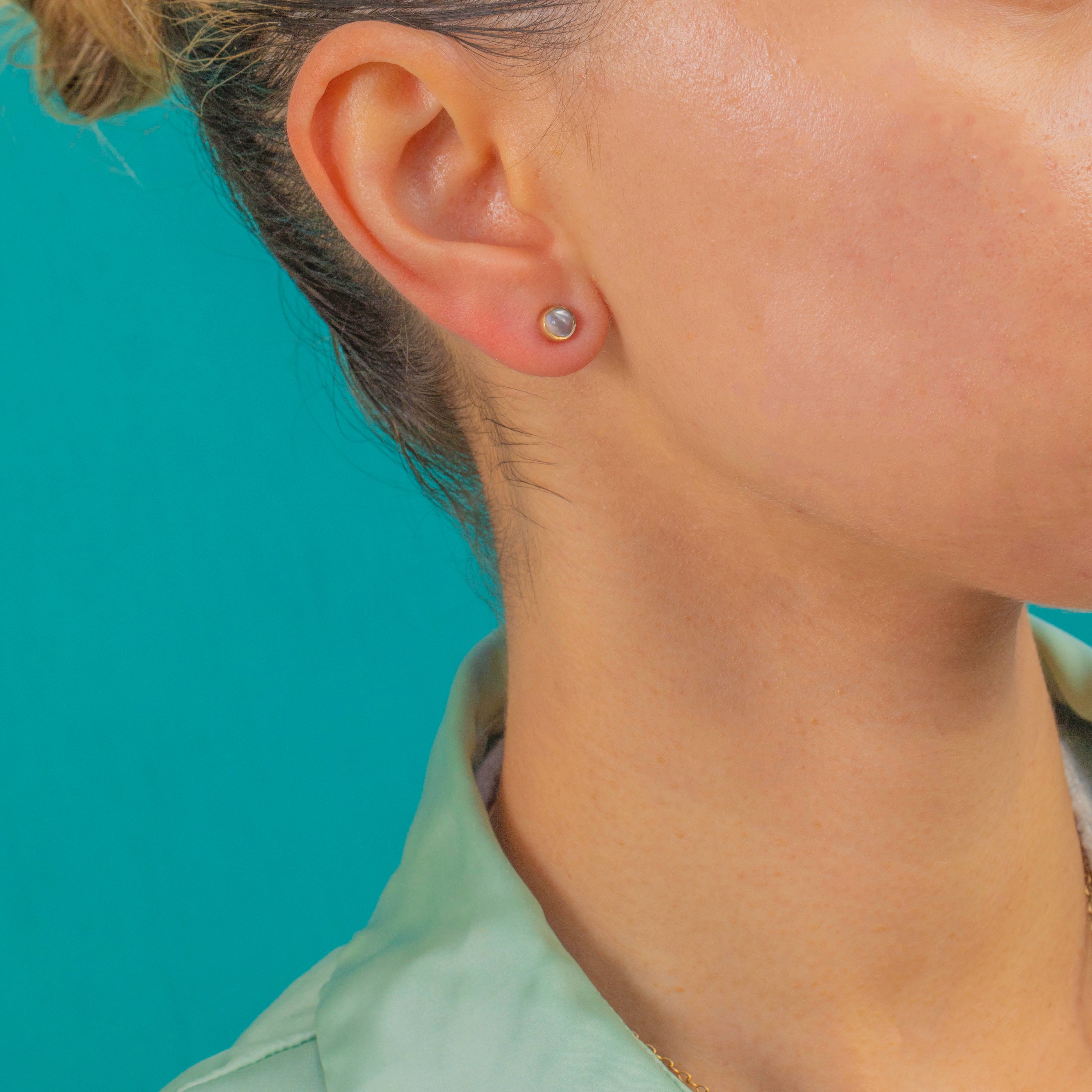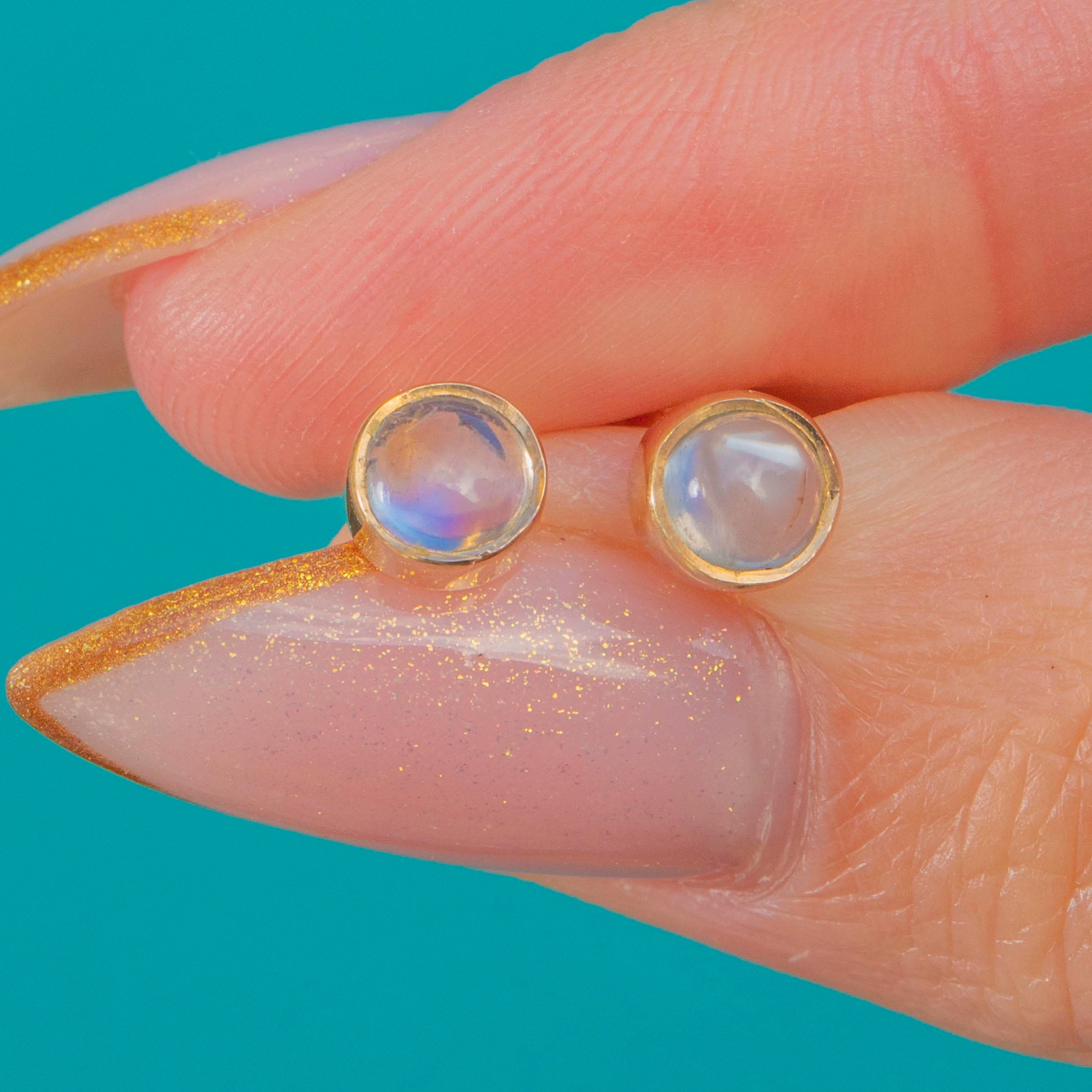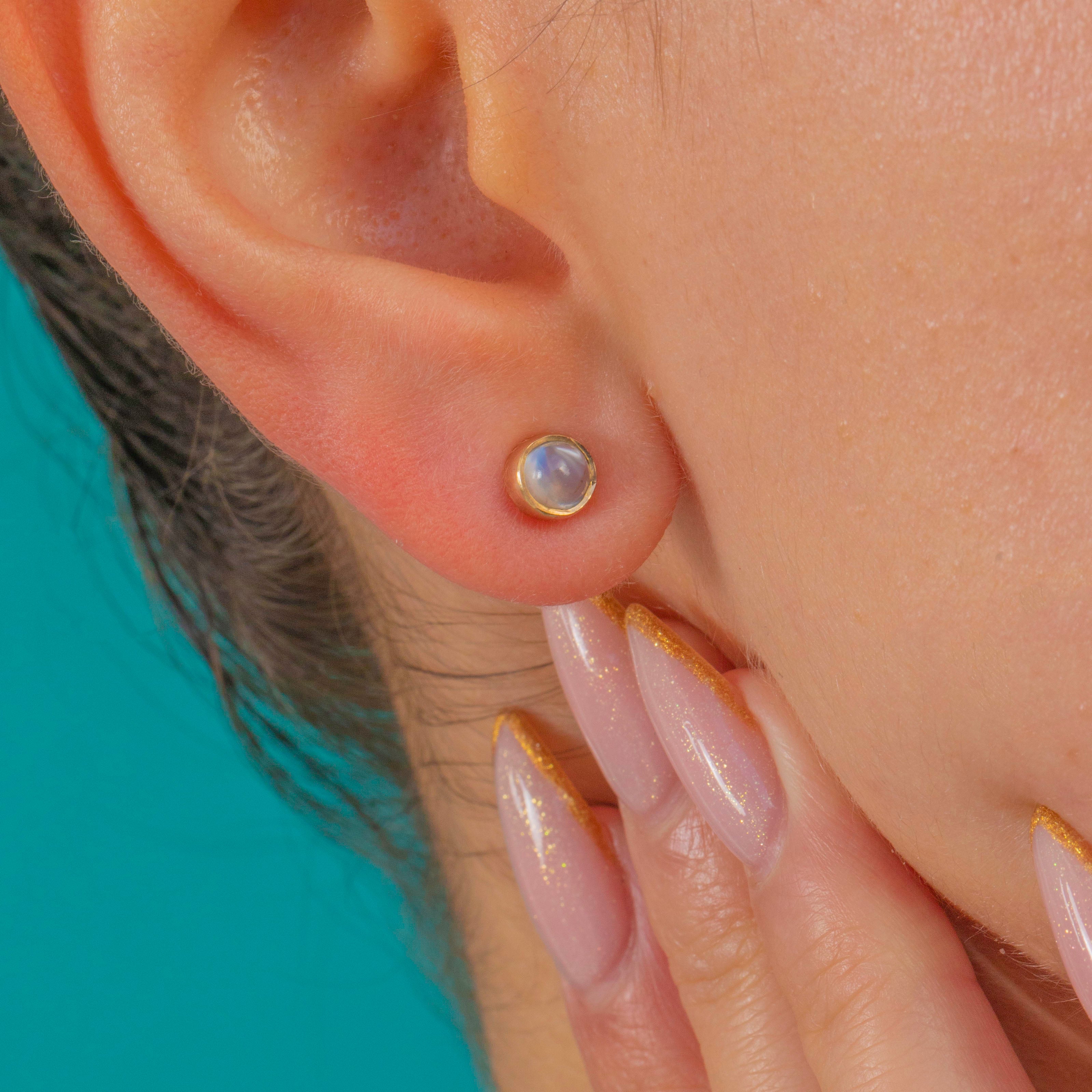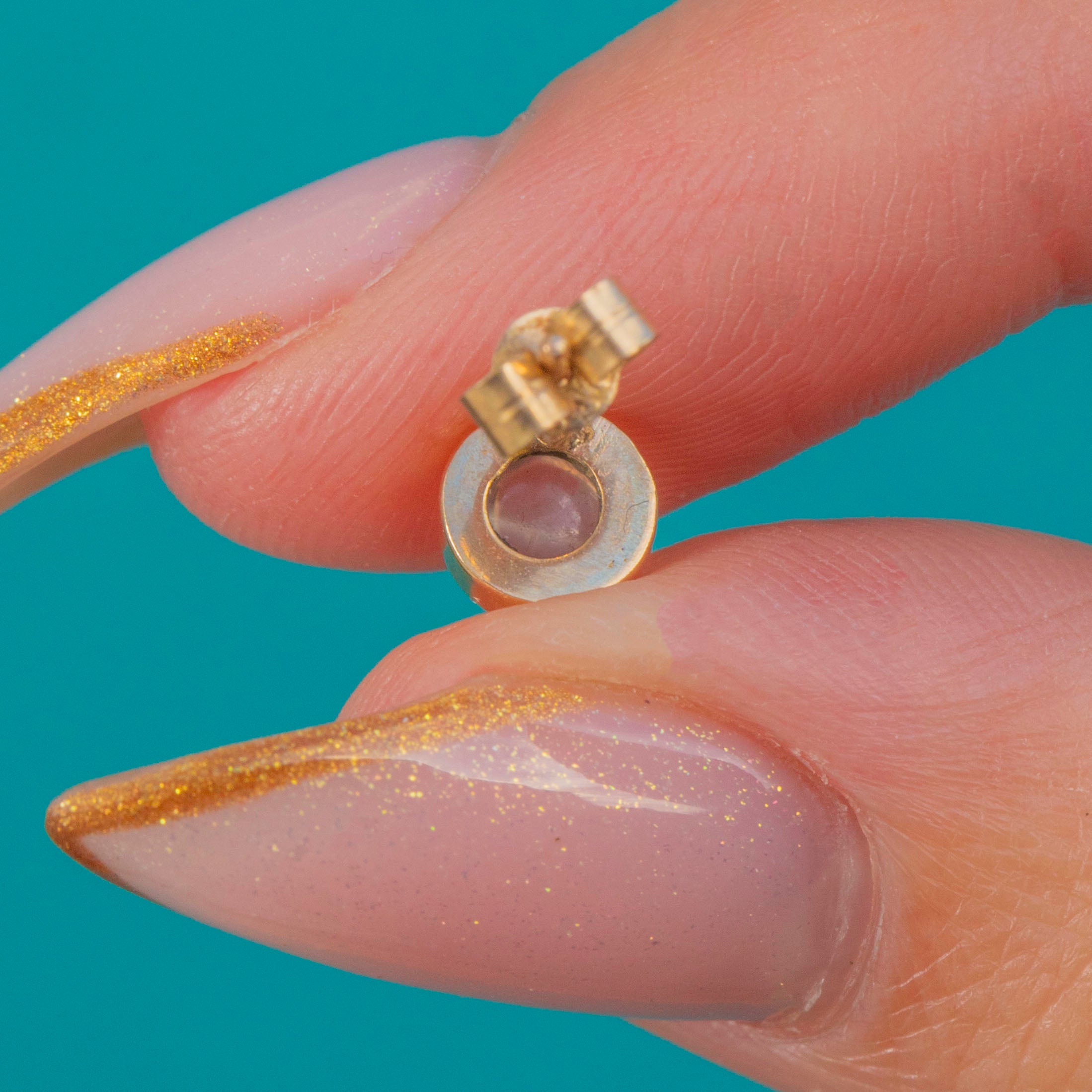 Boucles d'oreilles clous délicates en or 9 carats avec pierre de lune