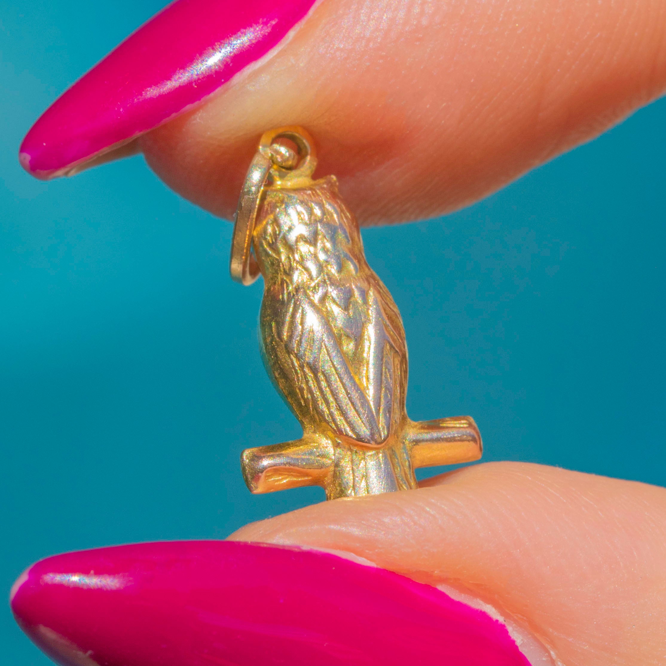 Symbolic of wisdom and intuition, this vintage owl charm will make a sweet addition to your collection! Crafted from solid 9ct Gold, the owl has been beautifully formed and displays ornately engraved details, giving it plenty of character.