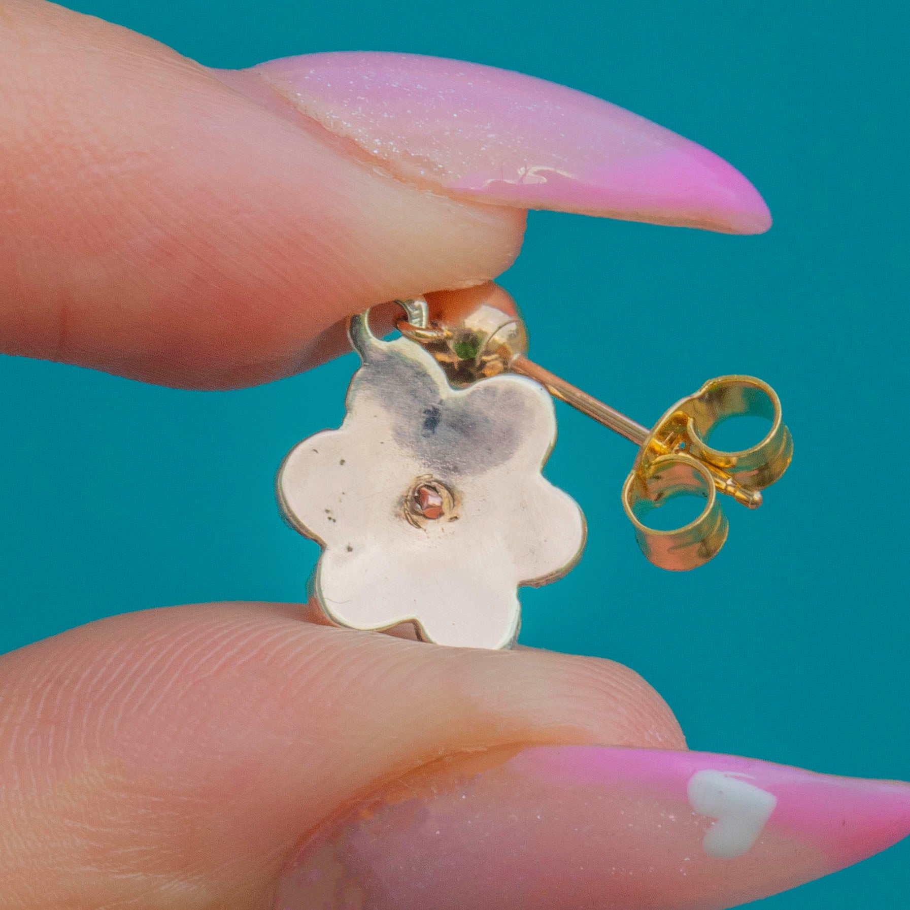 Their rosy hue and intricate detailing capture the romantic charm of the Victorian era, with ball stud tops for easy wear. A sweet and timeless pair full of antique character.