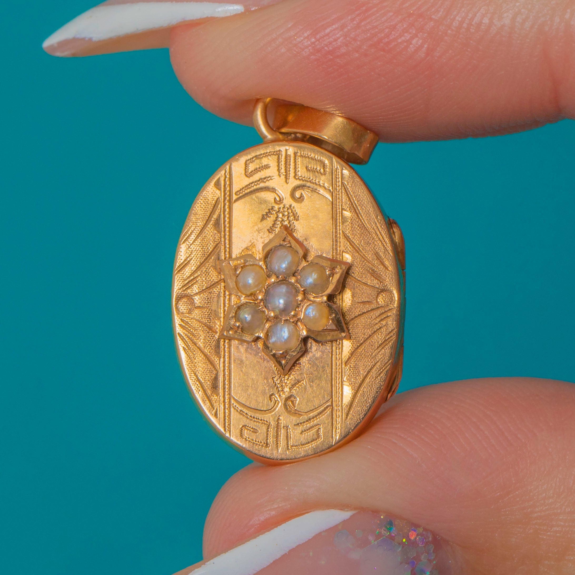 Dainty French 18ct Gold Pearl Flower Locket