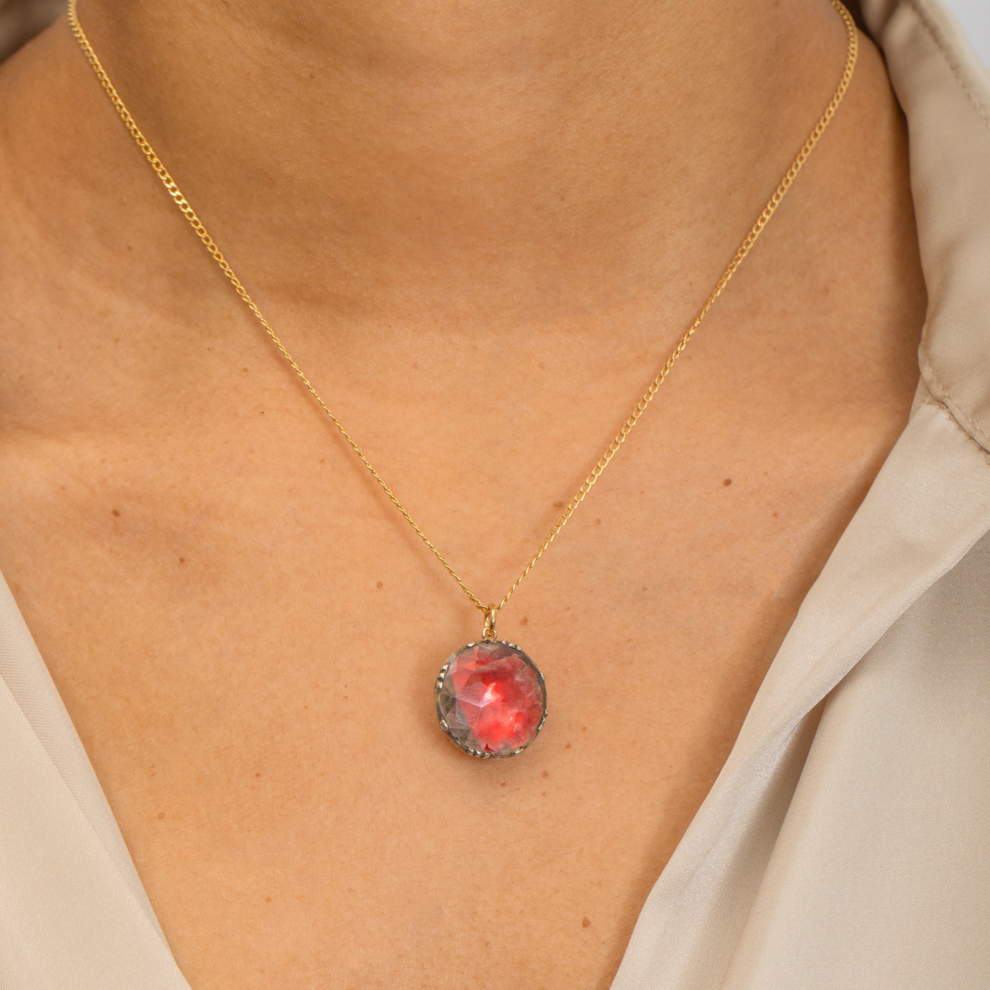 Pendentif en pâte à effet miroir rose vif du début du XIXe siècle