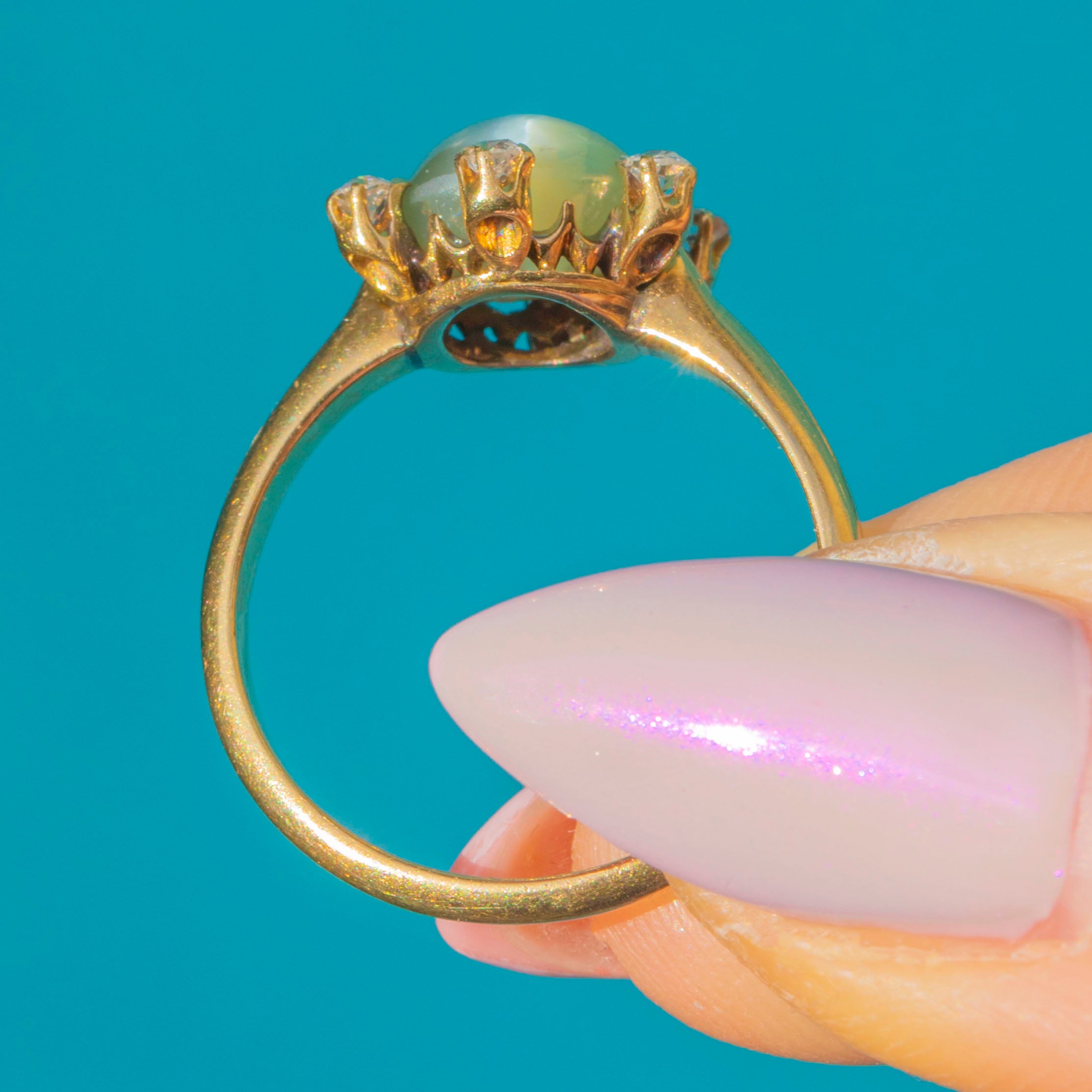 Edwardian 18ct Gold Cat's Eye Chrysoberyl Diamond Ring c.1915