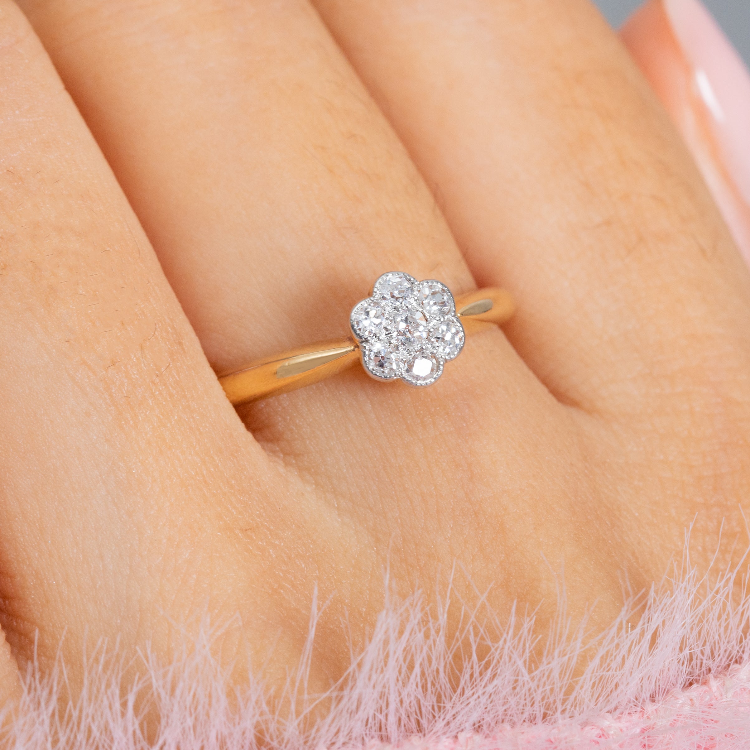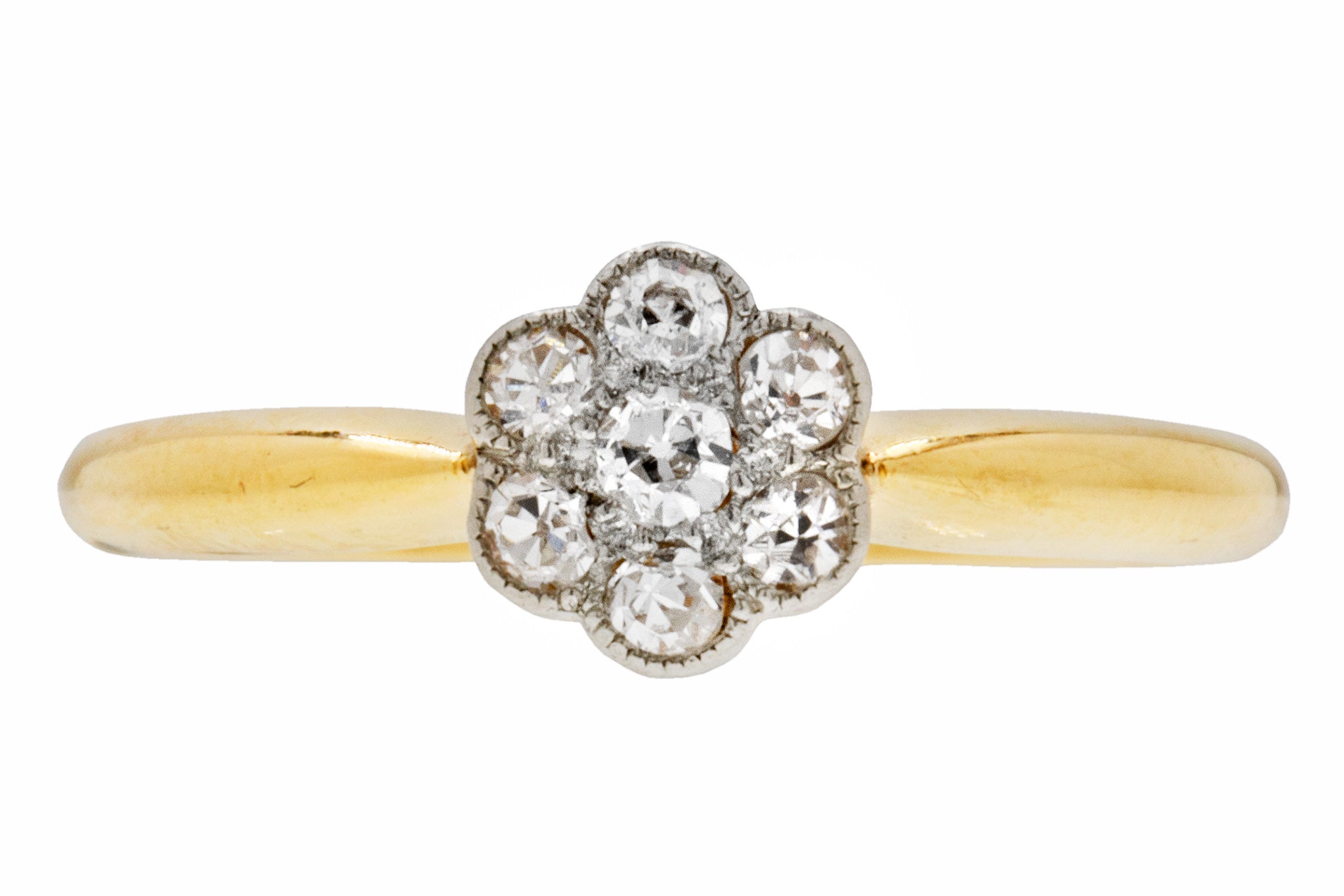 Bague en or 18 carats de l'époque édouardienne avec un groupe de diamants, 0,21 ct