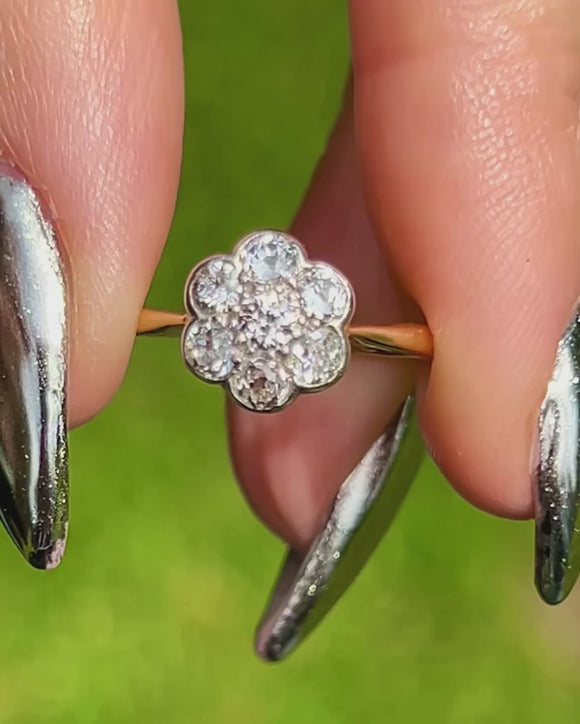 A dainty antique 18ct Gold diamond daisy ring for your collection!