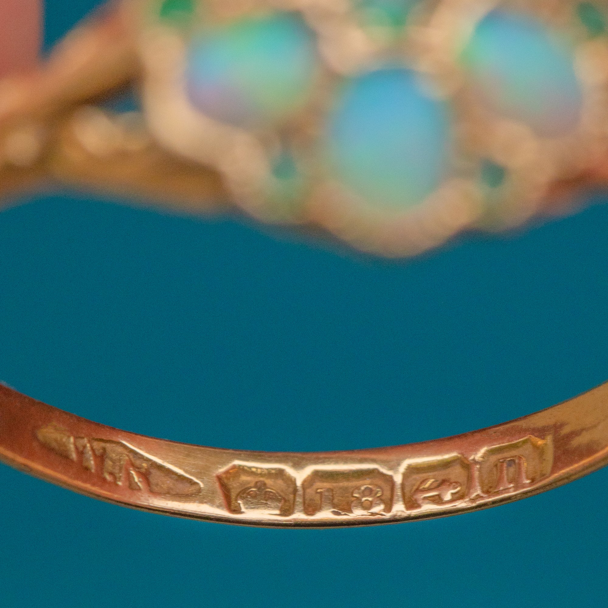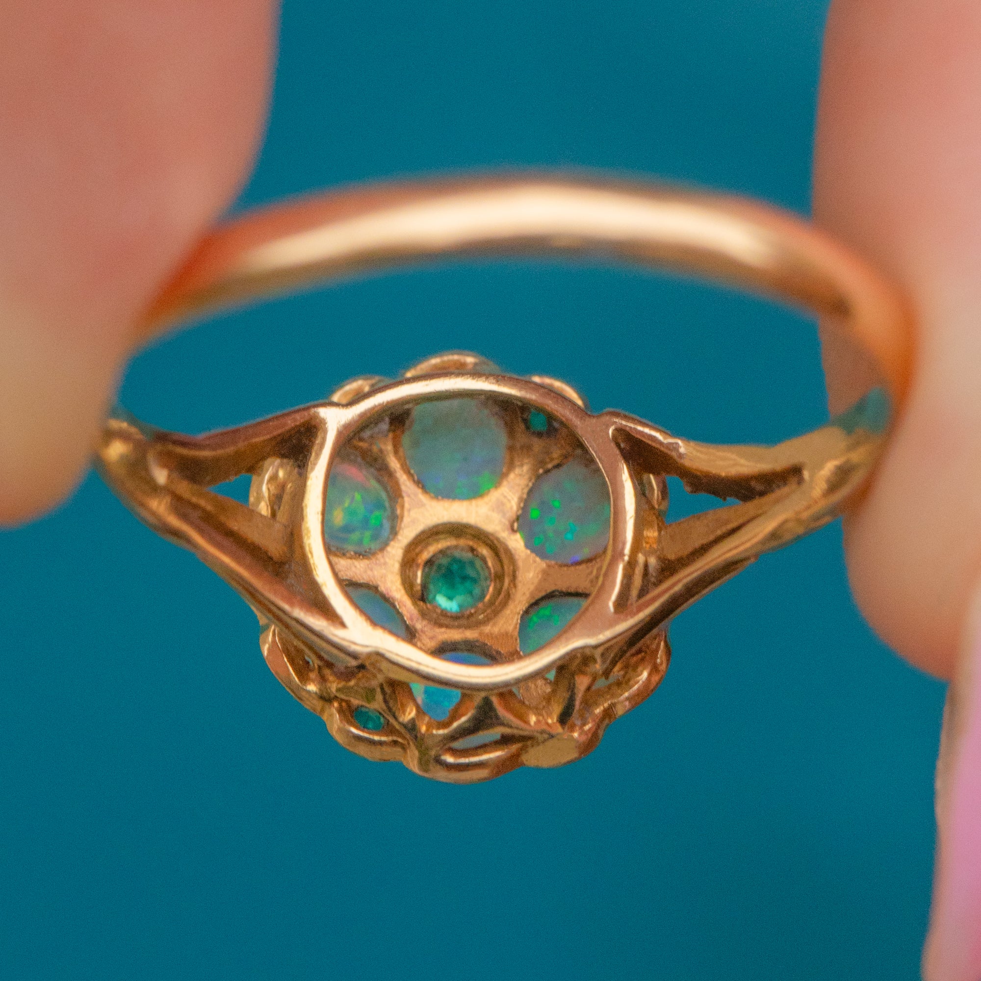 Edwardian 18ct Gold Opal & Emerald Flower Cluster Ring, c.1912
