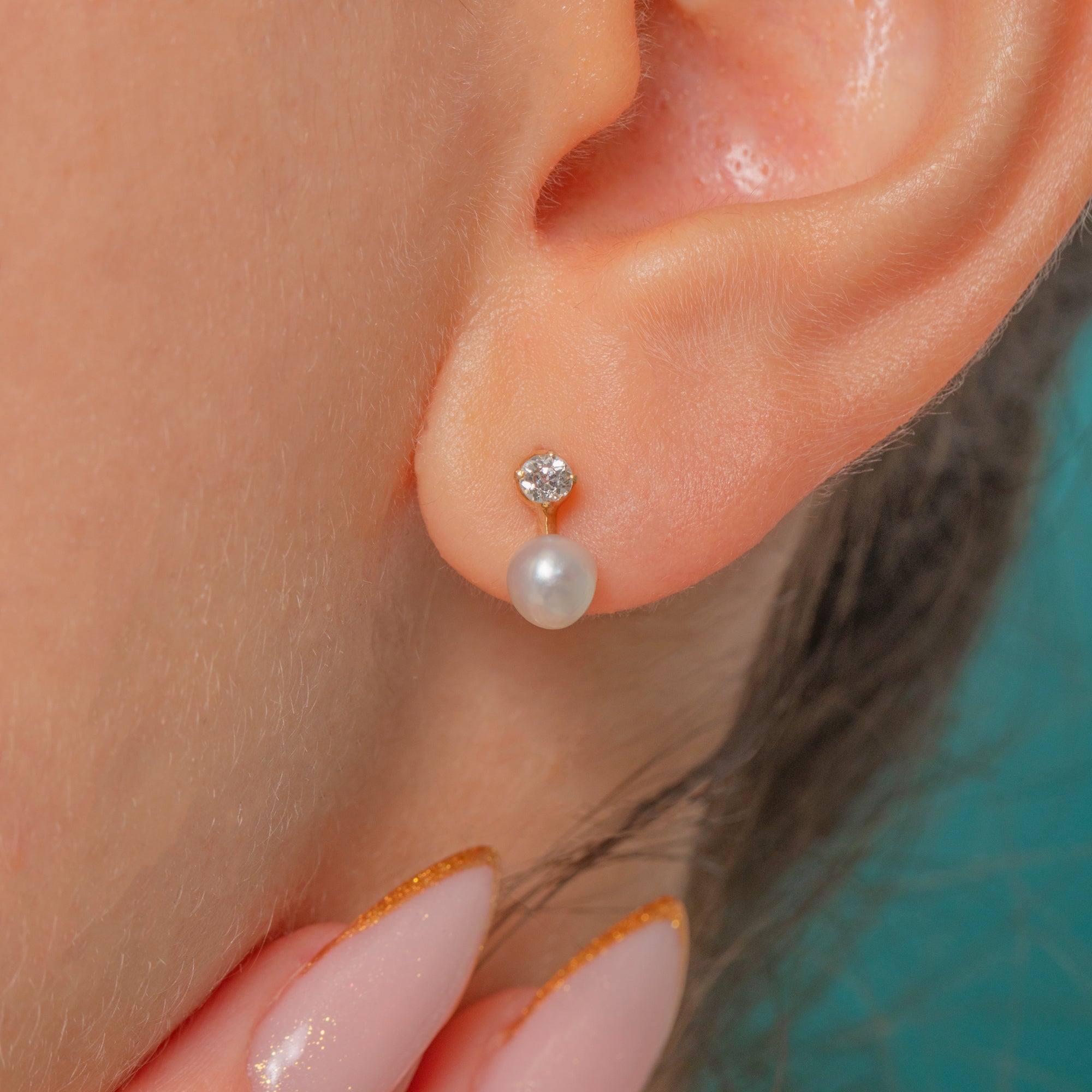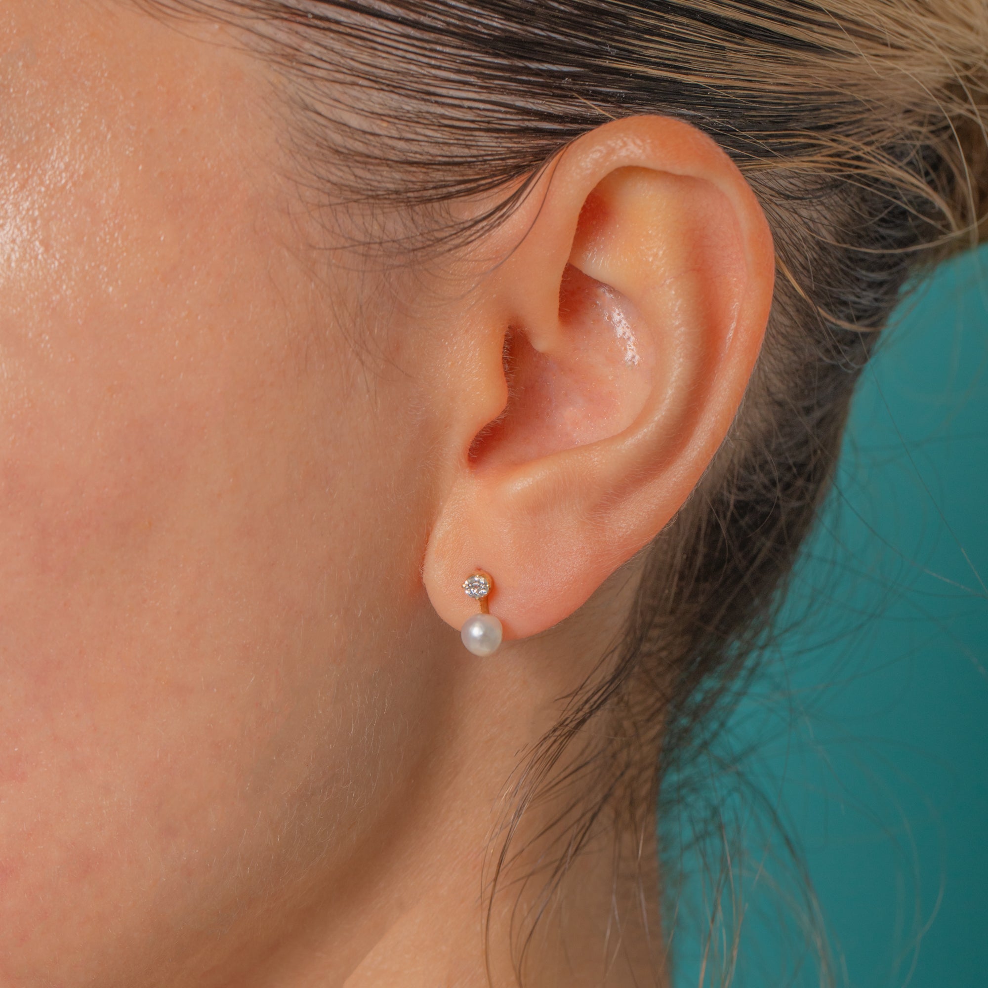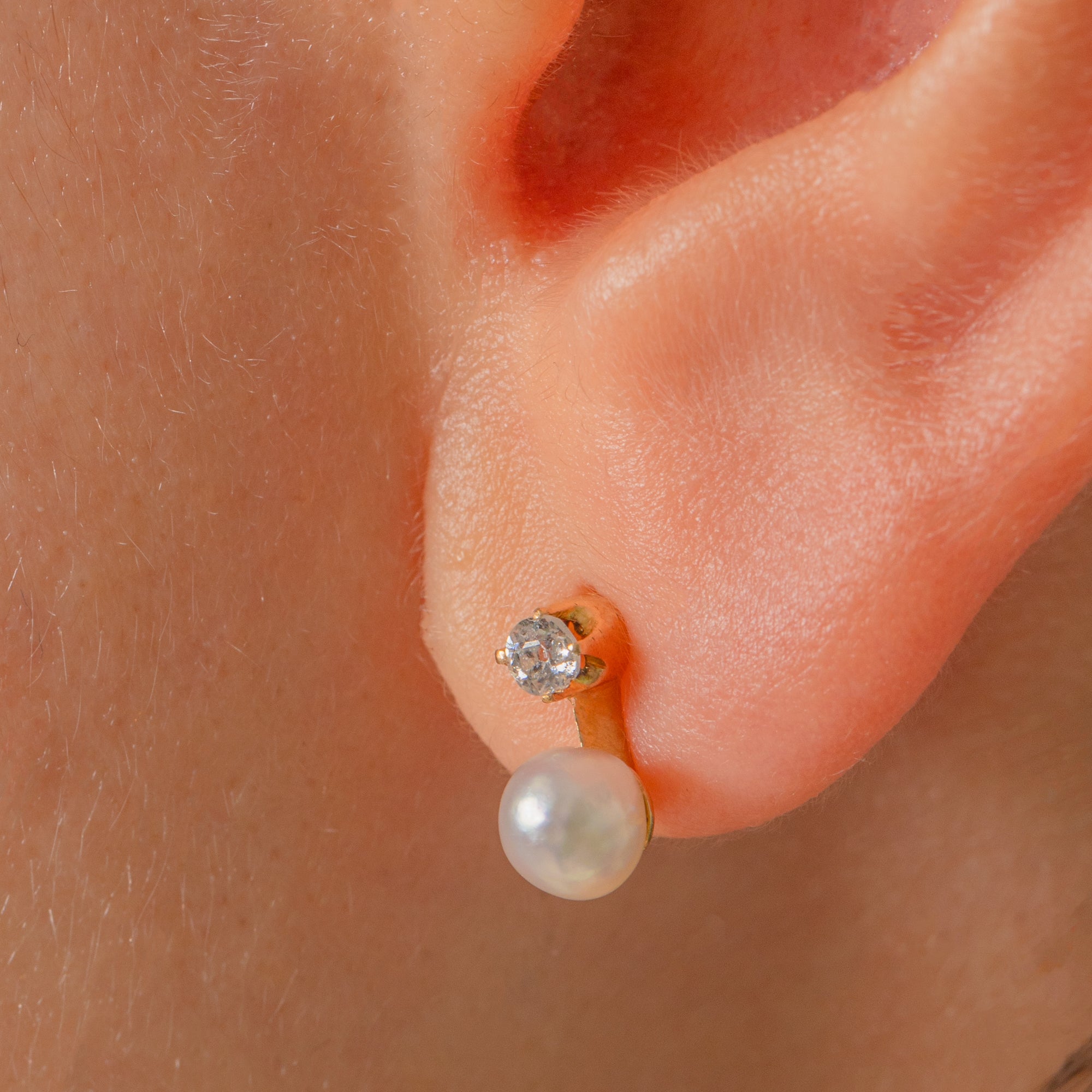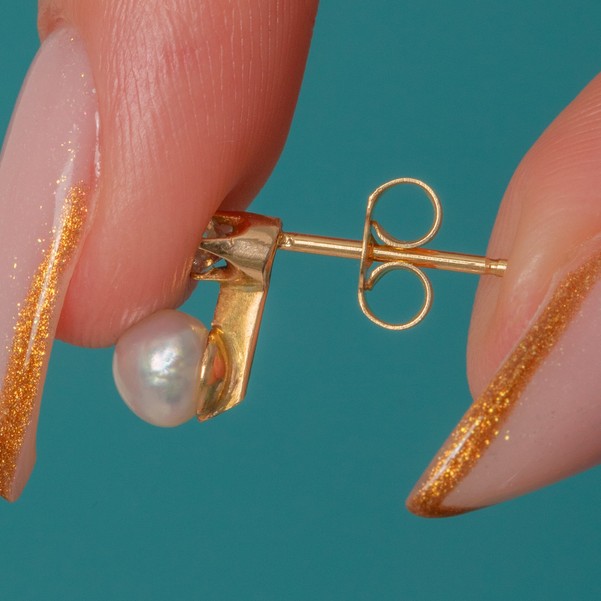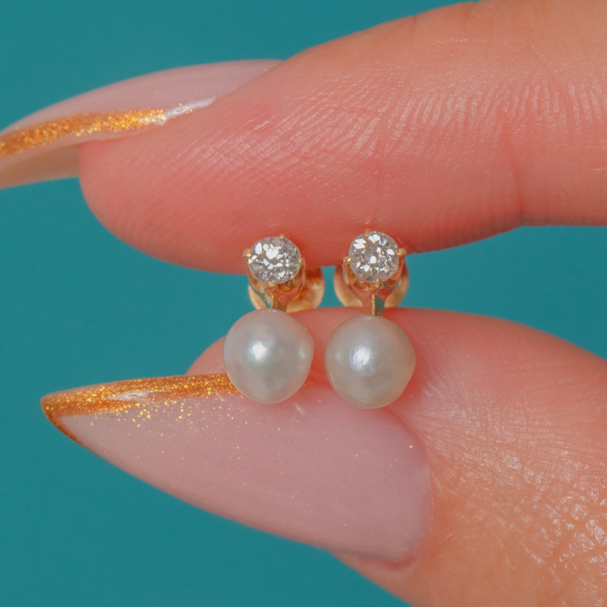 Timeless and elegant, these Edwardian 18ct Gold studs pair creamy natural Pearls with sparkling antique Diamonds for a look of understated sophistication. The design captures the Edwardian love of delicate balance and luminous materials, the gentle glow of the Pearls perfectly offset by the radiant sparkle of the old-cut Diamonds above.