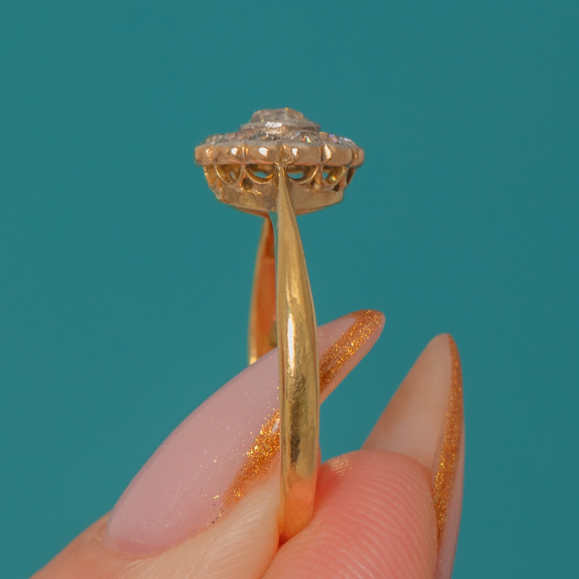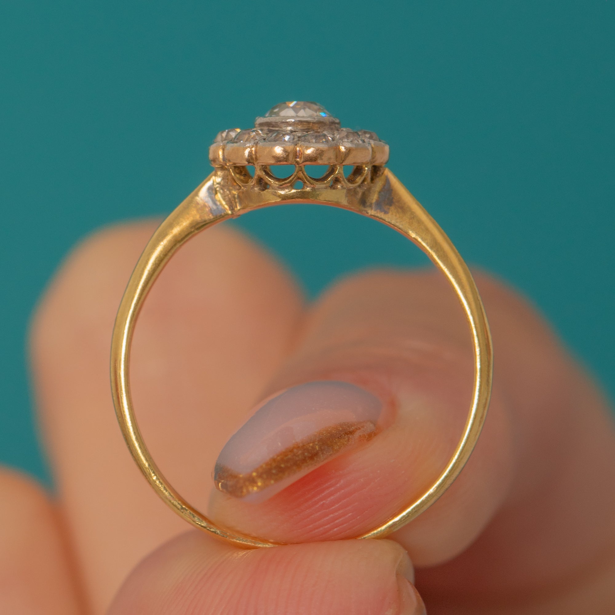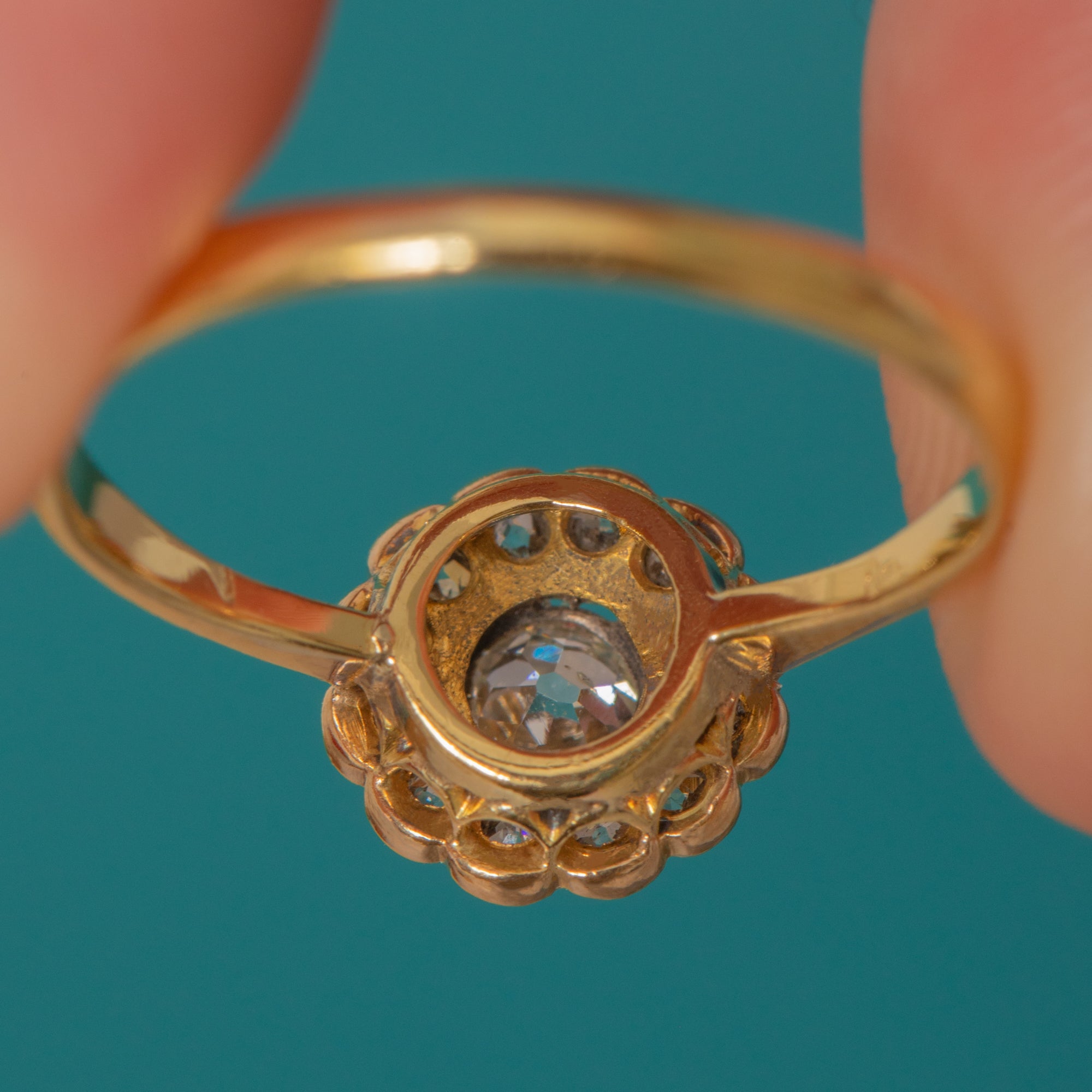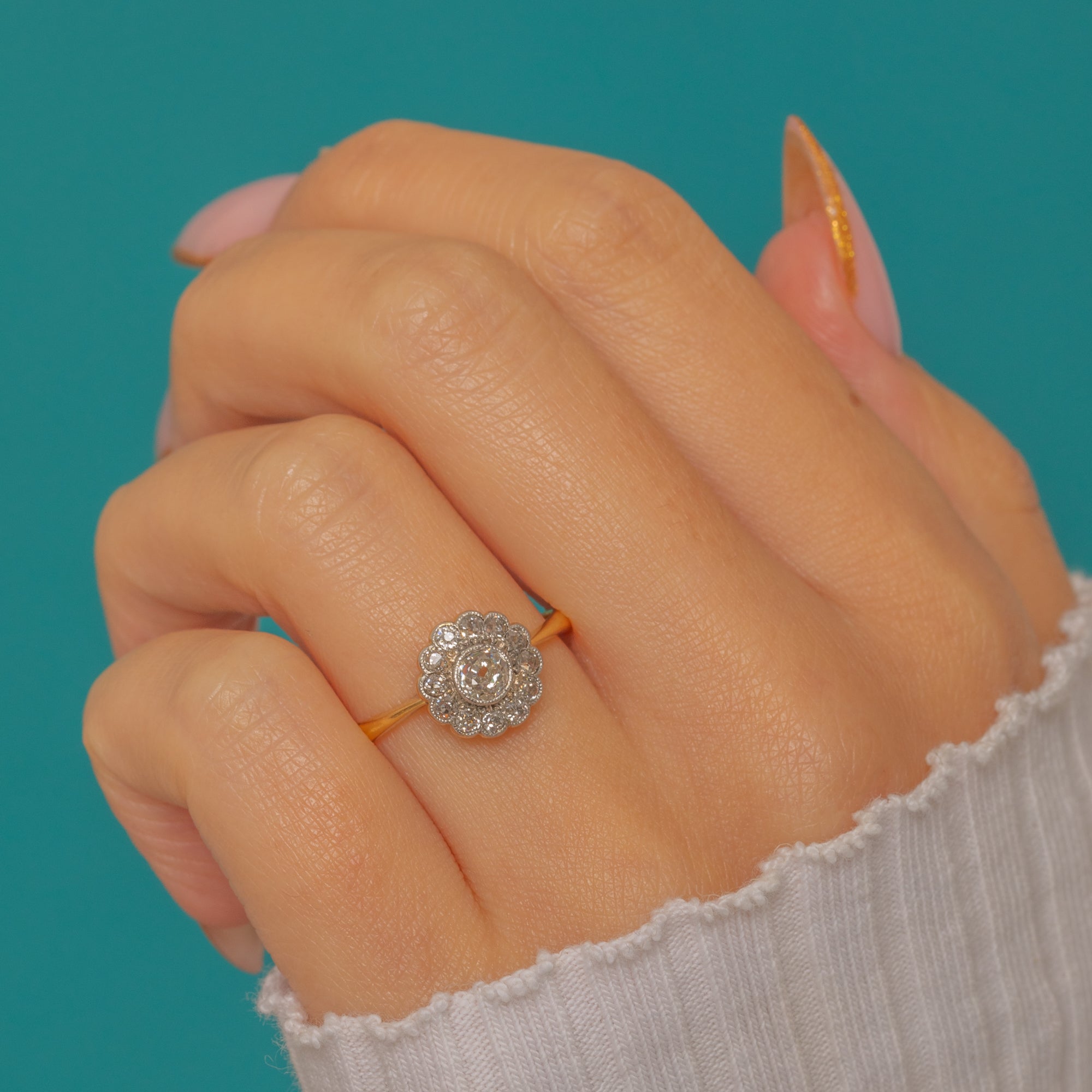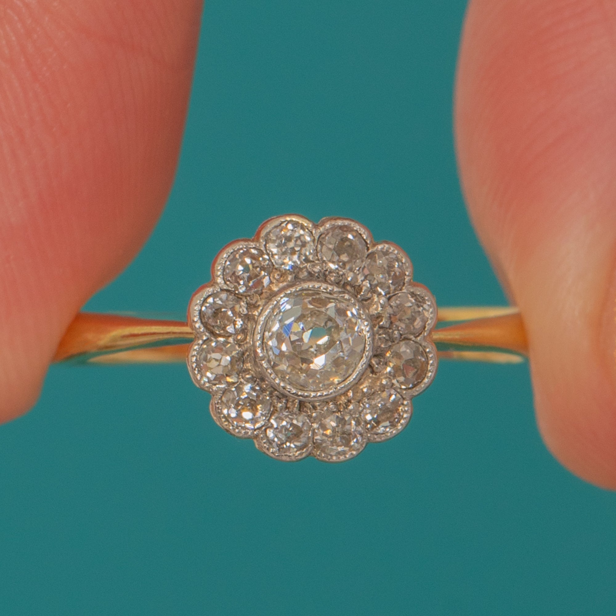 Bague marguerite en or 18 carats et platine de l'époque édouardienne, diamant 0,50 ct