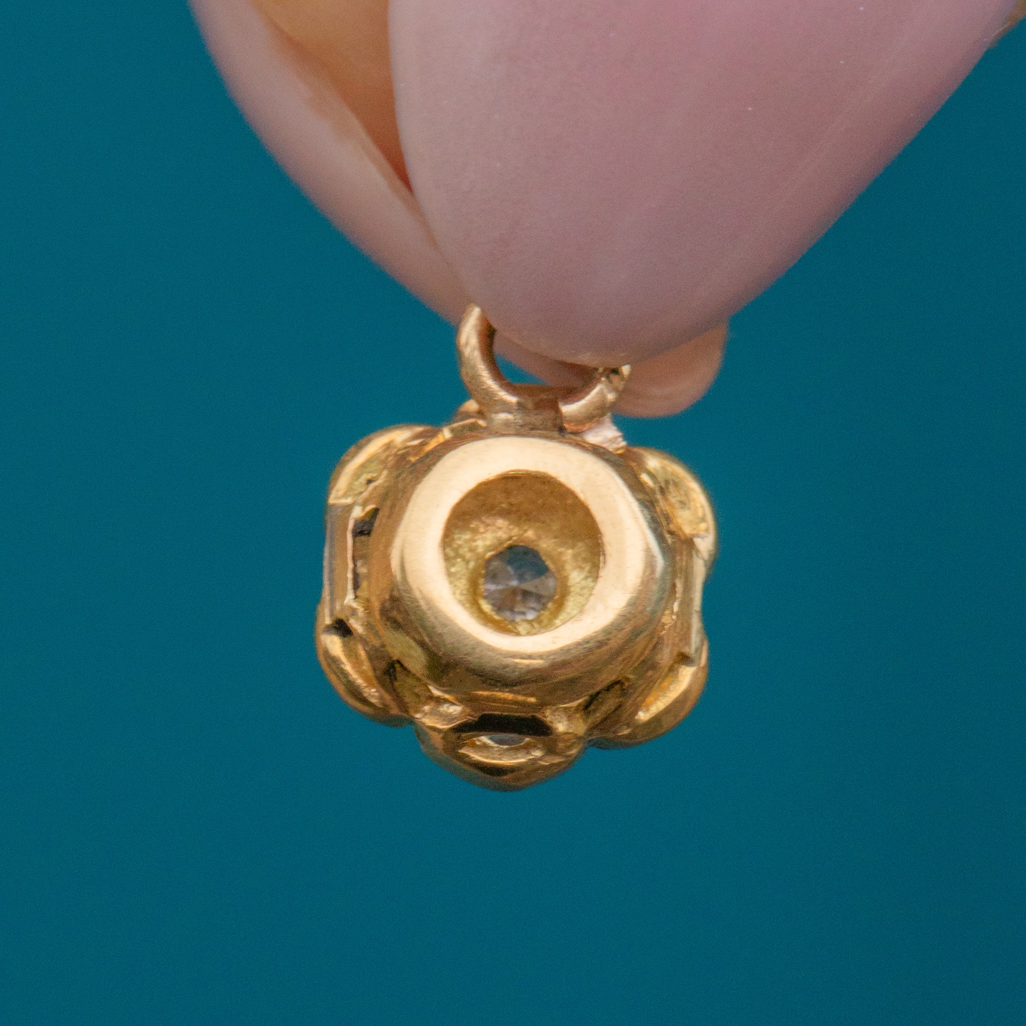 This Edwardian 18ct Gold and Platinum Diamond flower charm is absolutely adorable! Ideal for adding a sparkling accent to your décolletage, this antique Diamond delight is the perfect balance of glamour and elegance.