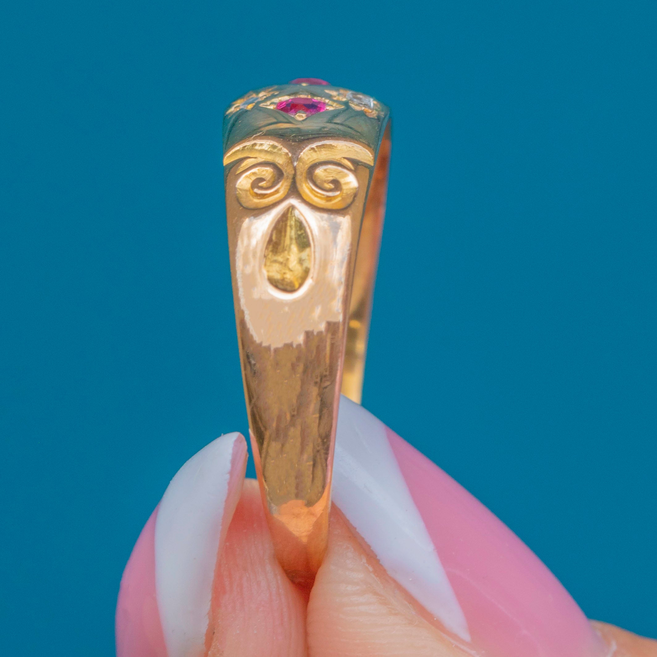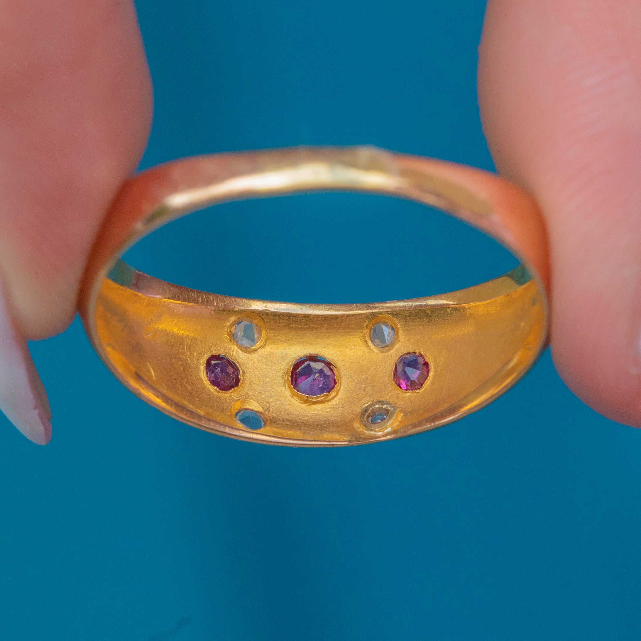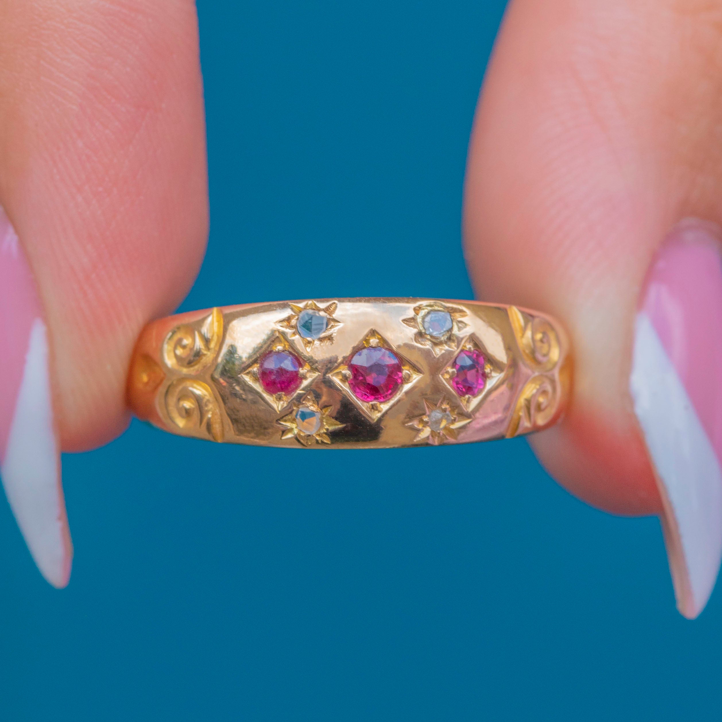 Edwardian 18ct Gold Ruby Diamond Star Set Gypsy Ring c.1903