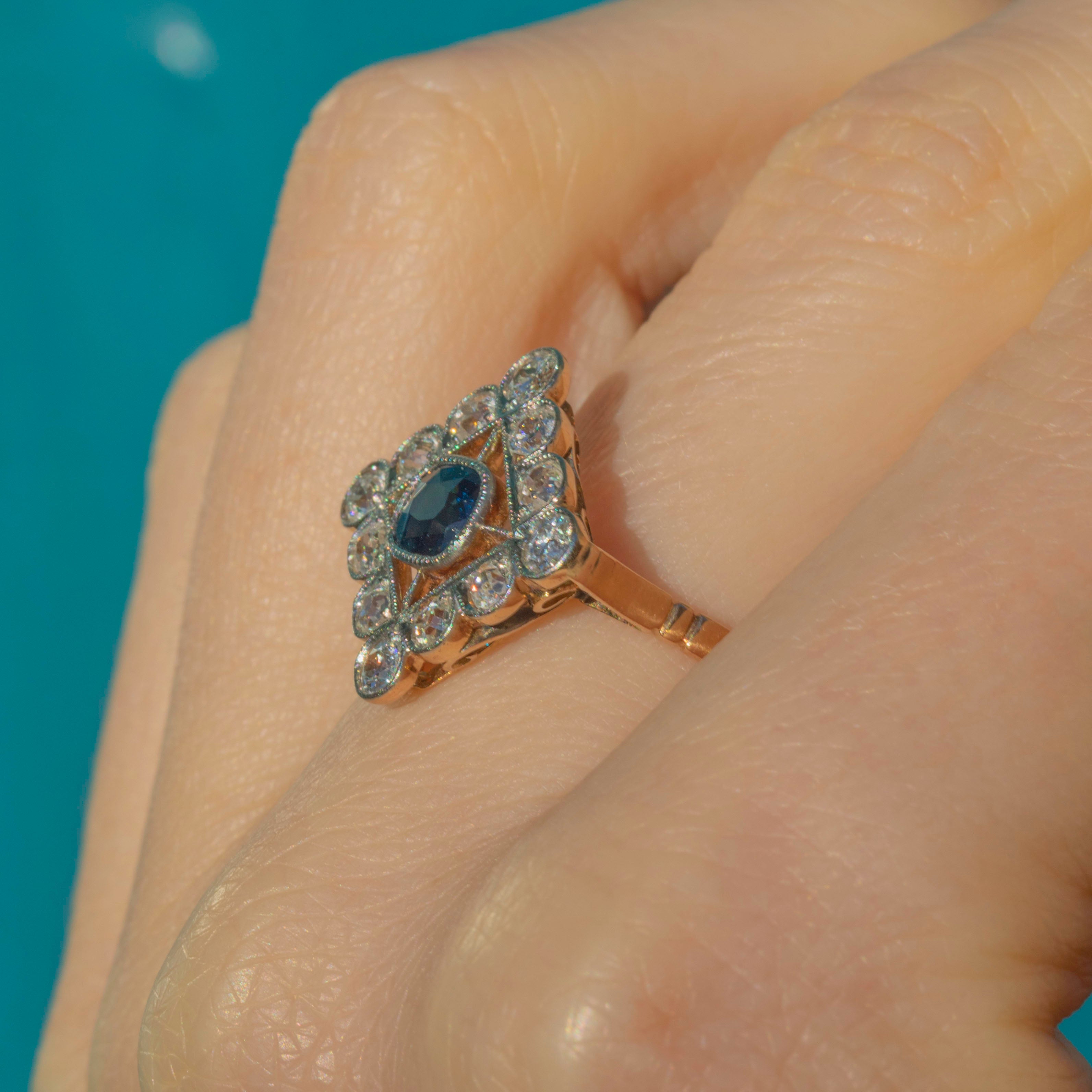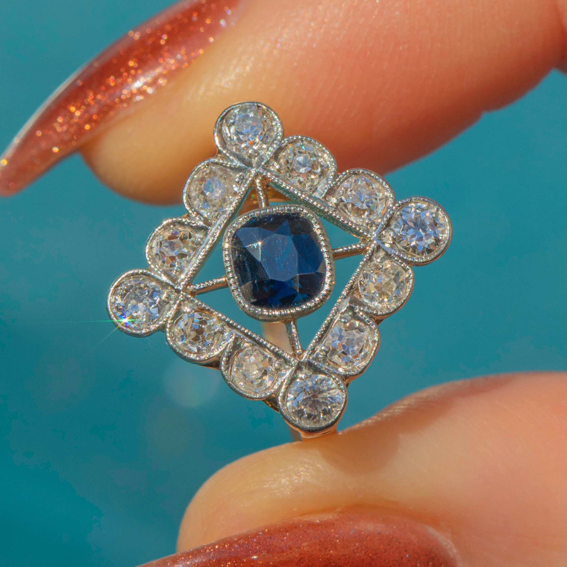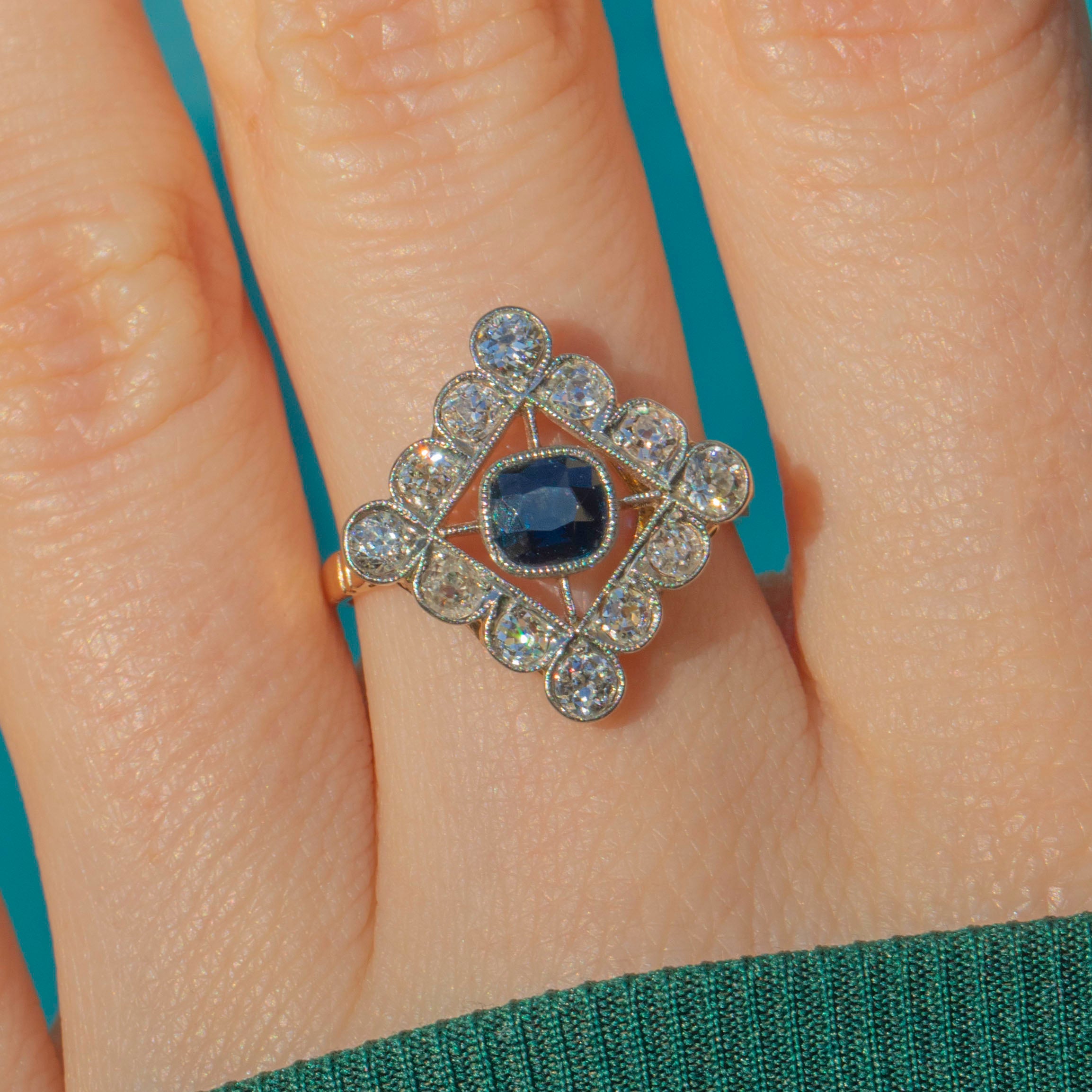 We have all fallen hard for this incredible Edwardian 18ct Gold Sapphire Diamond square cluster ring here at Lillicoco!