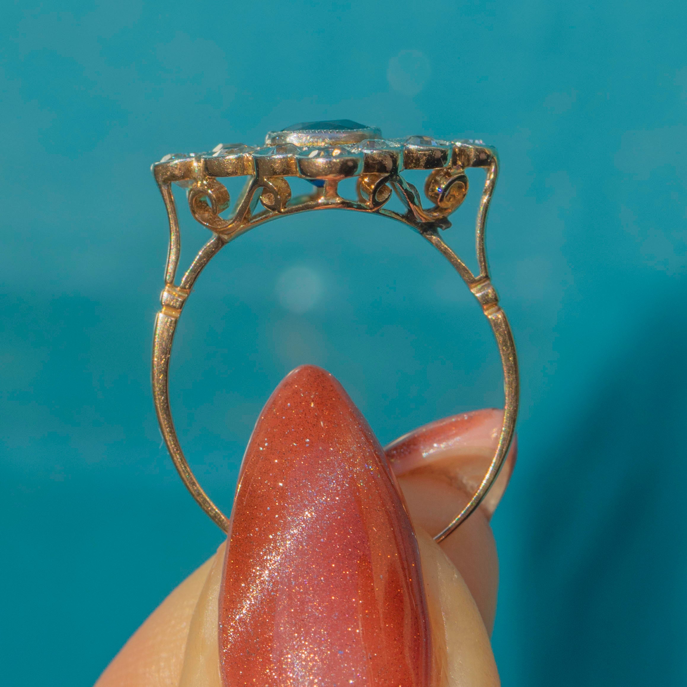 The craftsmanship can be admired from every angle, with its ornate gallery allowing the light to stream through the resplendent selection of gemstones. If you are looking for the ultimate engagement ring, look no further than this outstanding Edwardian Sapphire and Diamond cluster ring!