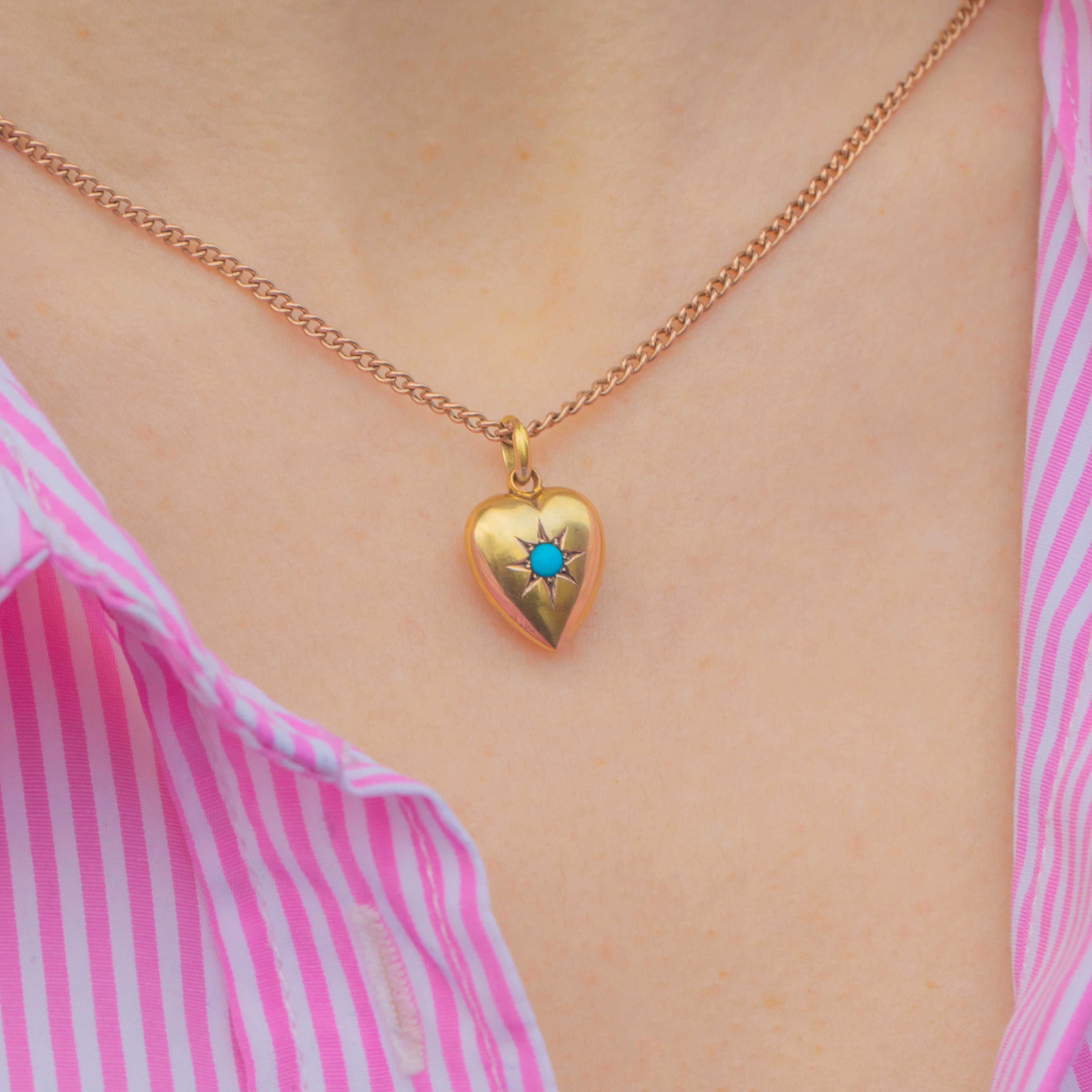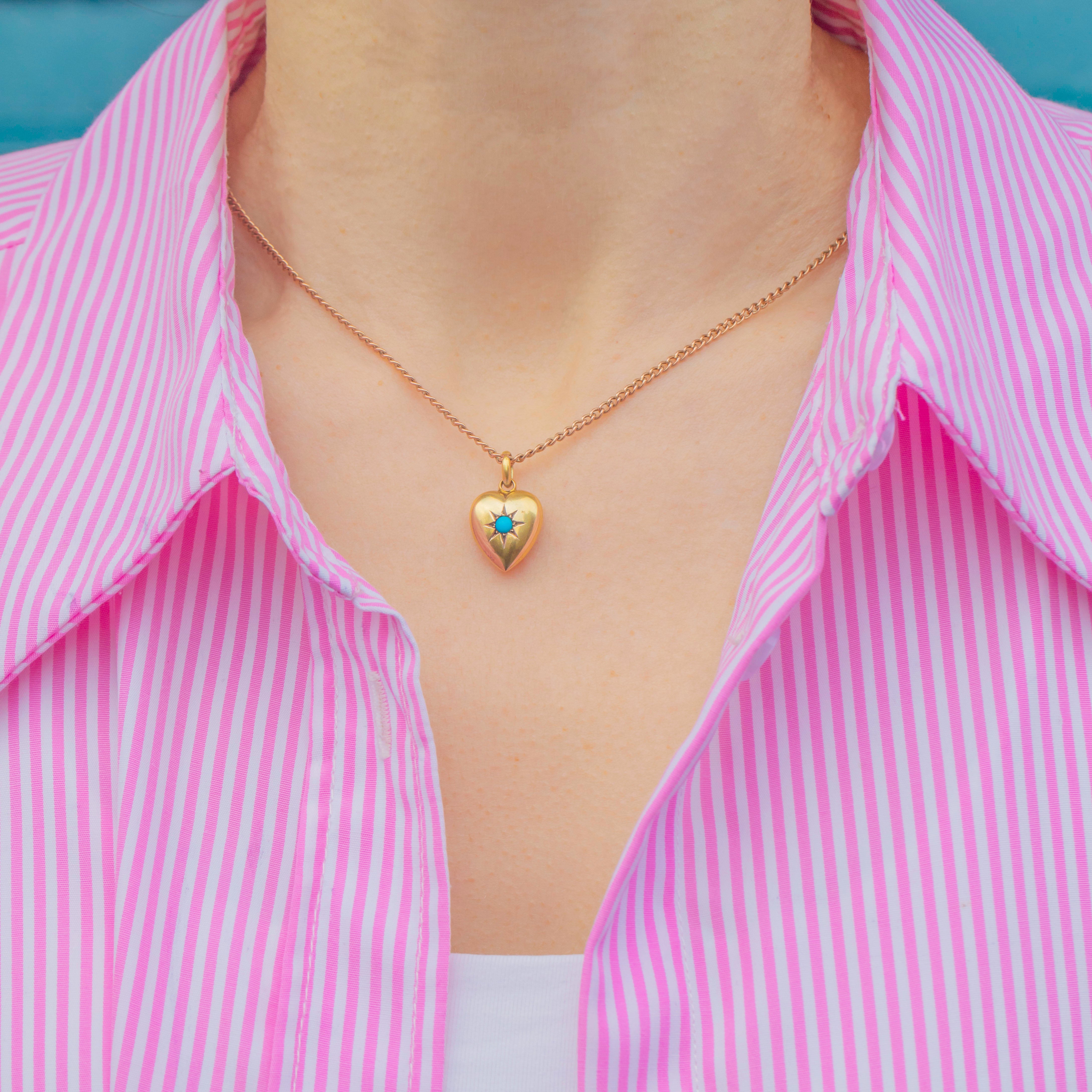 Edwardian 15ct Gold Turquoise Puffy Heart Pendant, c.1901