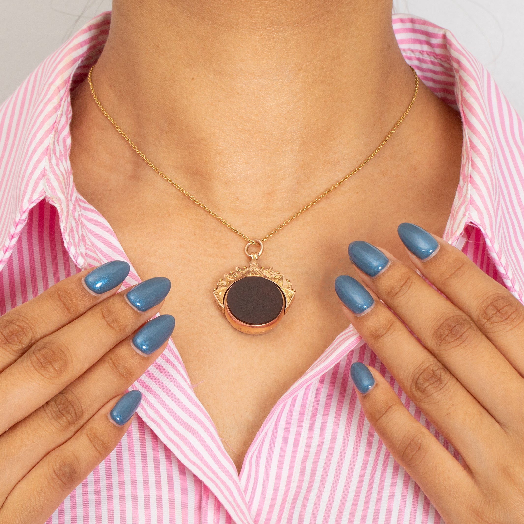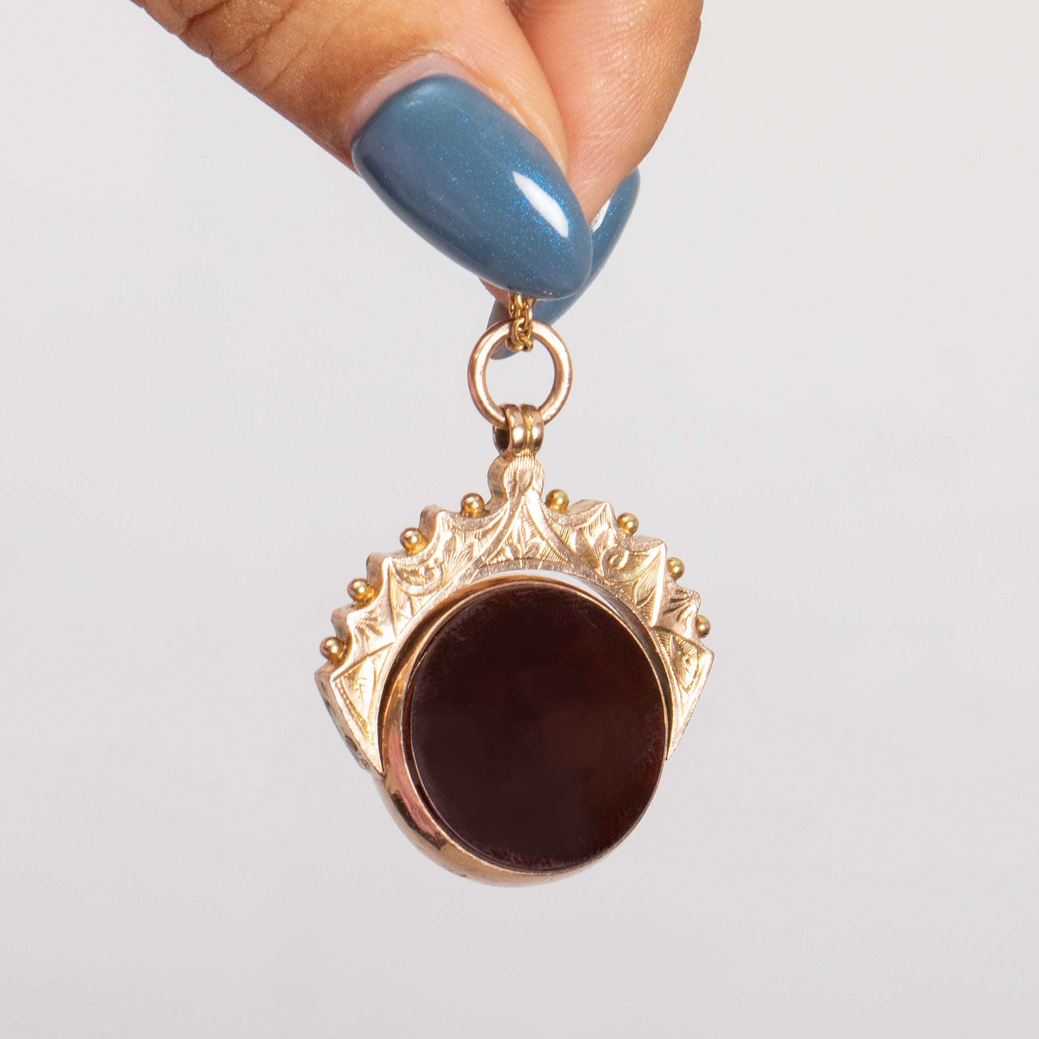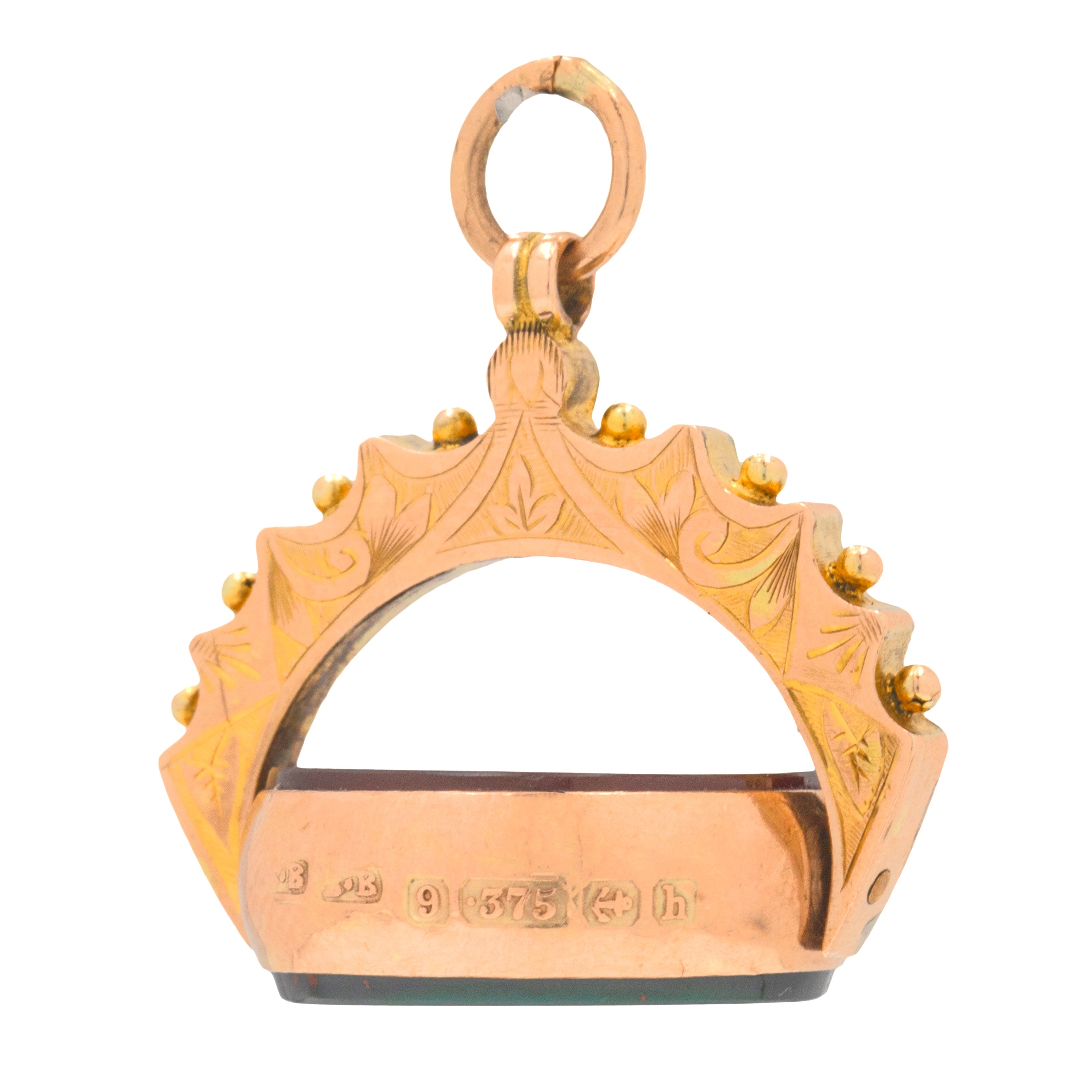 Pendentif pivotant en or 9 carats de l'époque édouardienne avec héliotrope et cornaline