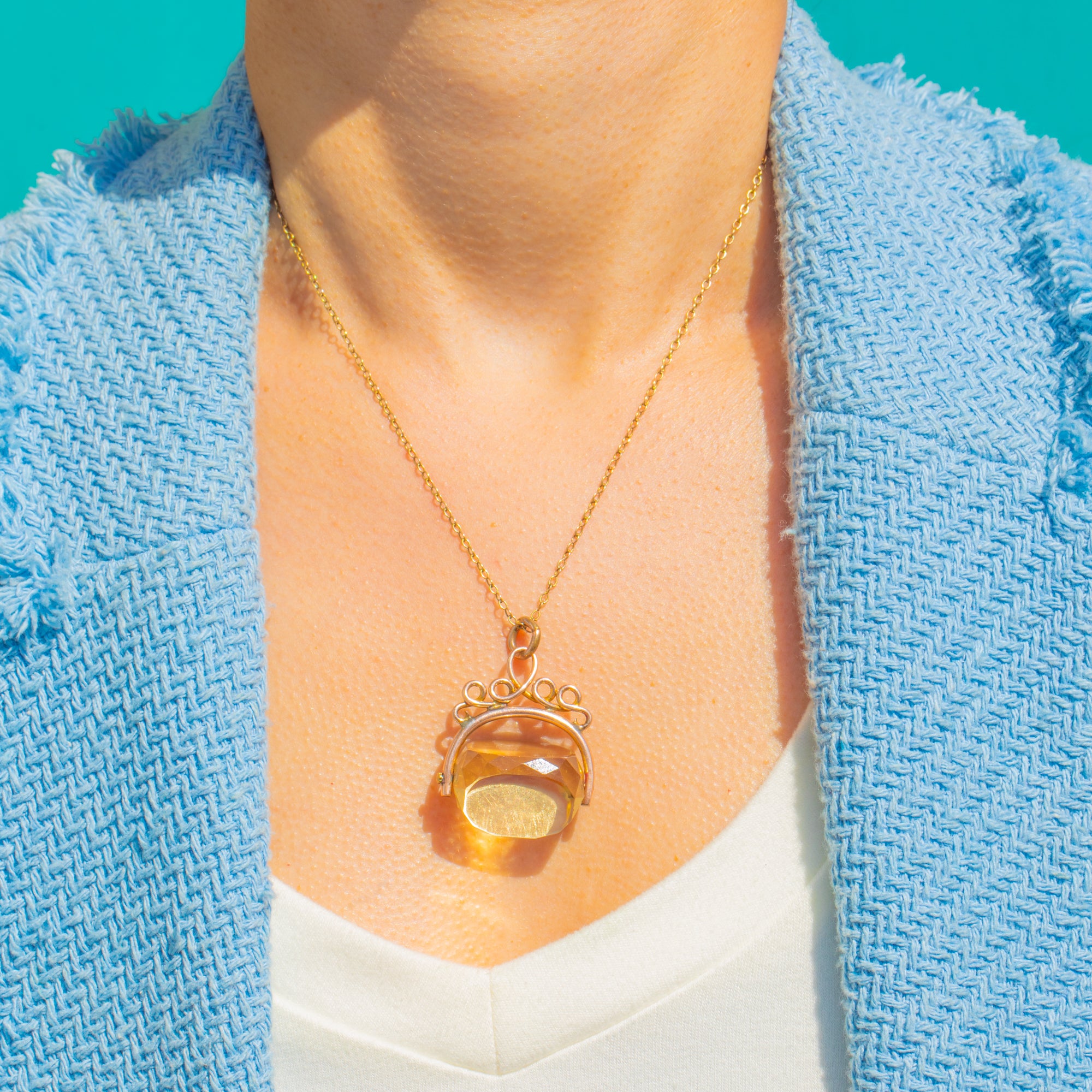Glowing with Edwardian charm, this 9ct Gold Citrine spinner fob captures the era’s love of sunshine hues and refined craftsmanship. The Citrine’s rich honey tone shimmers beautifully as it turns within its swivel setting, a tactile delight that catches the light with every movement.
