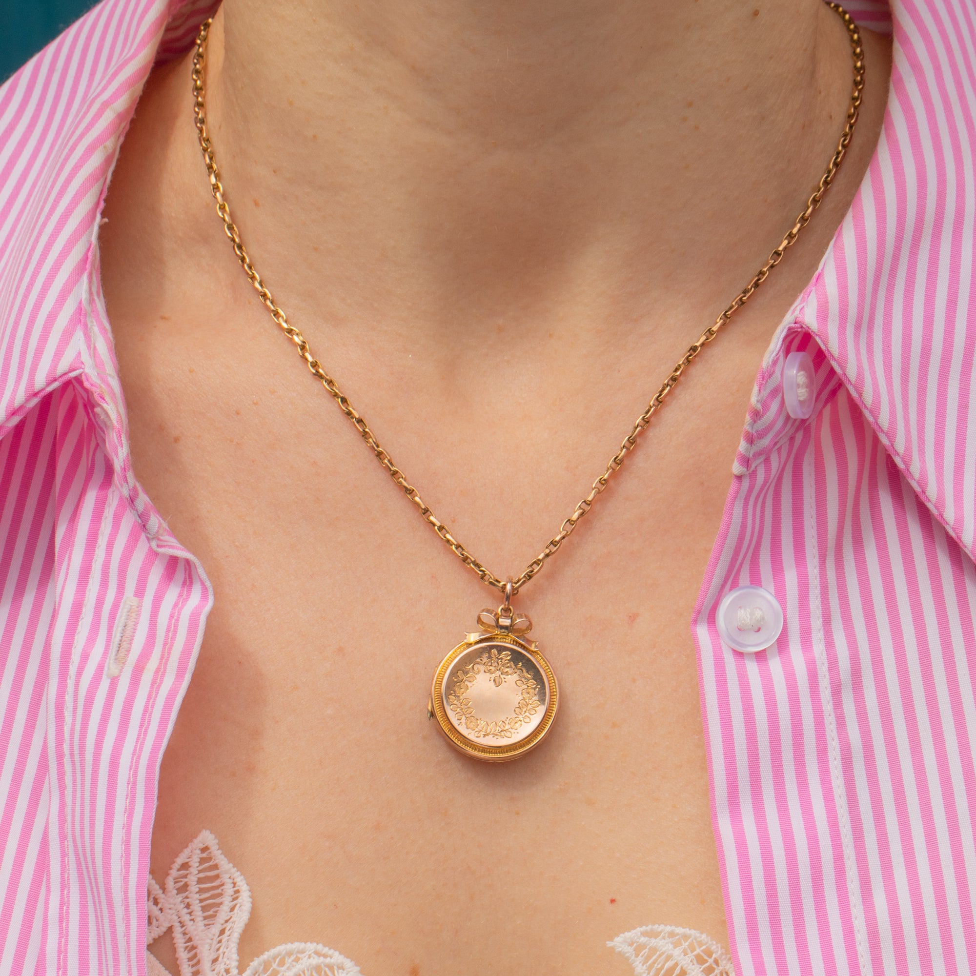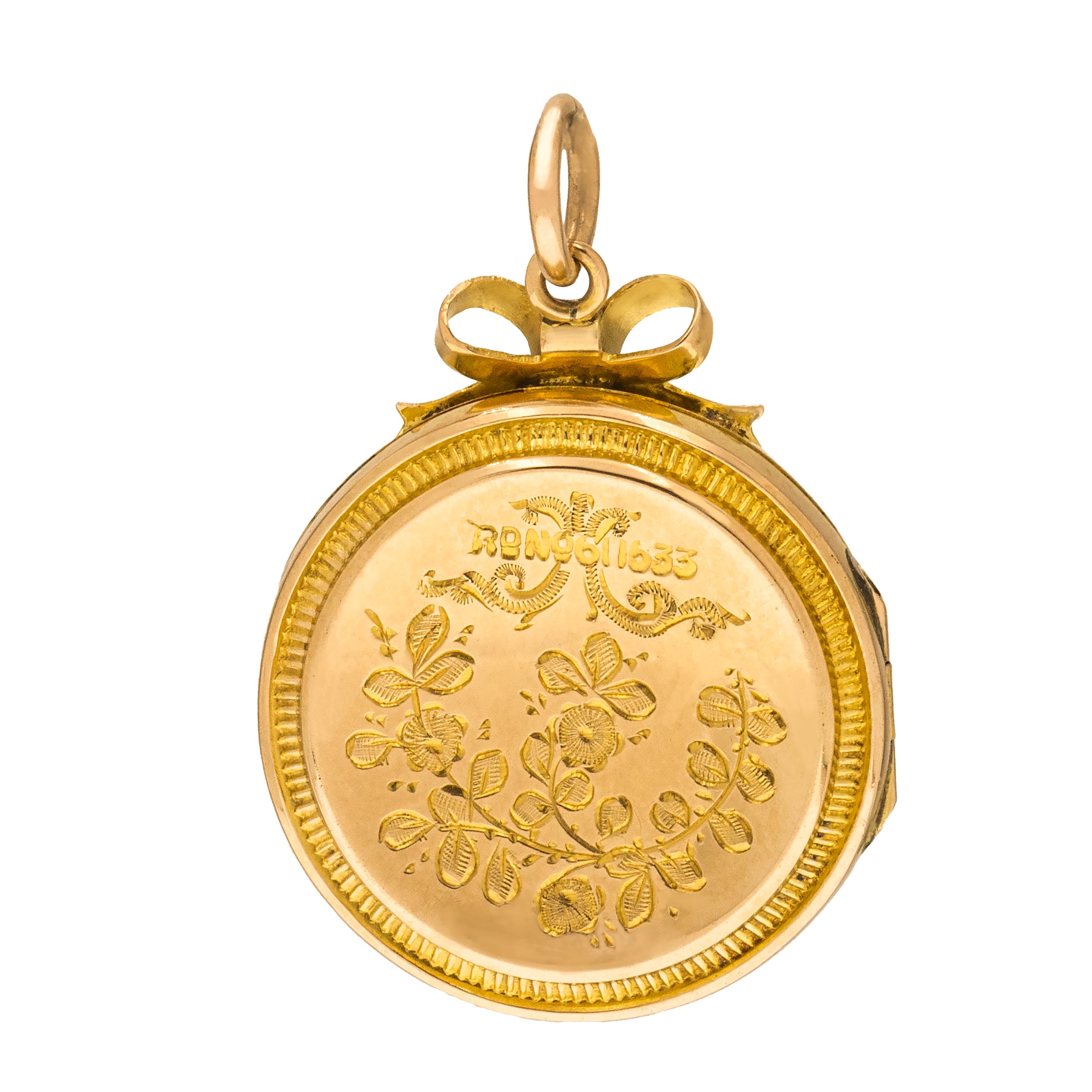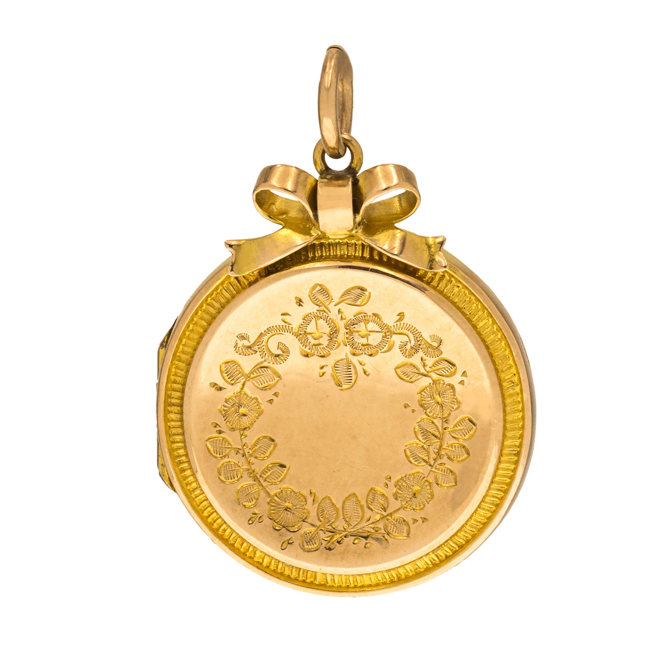 Médaillon gravé en or 9 carats édouardien avec ruban
