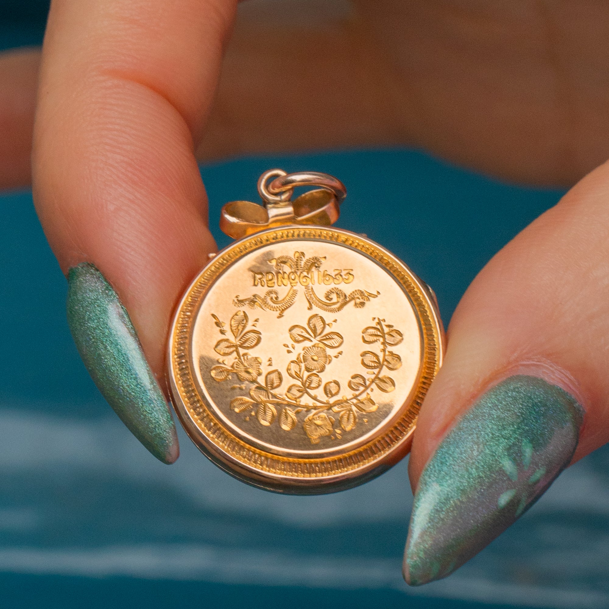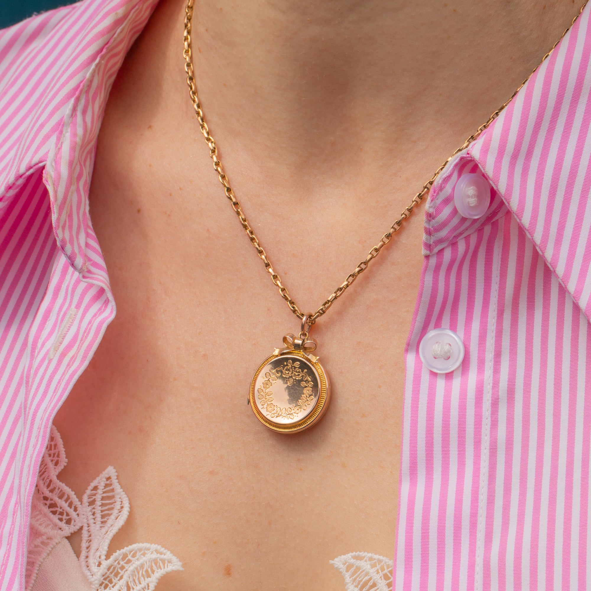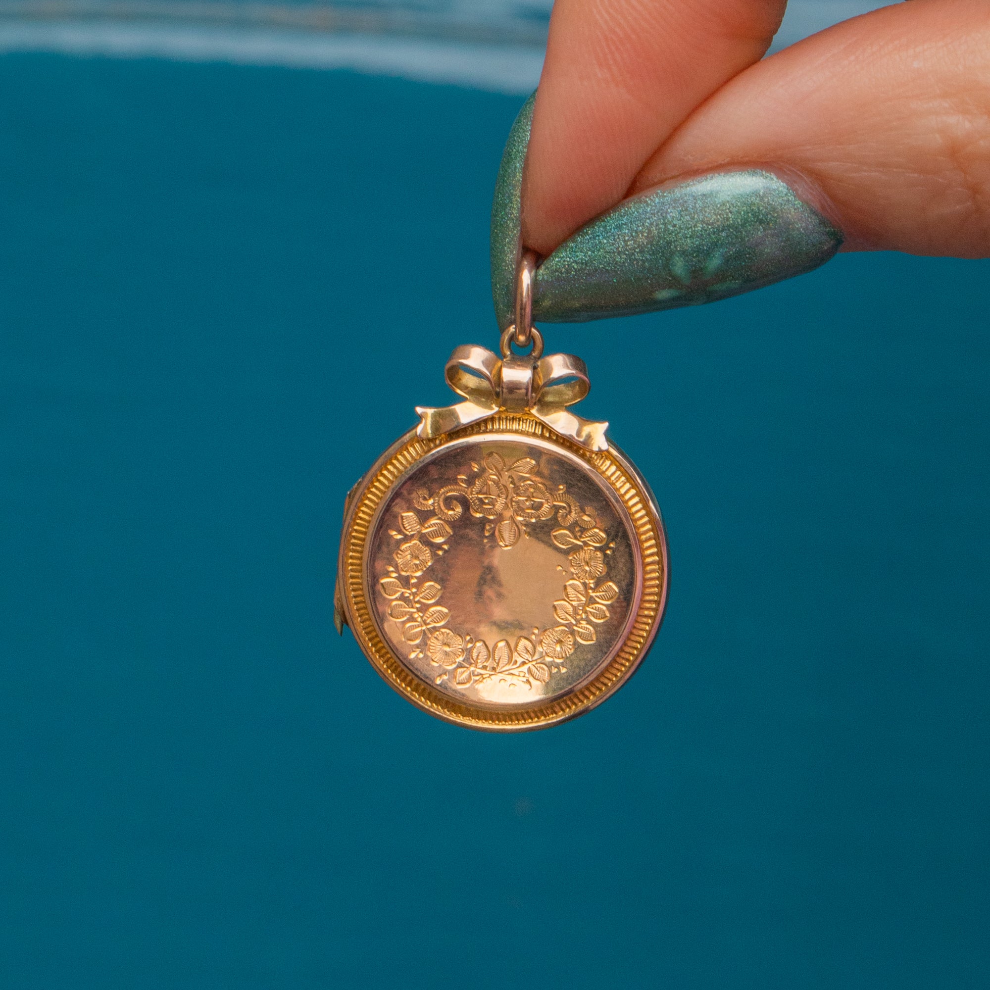 Médaillon gravé en or 9 carats édouardien avec ruban