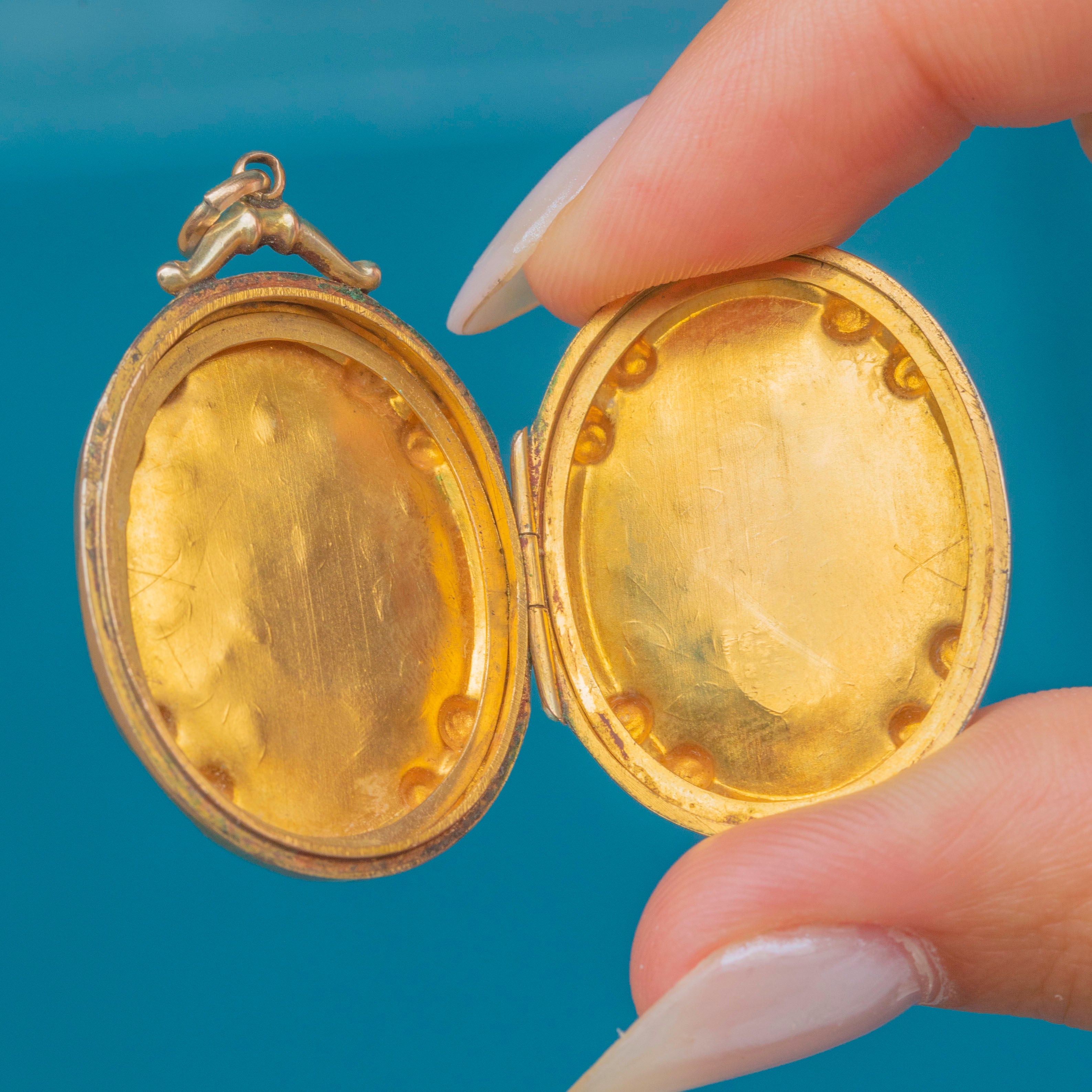 With two frames inside, this Edwardian Gold locket is ready to have your chosen photographs added!