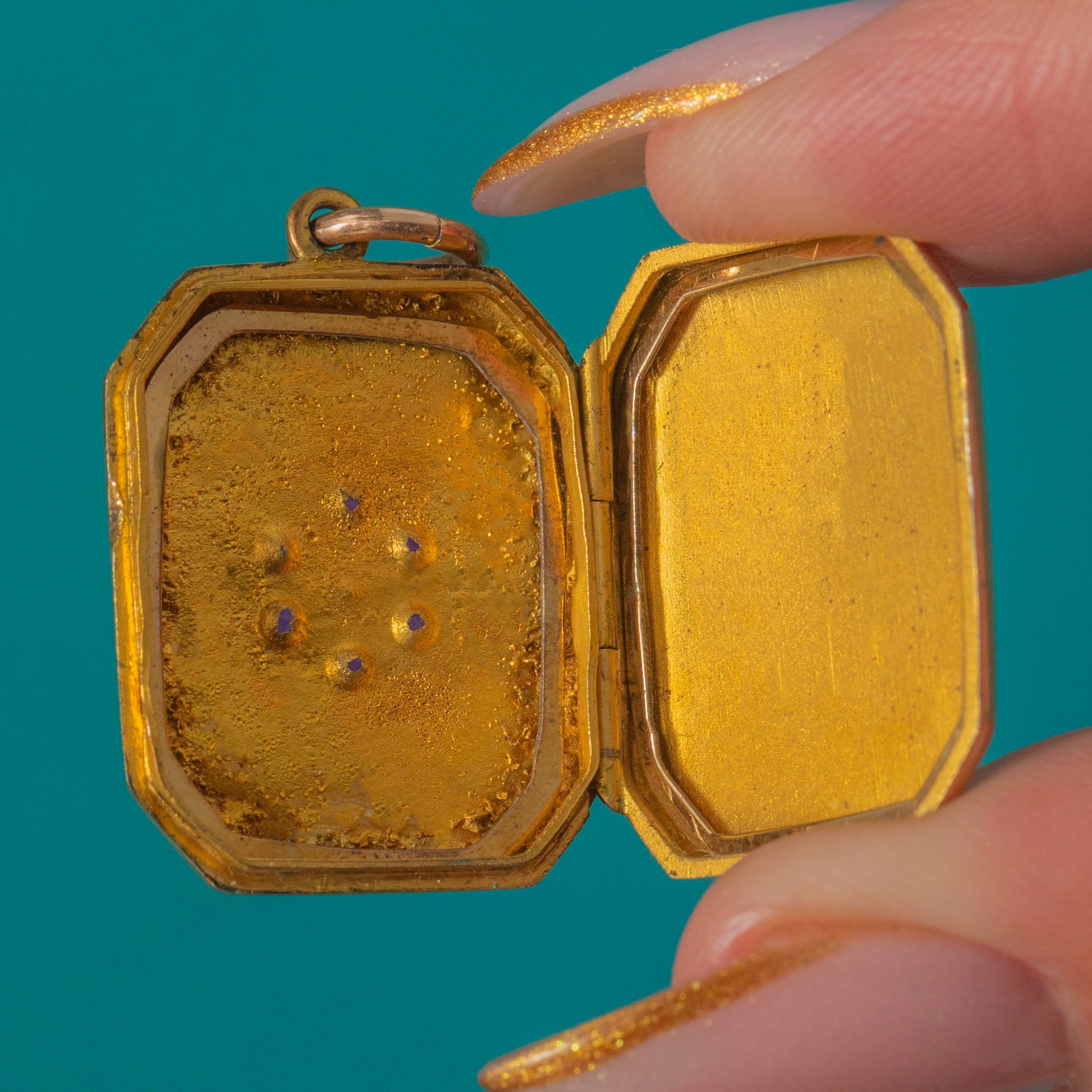 EXCELLENT: The locket is in outstanding antique condition with no dents or dings. The gemstones are bright and secure, and the Gold surfaces remain smooth and well preserved.