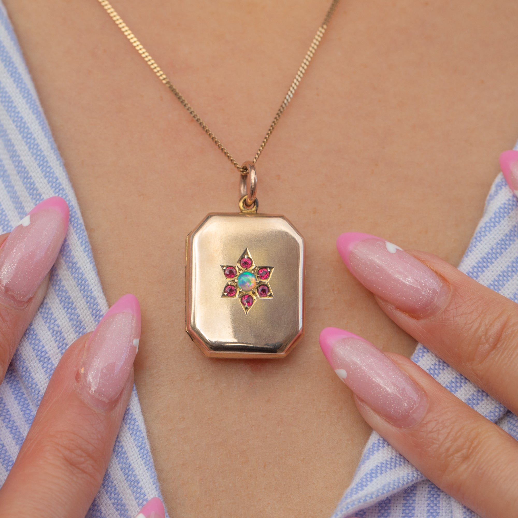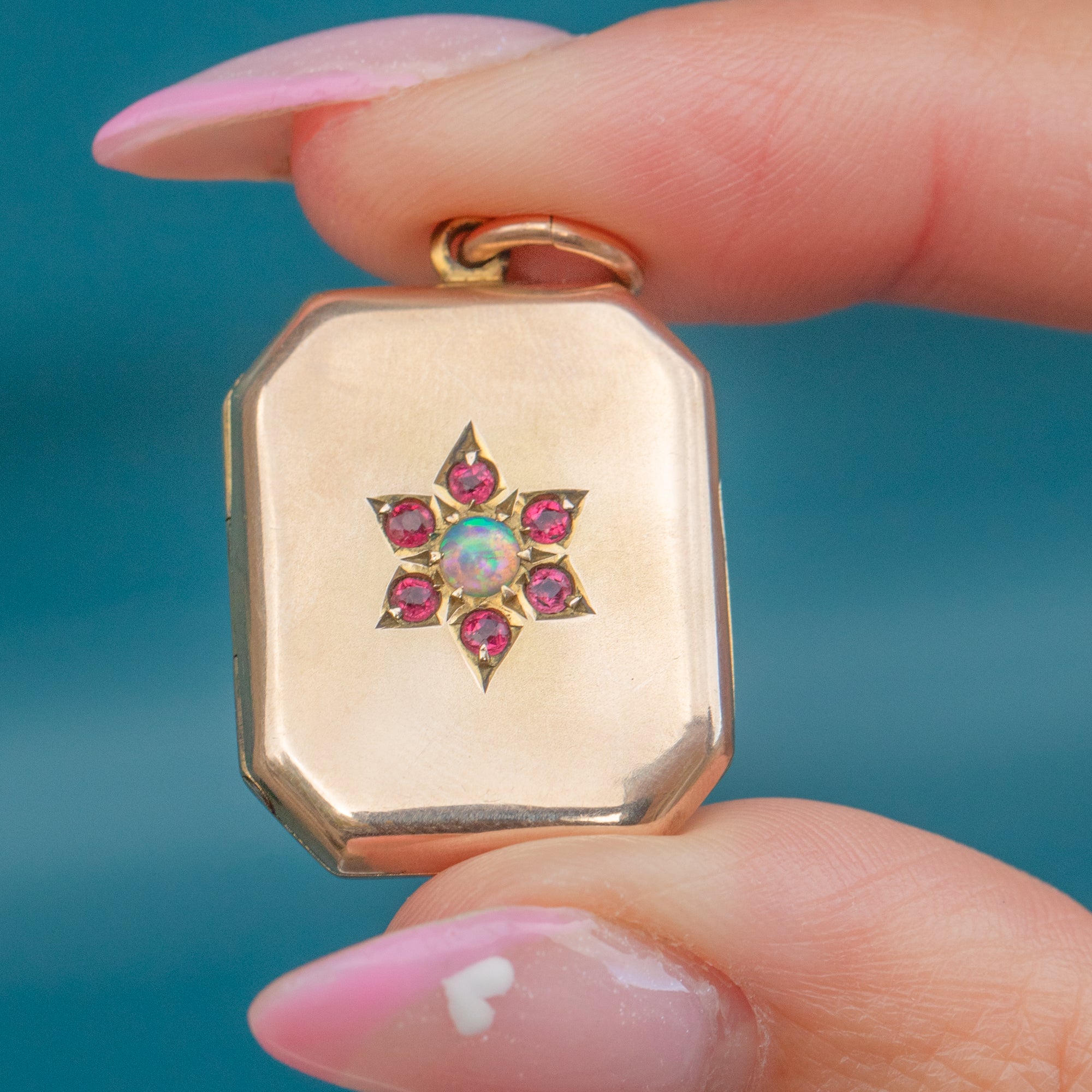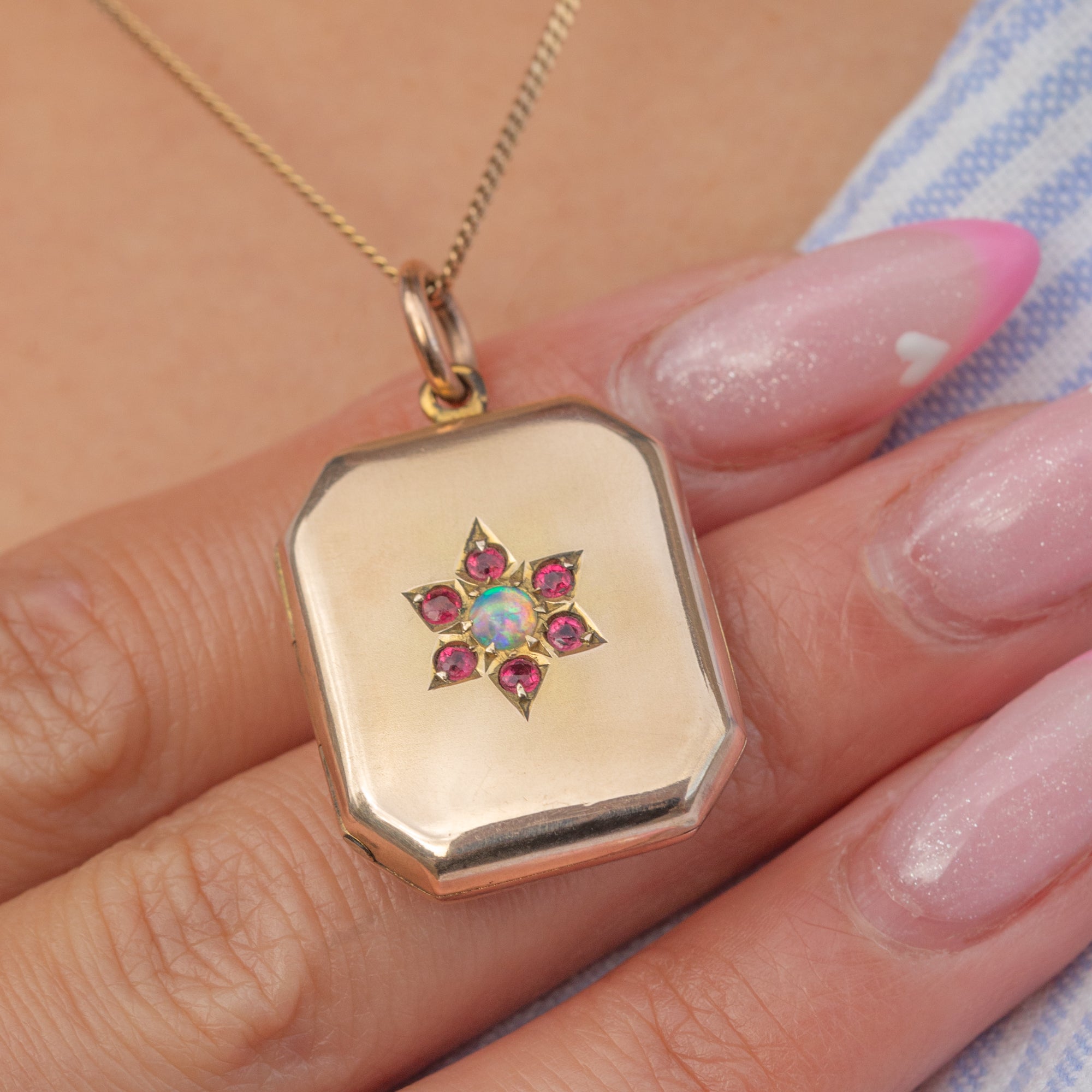 Edwardian 9ct Gold Garnet & Opal Flower Locket
