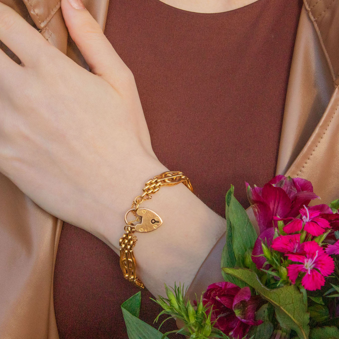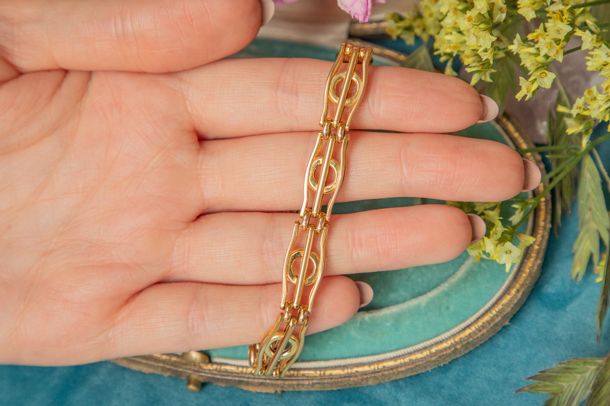 Bracelet à portail en or 9 carats édouardien, 12,5 g