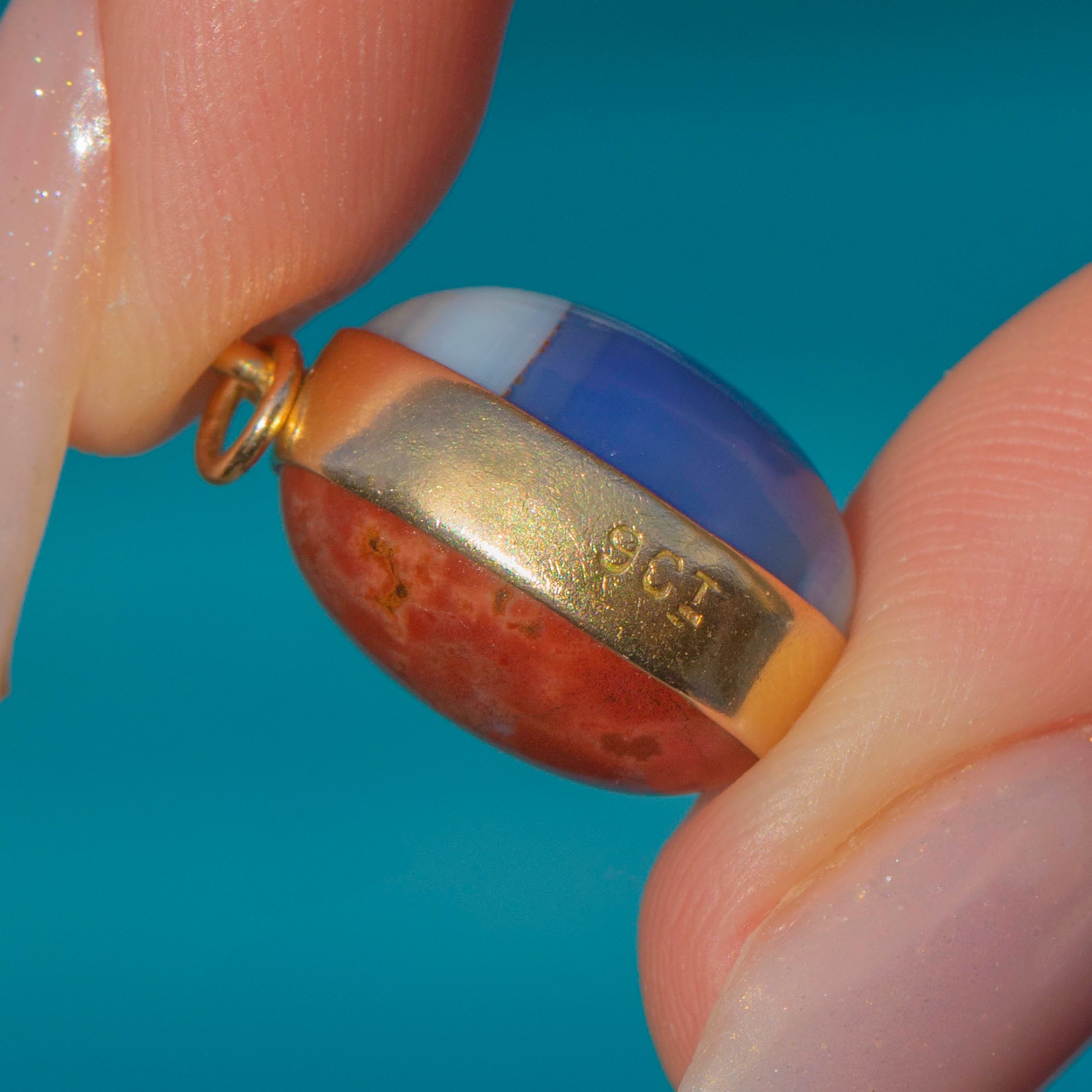 Edwardian 9ct Gold Jasper & Banded Chalcedony Egg Charm