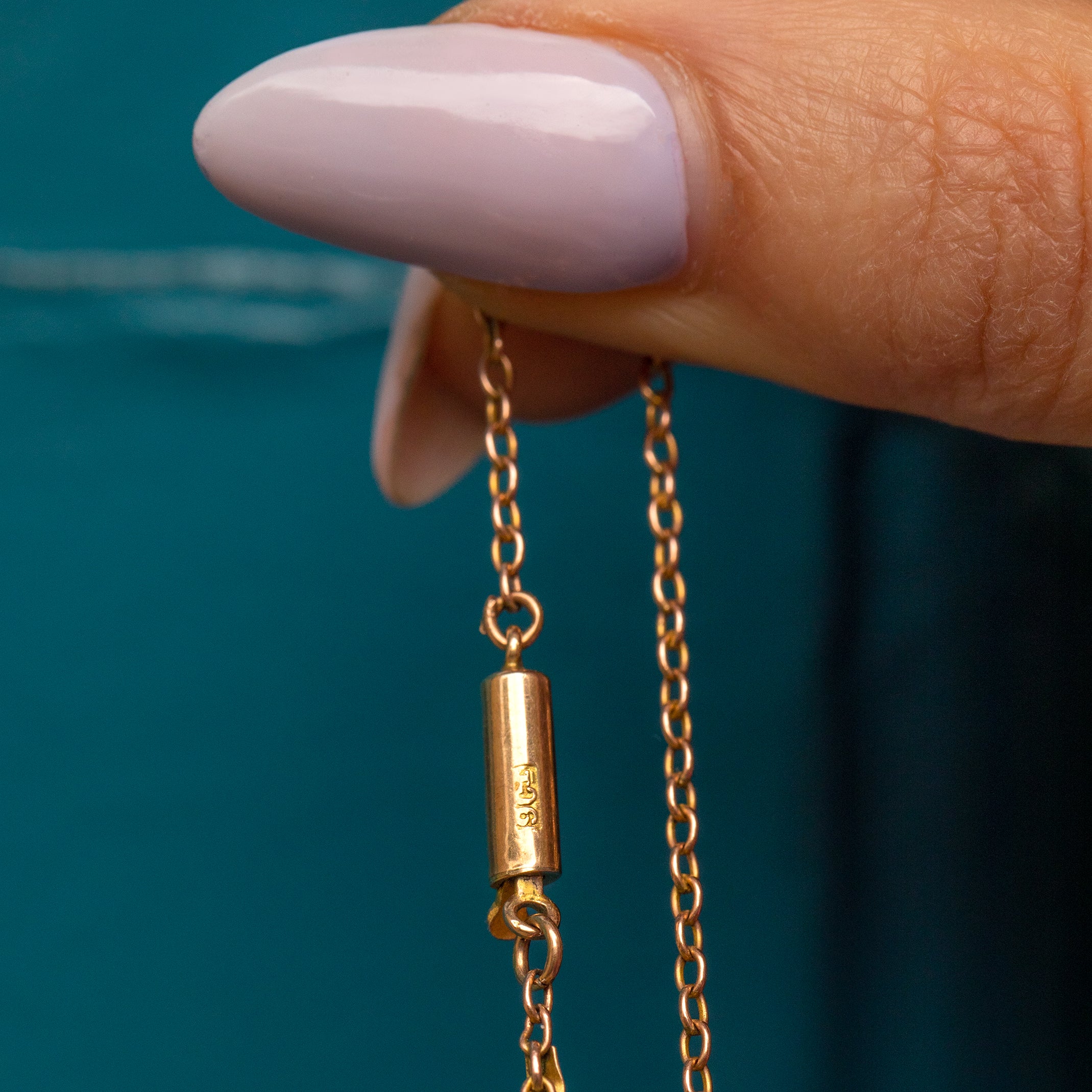 Crafted from solid 9ct Gold throughout, this antique Opal necklace hangs elegantly suspending the pendant drop centrally across your décolletage. This refined piece of Edwardian jewellery is set to become your go-to during the summer months!