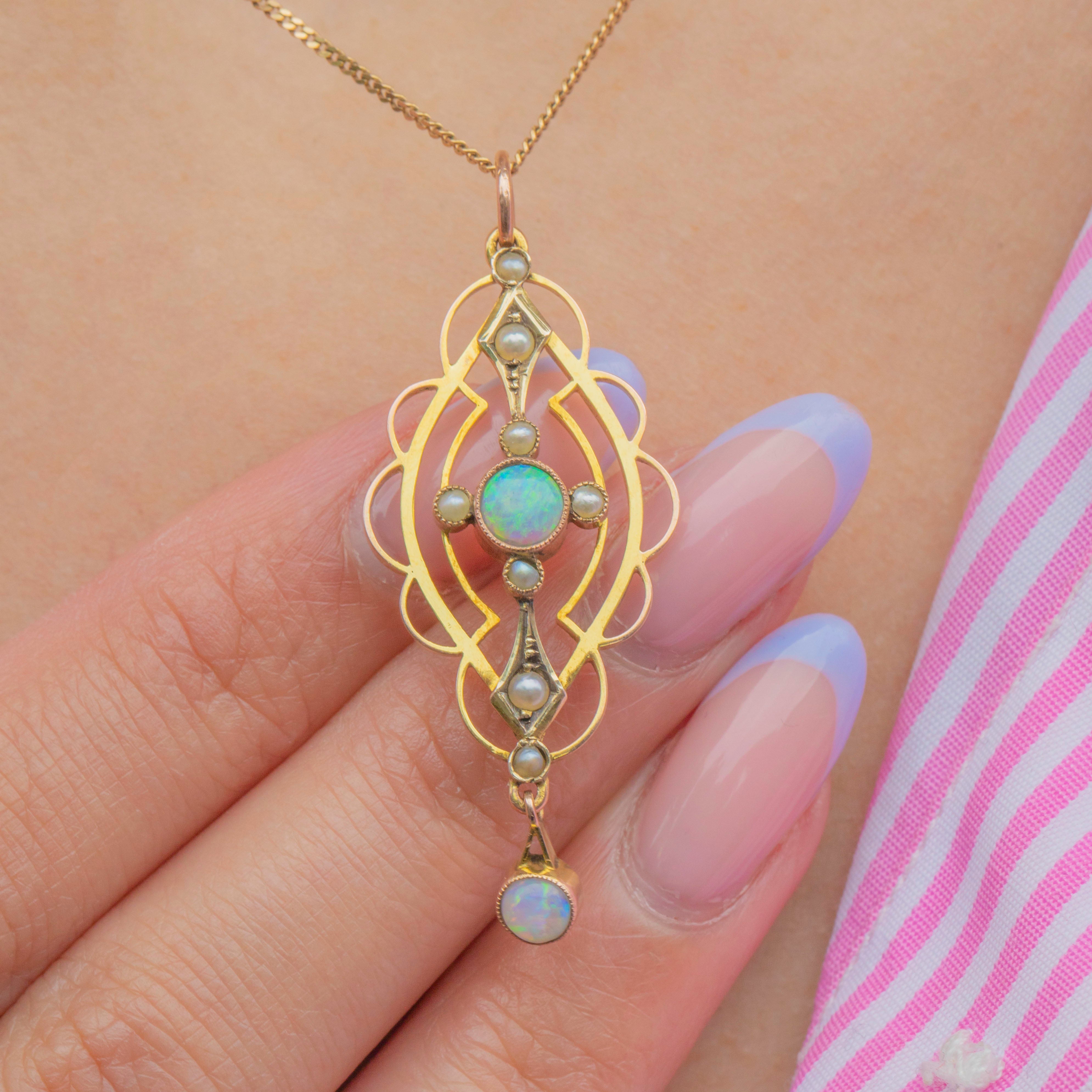 An elegant antique 9ct Gold Opal and Pearl pendant for your repertoire!