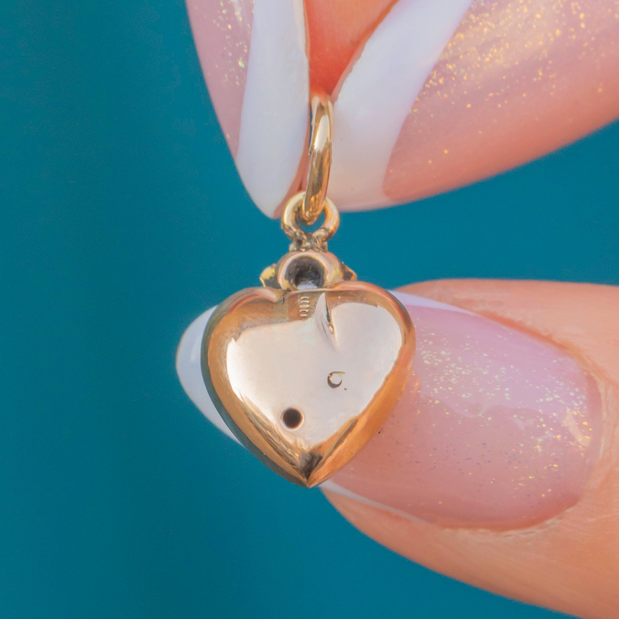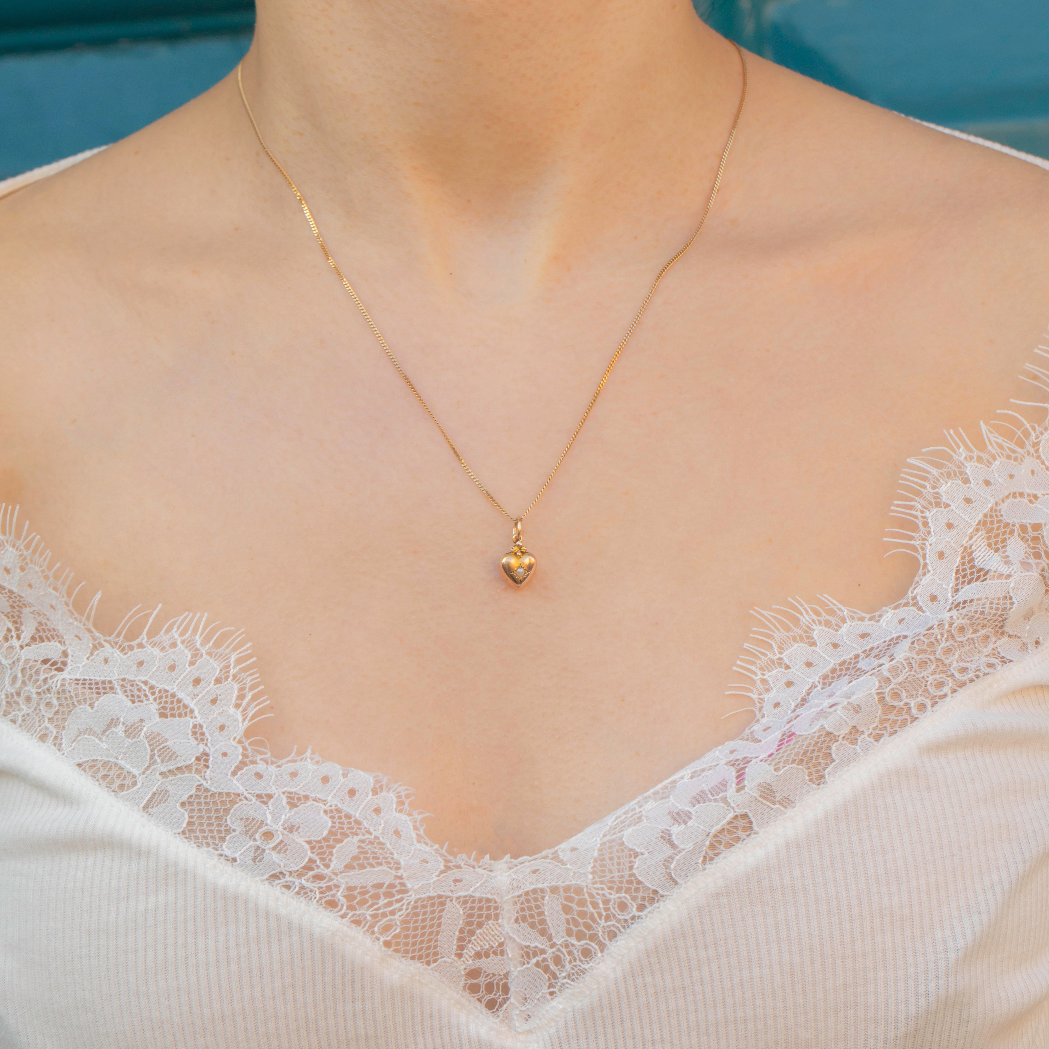 This Edwardian 9ct Gold Pearl crowned puffy heart charm will make a cute addition to your collection! The Gold has been formed into a satisfying puffy heart form with a high-shine polish and gorgeous rosy hue.