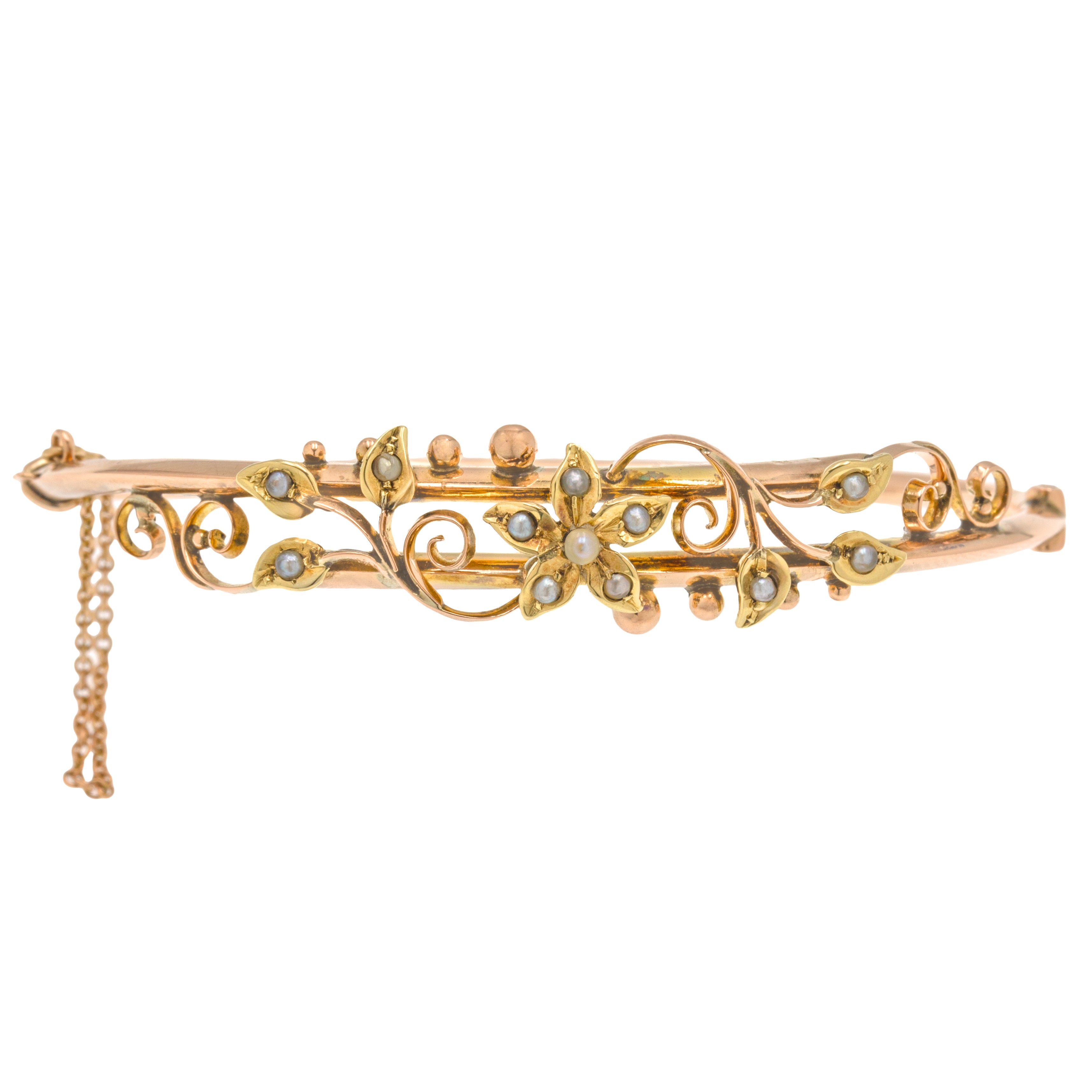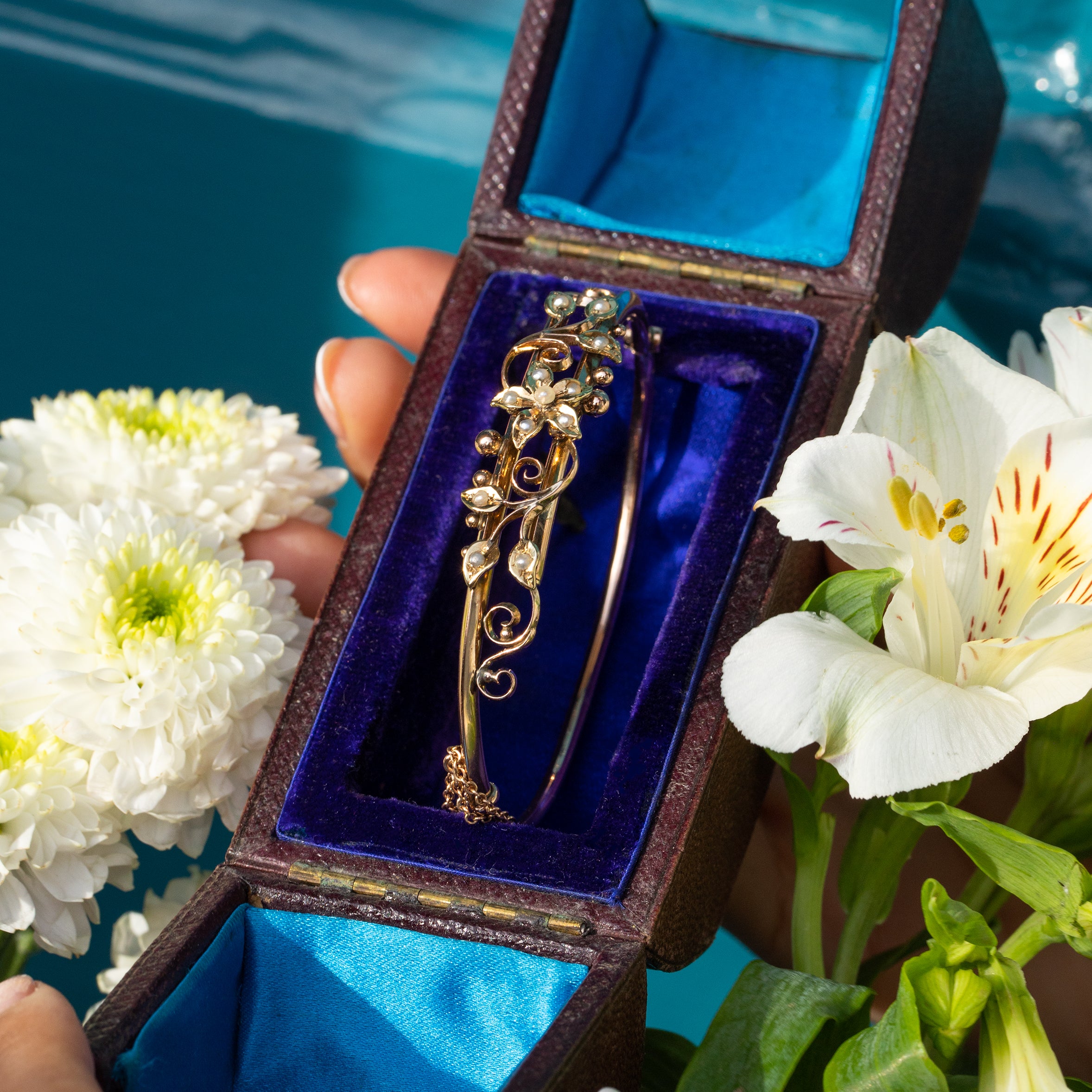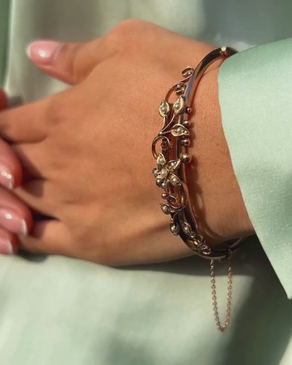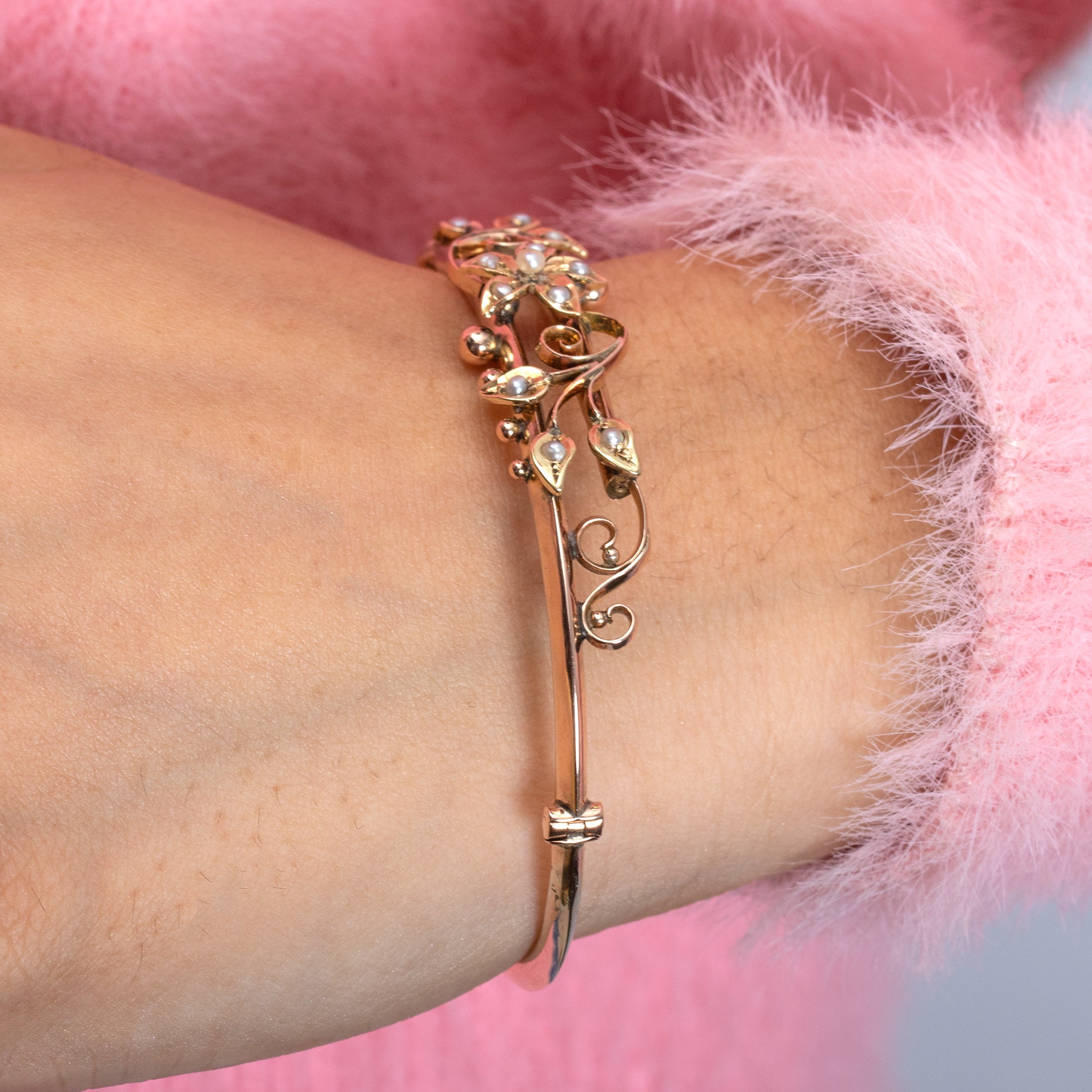 Bracelet floral en or 9 carats avec perles édouardien, vers 1906