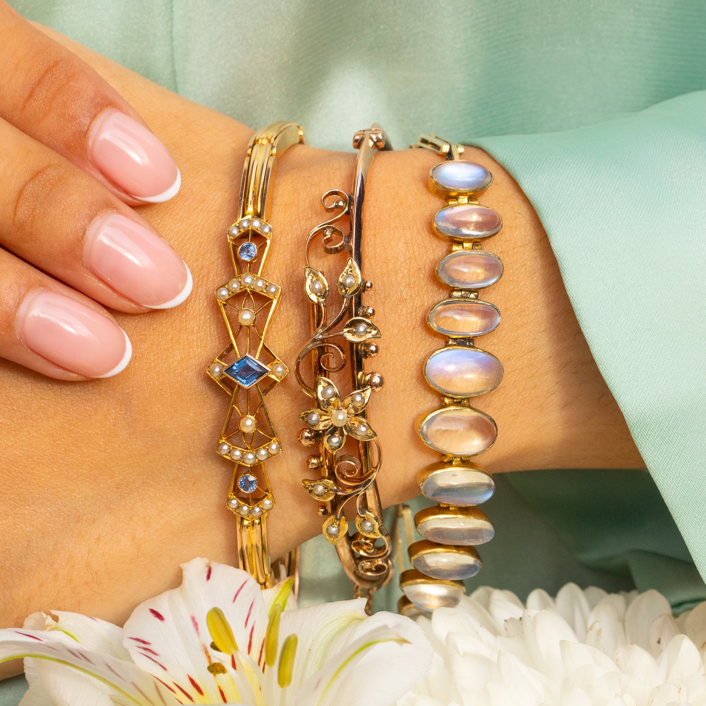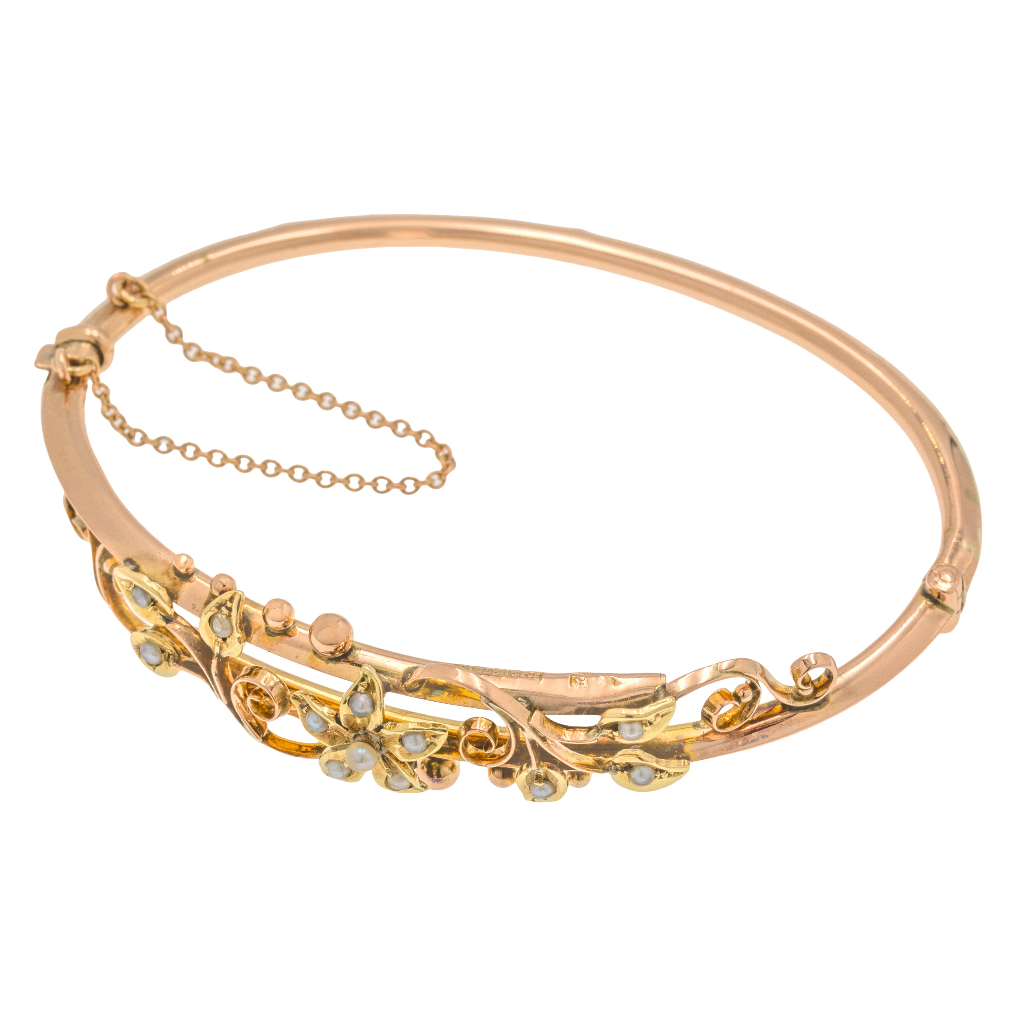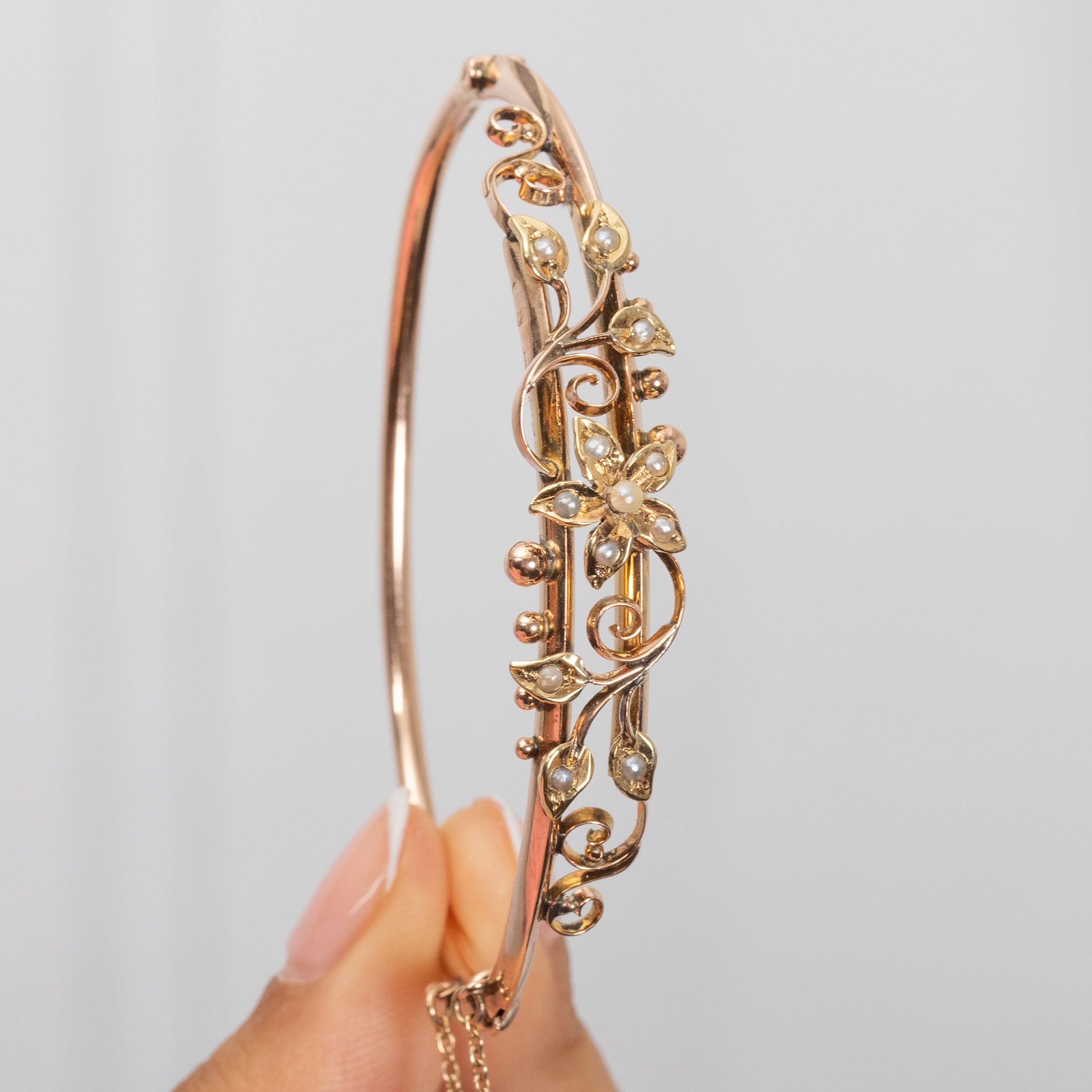 Bracelet floral en or 9 carats avec perles édouardien, vers 1906