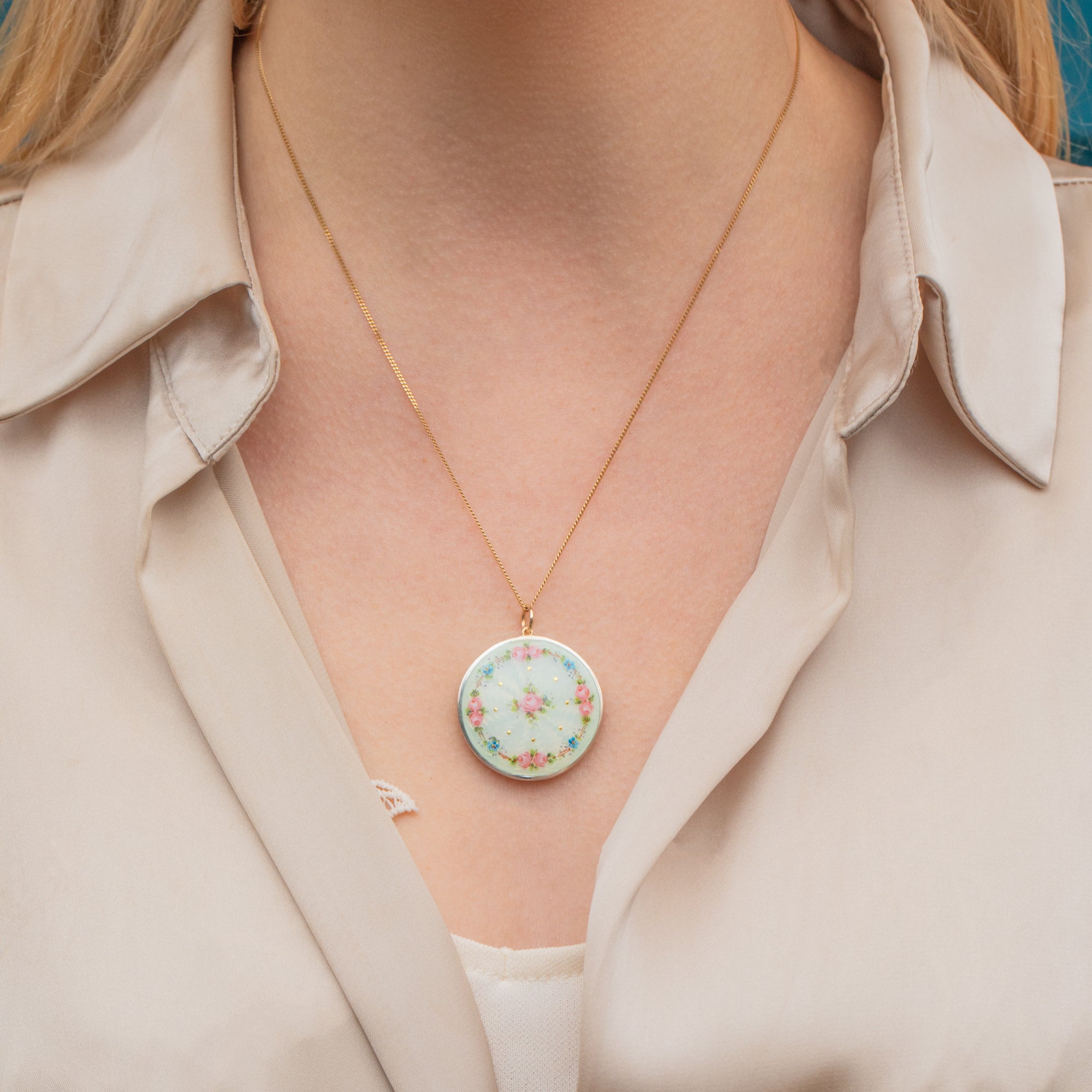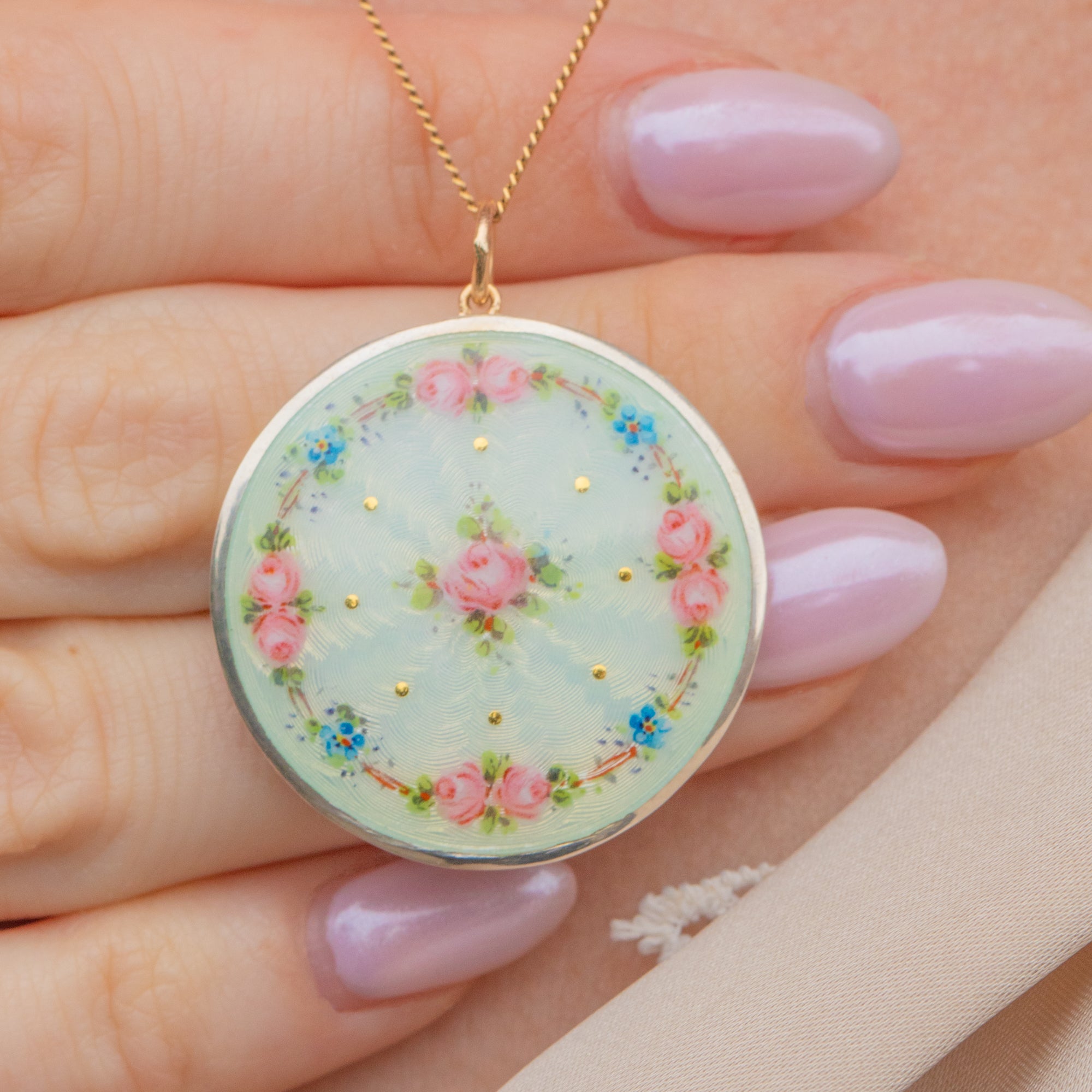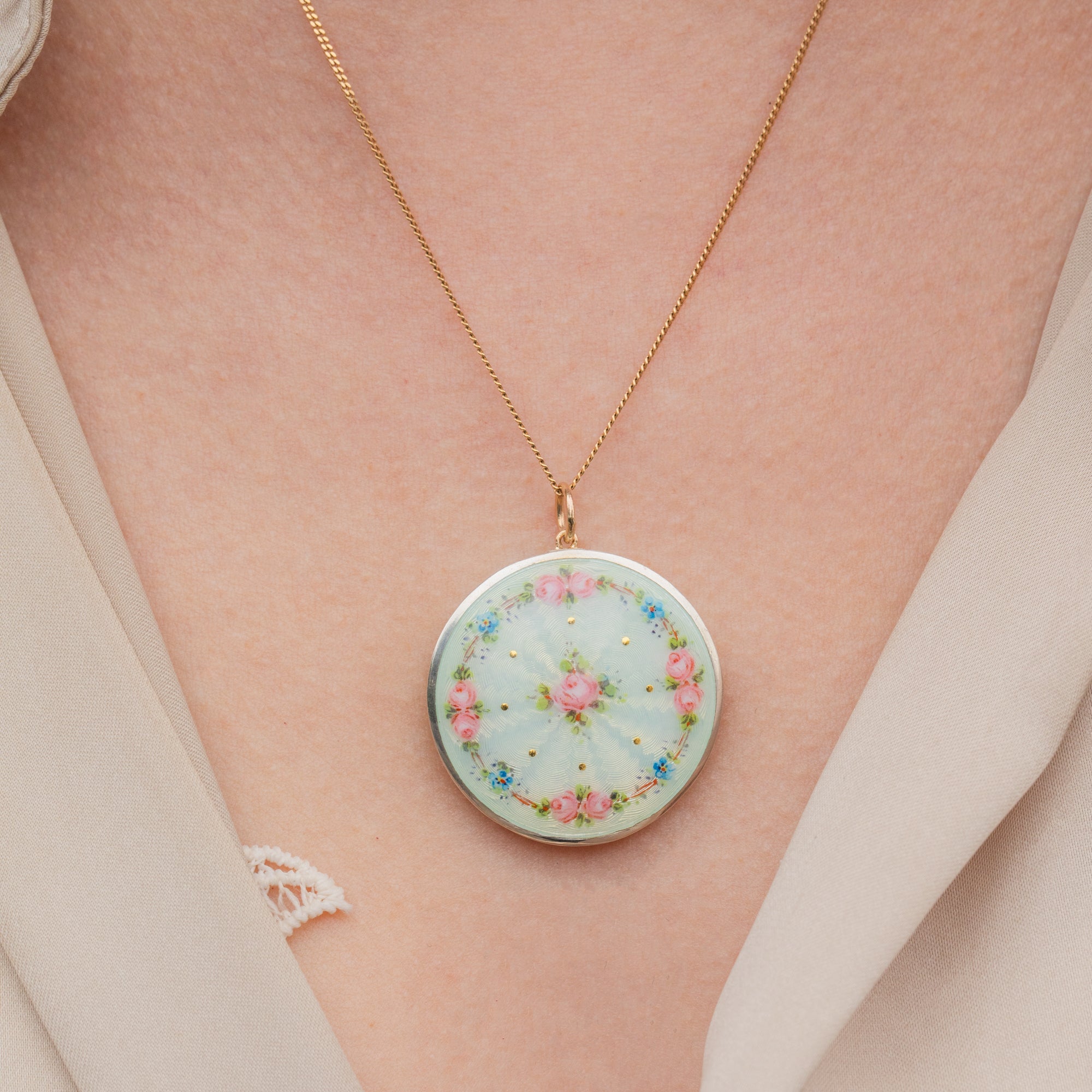 This Edwardian Guilloché Enamel locket features enchanting floral motifs and is something out of a fairytale!