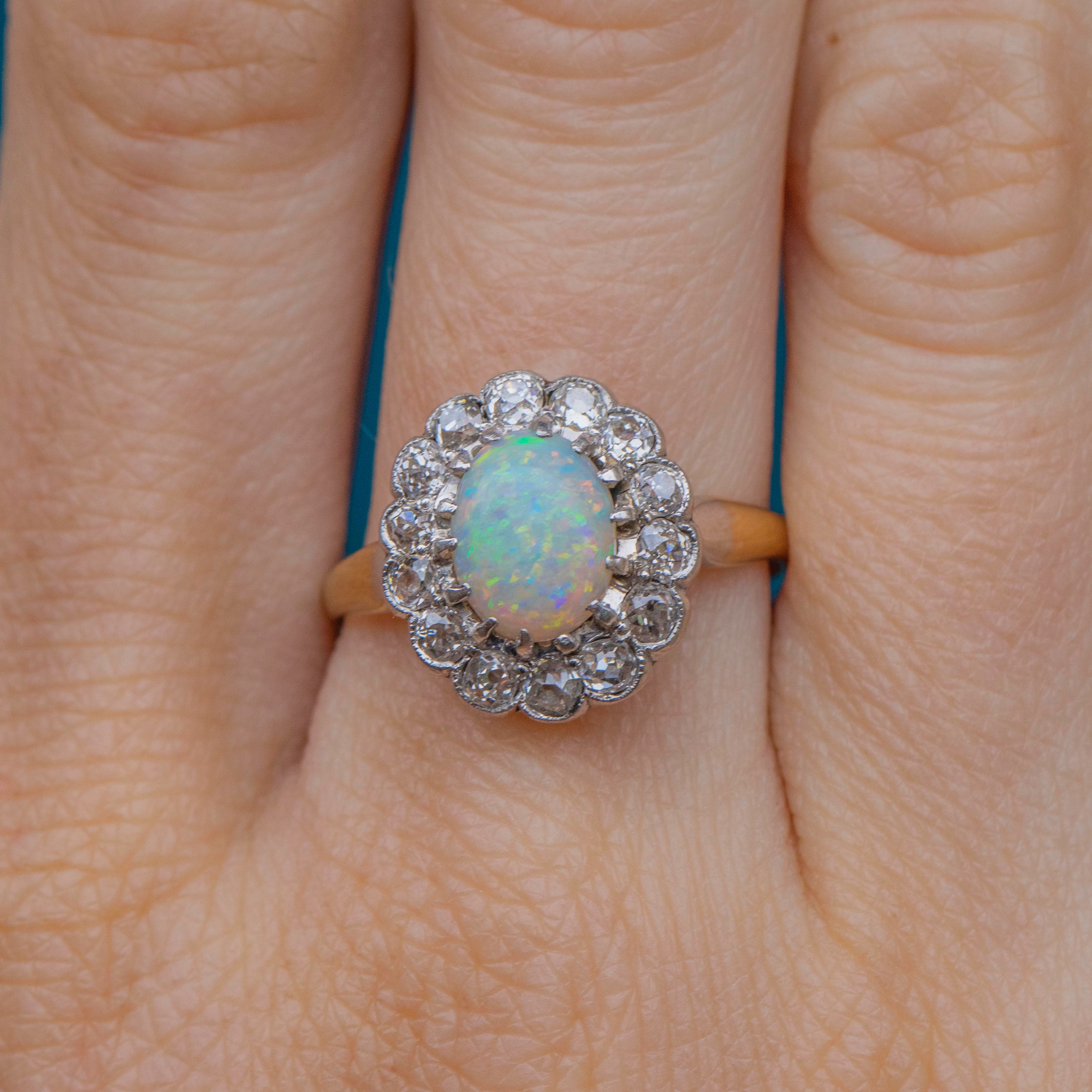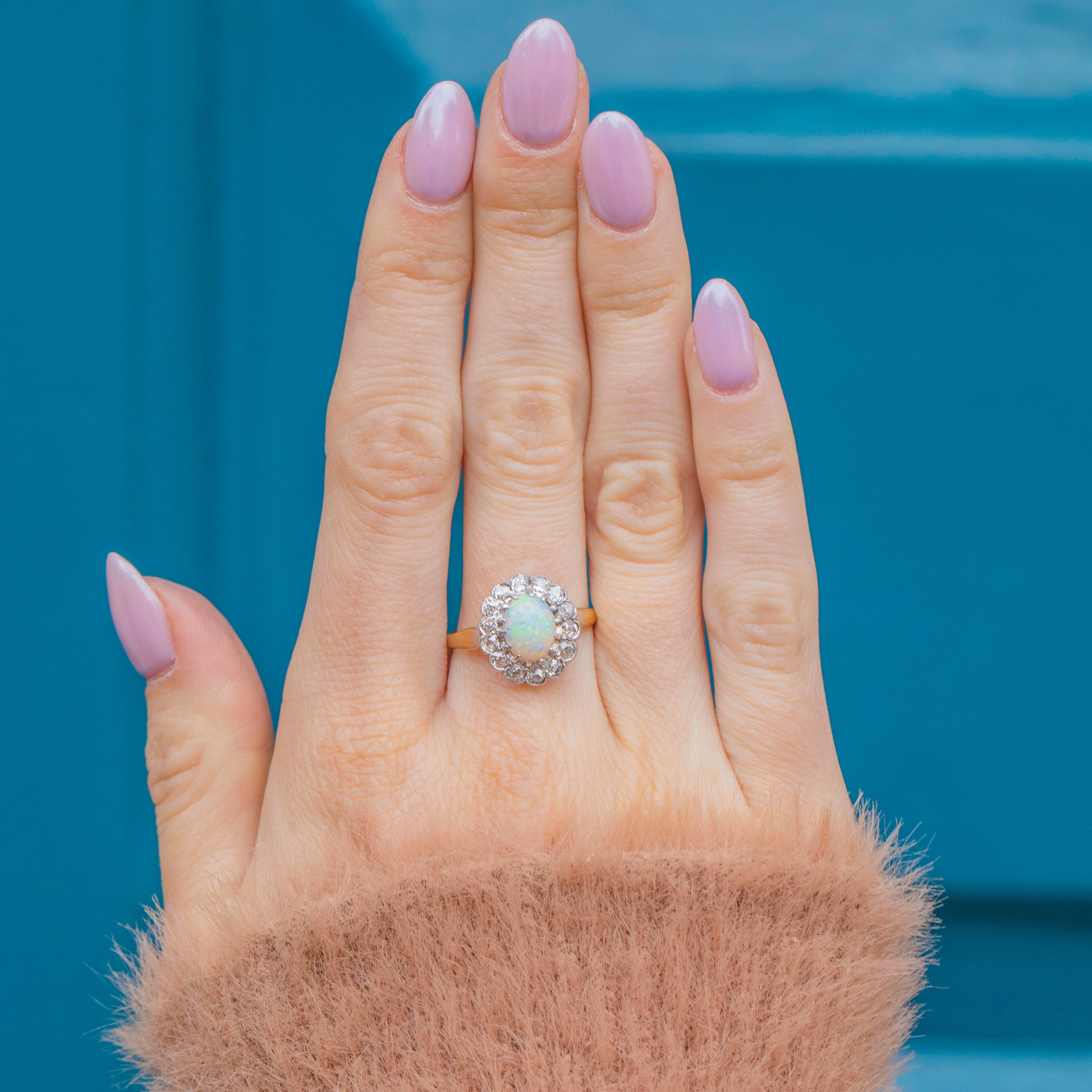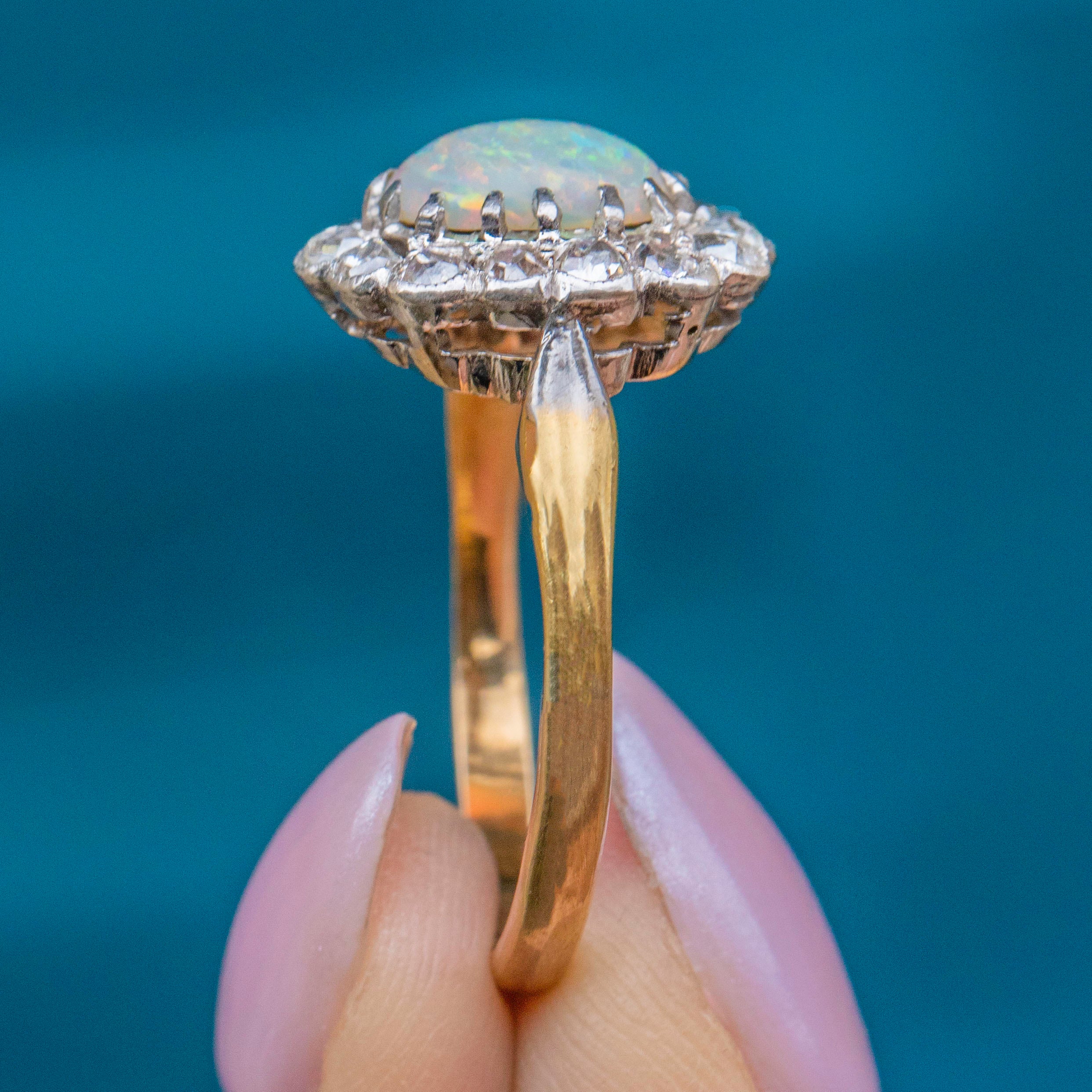 Edwardian Opal Diamond Cluster Ring, 0.75ct Opal, 18ct Gold & Platinum