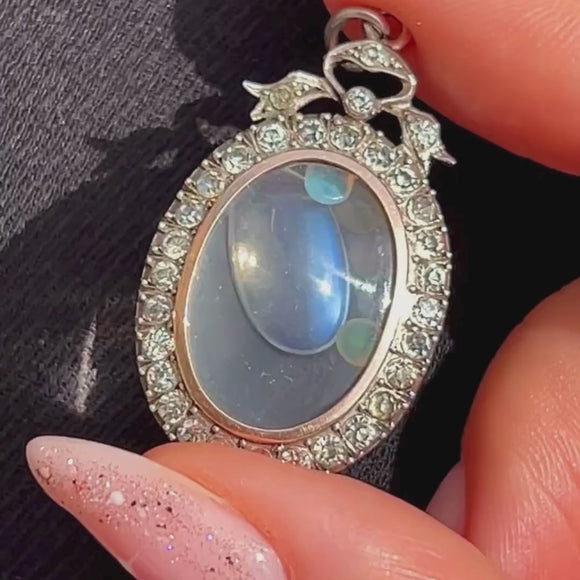 EXCELLENT: This Edwardian Silver Paste shaker locket with Opals and Moonstones is in excellent condition. All Diamond Paste stones are present and secure in their settings. There is a slight variation in colour tone, but as a whole they glisten brightly! Her glass is smooth to the touch, preserving the gorgeous gemstones inside. This super sweet locket will satisfy all your sparkle needs!