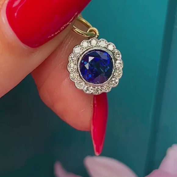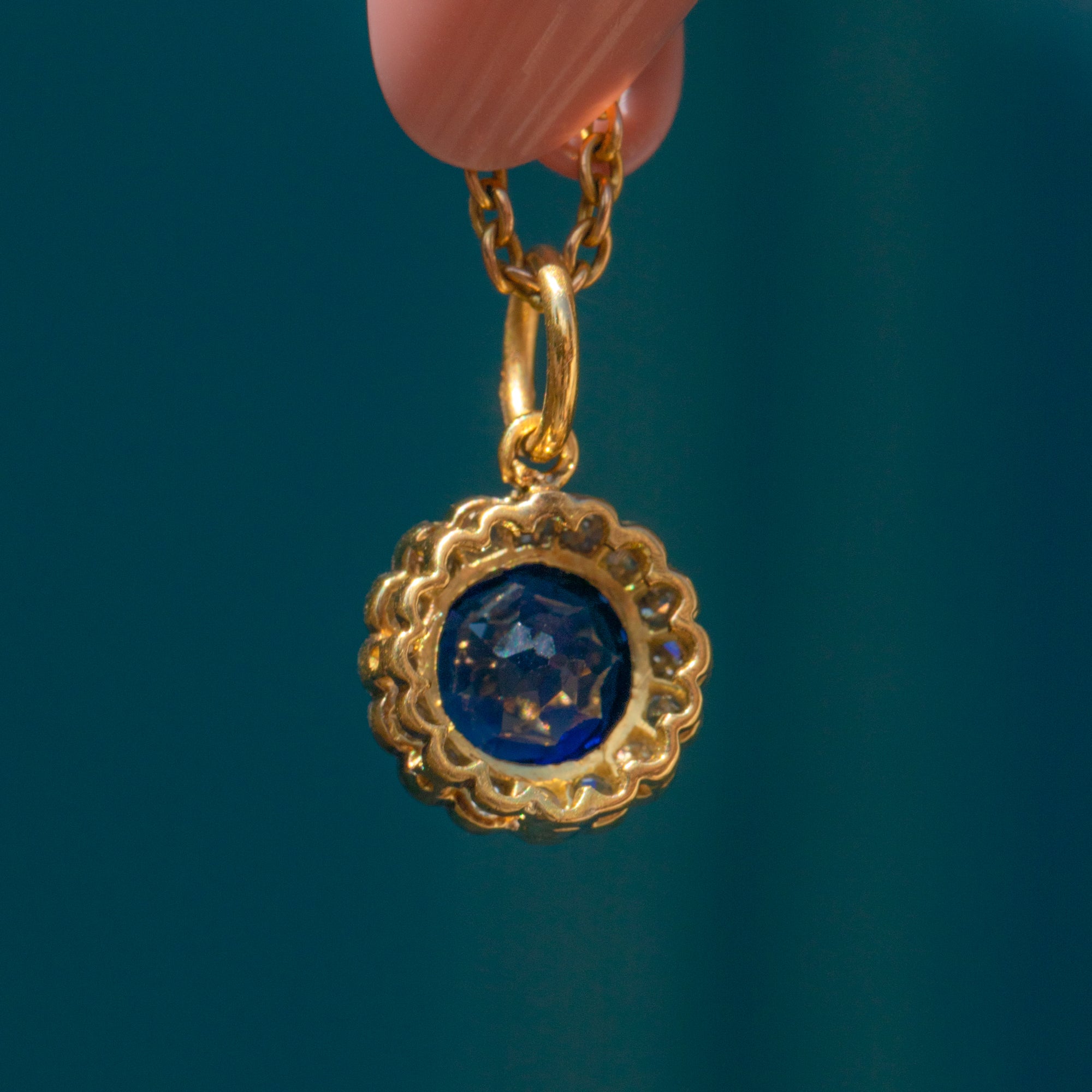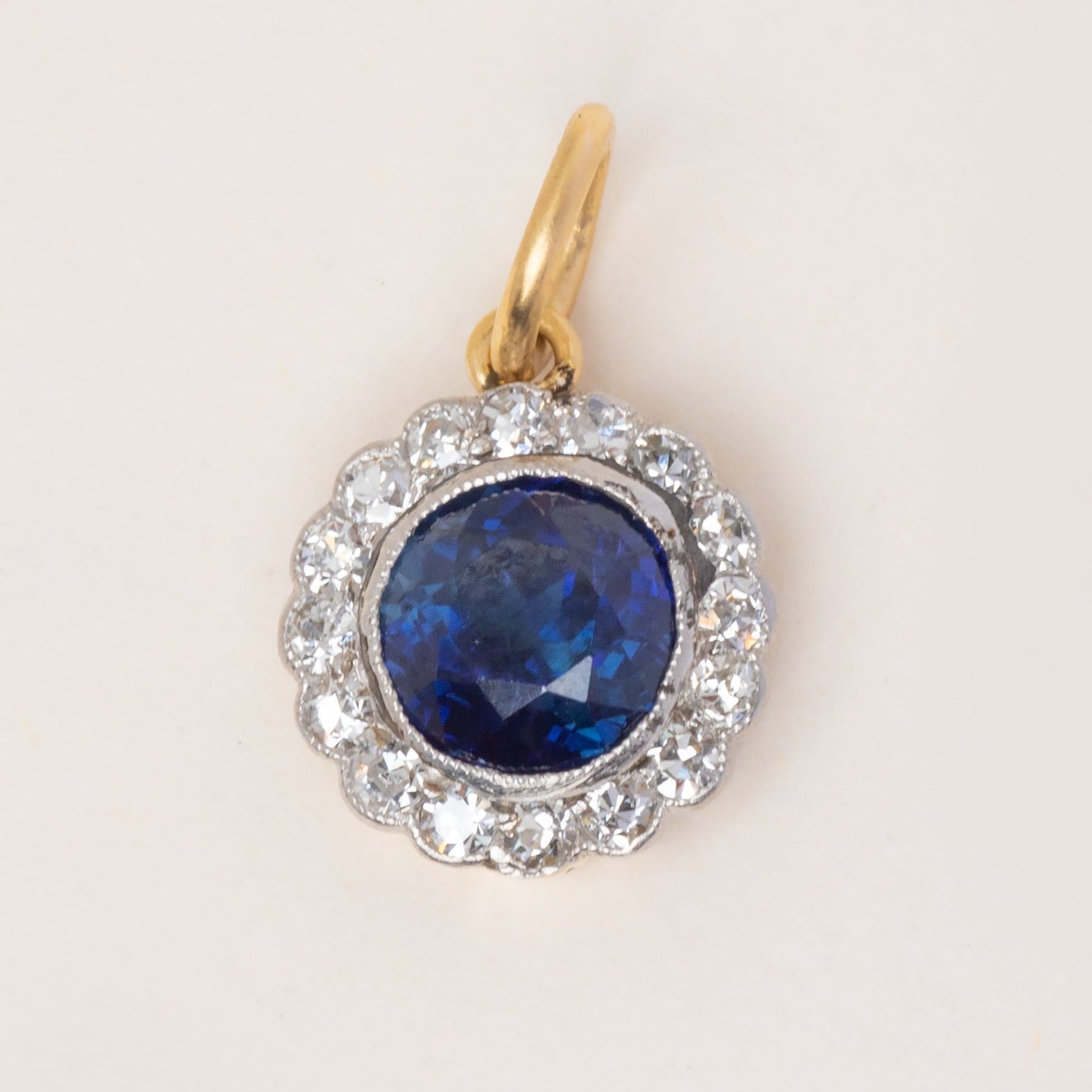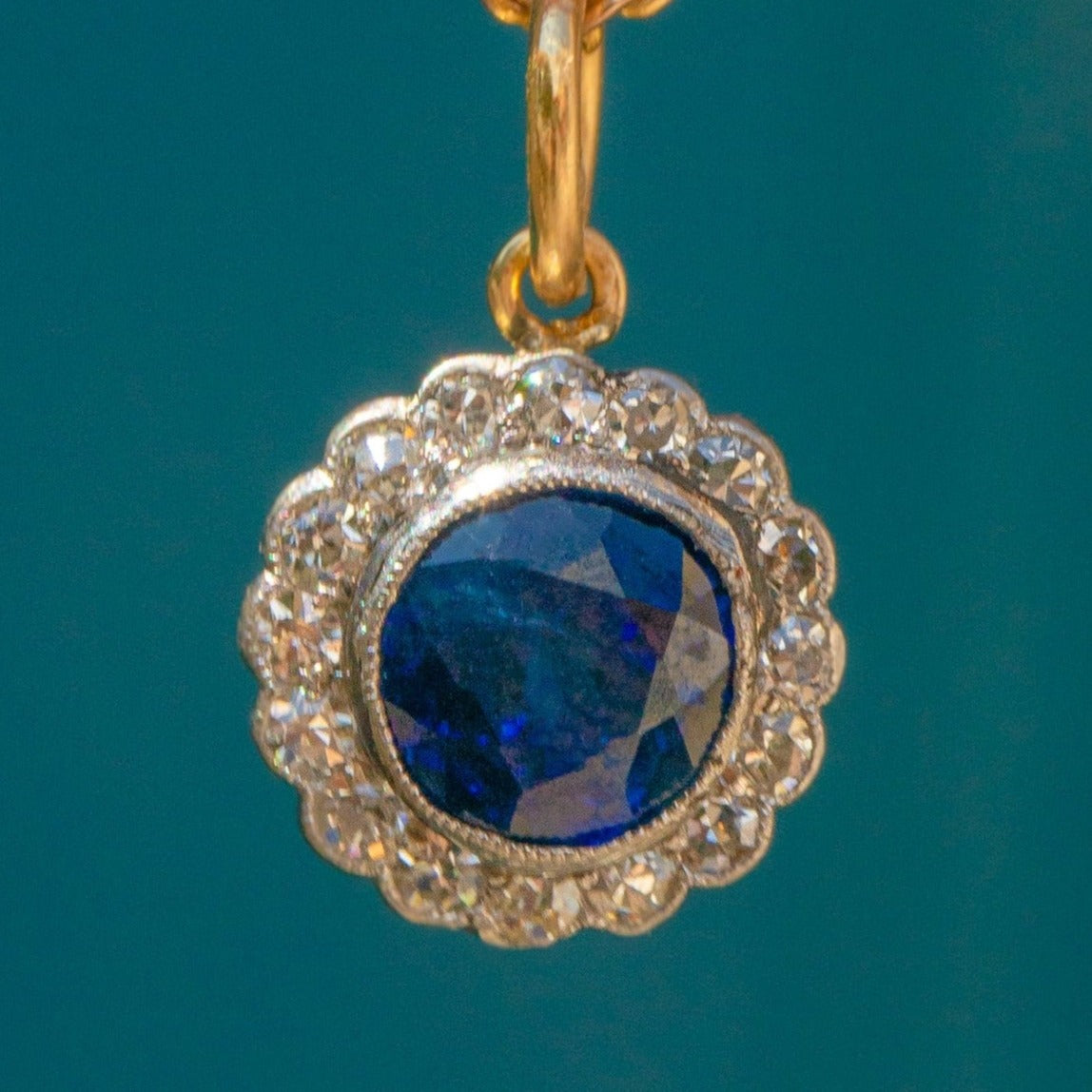 Edwardian 18ct Gold Sapphire Diamond Cluster Charm, 1.00ct Sapphire