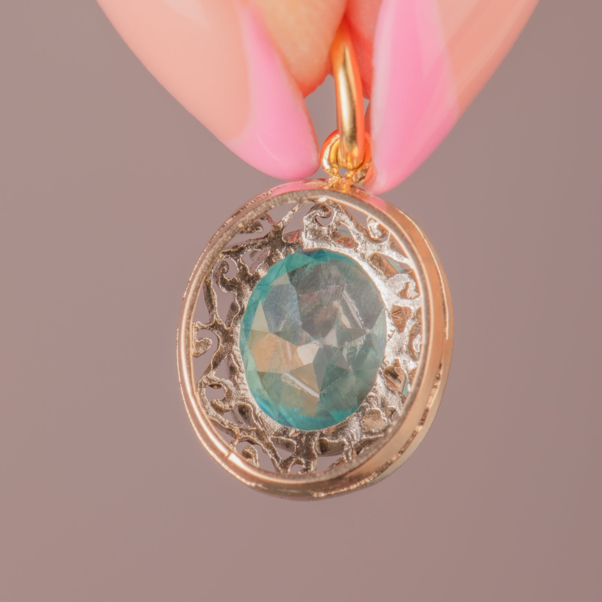 Edwardian Silver & 9ct Gold Blue Zircon Charm 1.20ct