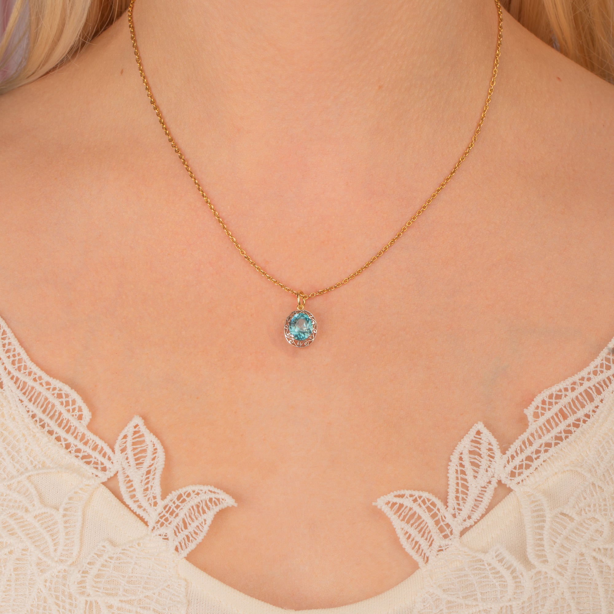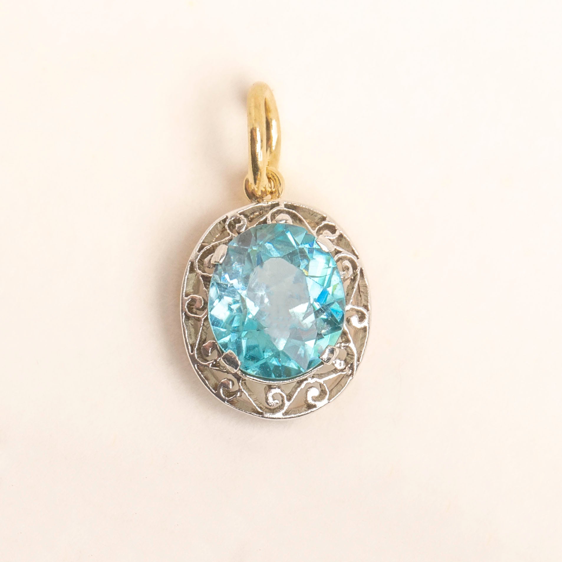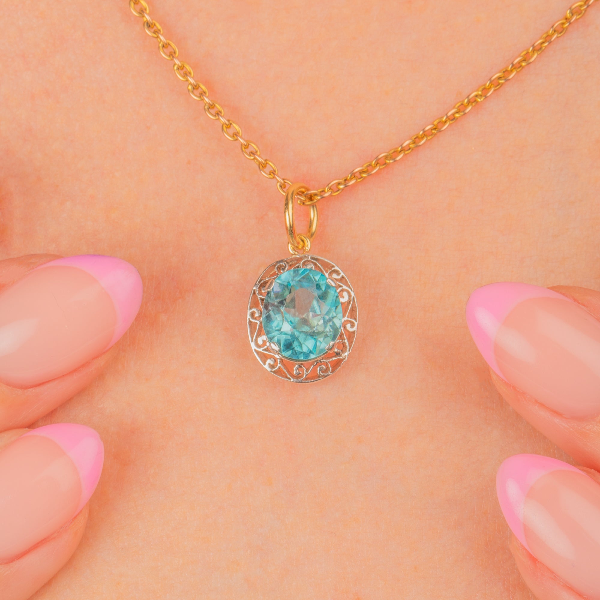 Haloed by ornate Silver work, this blue Zircon pendant is a feast for the eyes! Dainty in size but packing a serious punch, she will bring bundles of Edwardian charm to your neck stack.