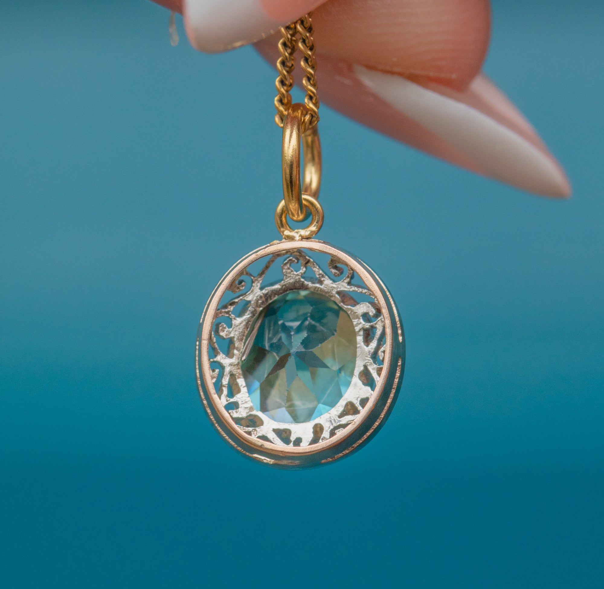 Edwardian Silver & 9ct Gold Blue Zircon Charm, 2.50ct