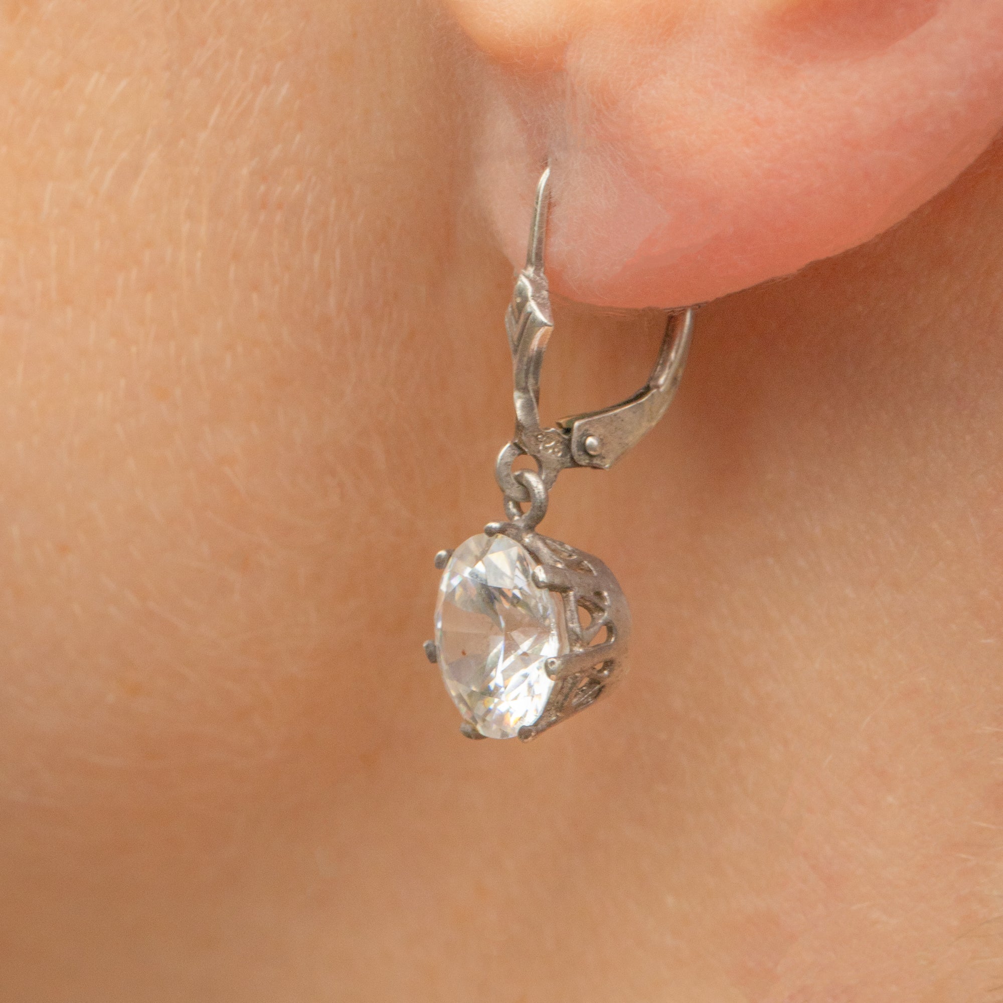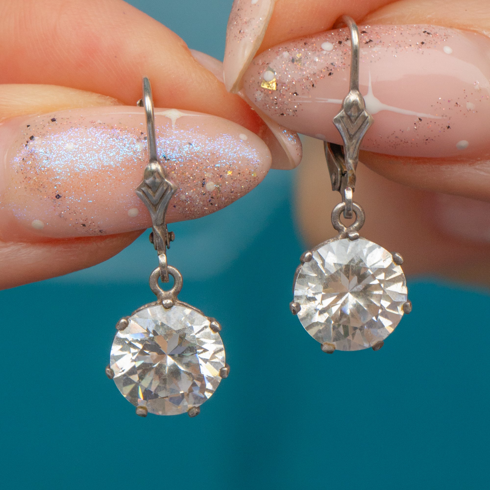 Add a twinkling flourish to your outfit with these Edwardian Silver crown-set Paste drop earrings! These elegant drop earrings will gracefully sway below your earlobes, adding sophistication to every formal event, dinner, and party. Their versatile design ensures versatility, making them your go-to accessory for any attire.