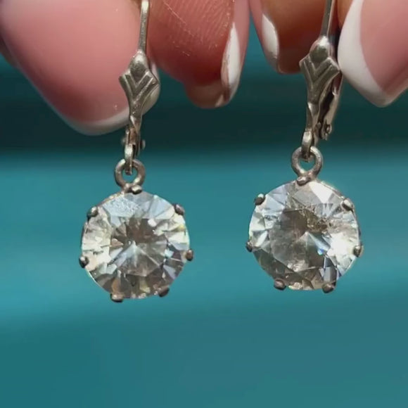 Edwardian Silver Crown-Set Paste Drop Earrings