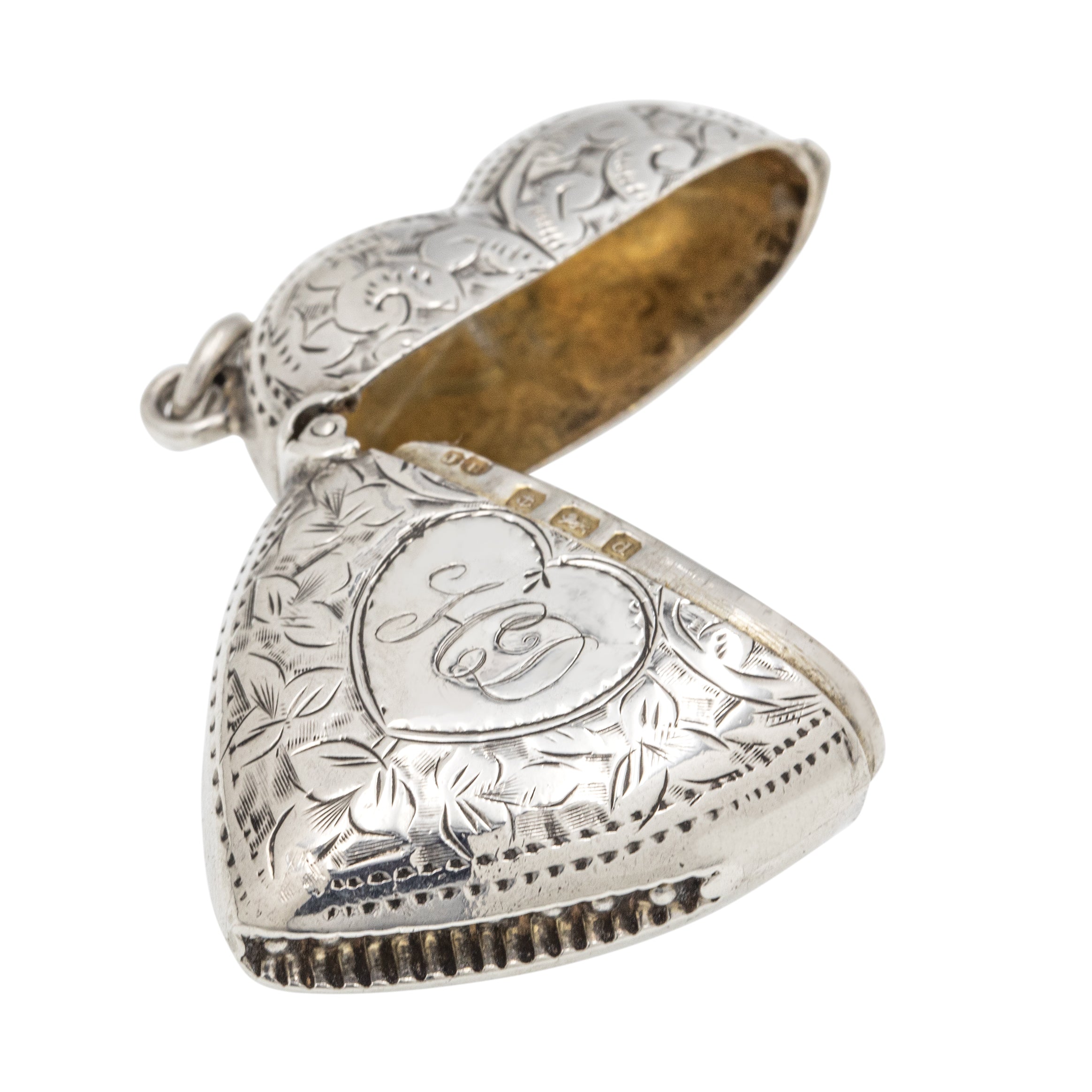 Edwardian Silver Engraved Heart Shaped Vesta Case