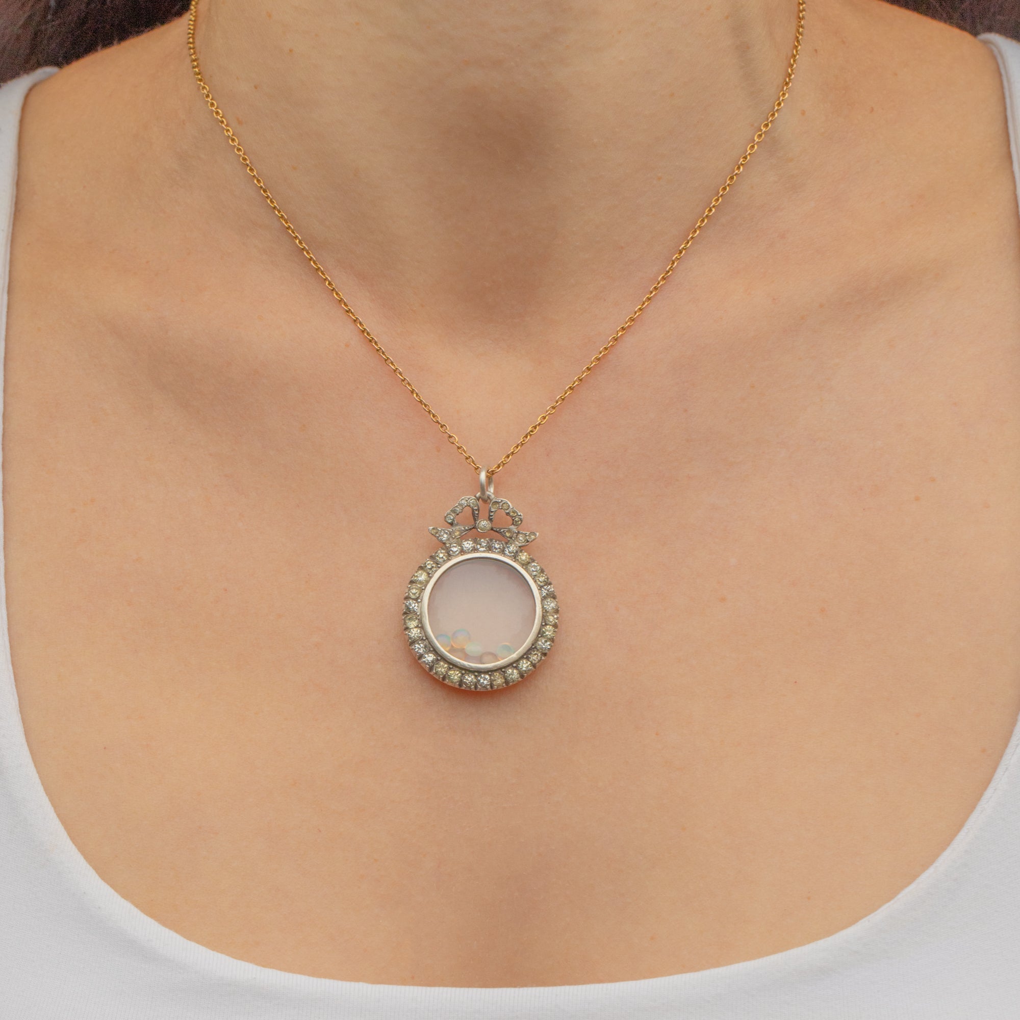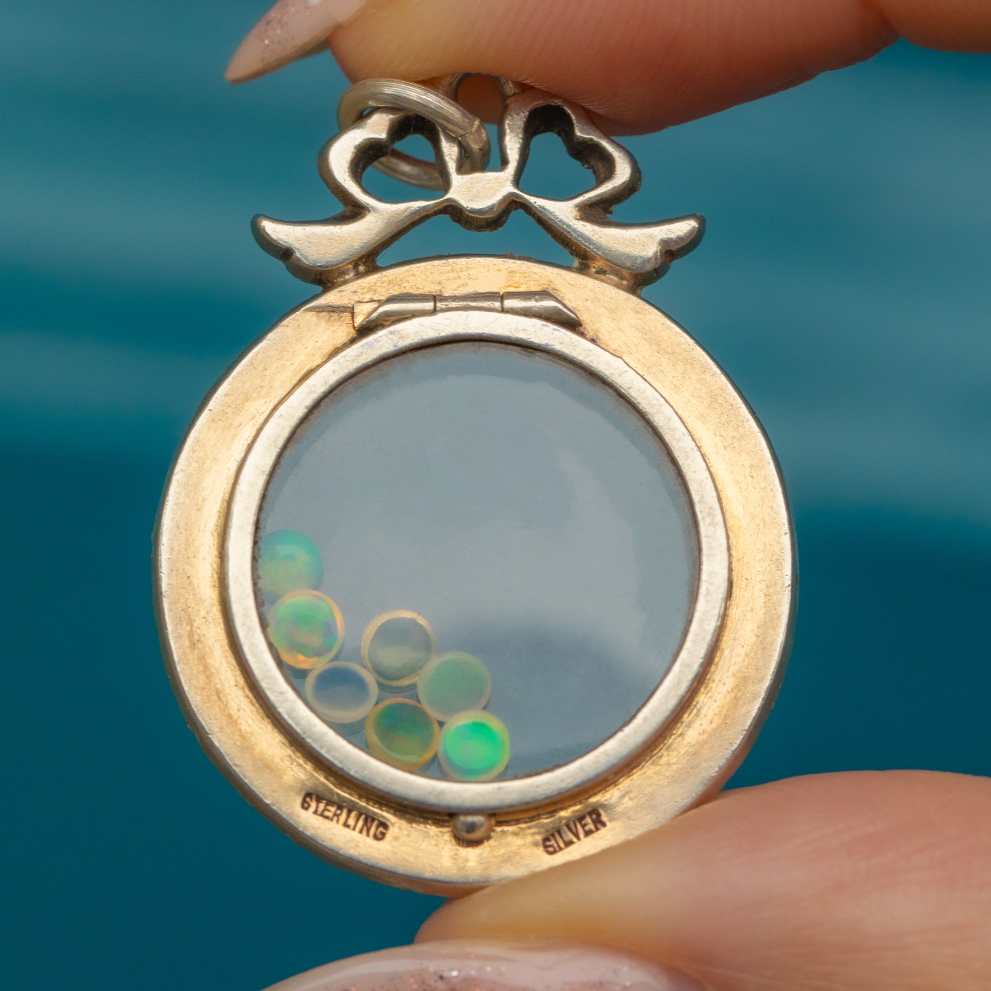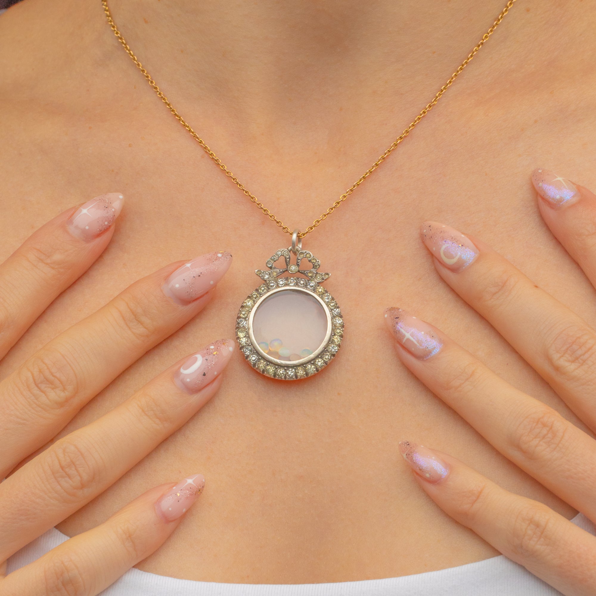 VERY GOOD. This Edwardian Silver Opal shaker locket is in superb condition. Each of her twinkling Paste gemstones are present and secure, and while some of them have discoloured over the years, this does not affect the way they glisten and sparkle under light! There are a few signs of wear on the back of the locket but nothing that detracts from her beauty. If you have a penchant for sparkle and gemstones, this Edwardian shaker locket is not one to be missed!