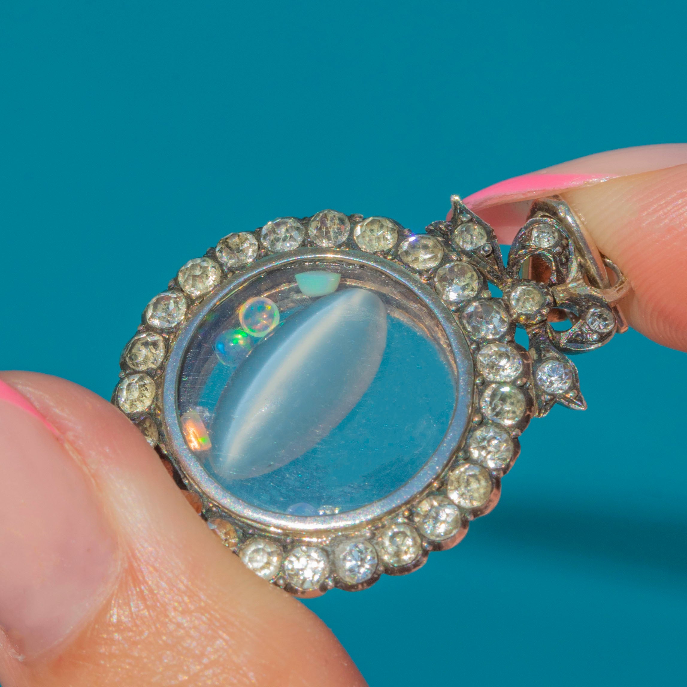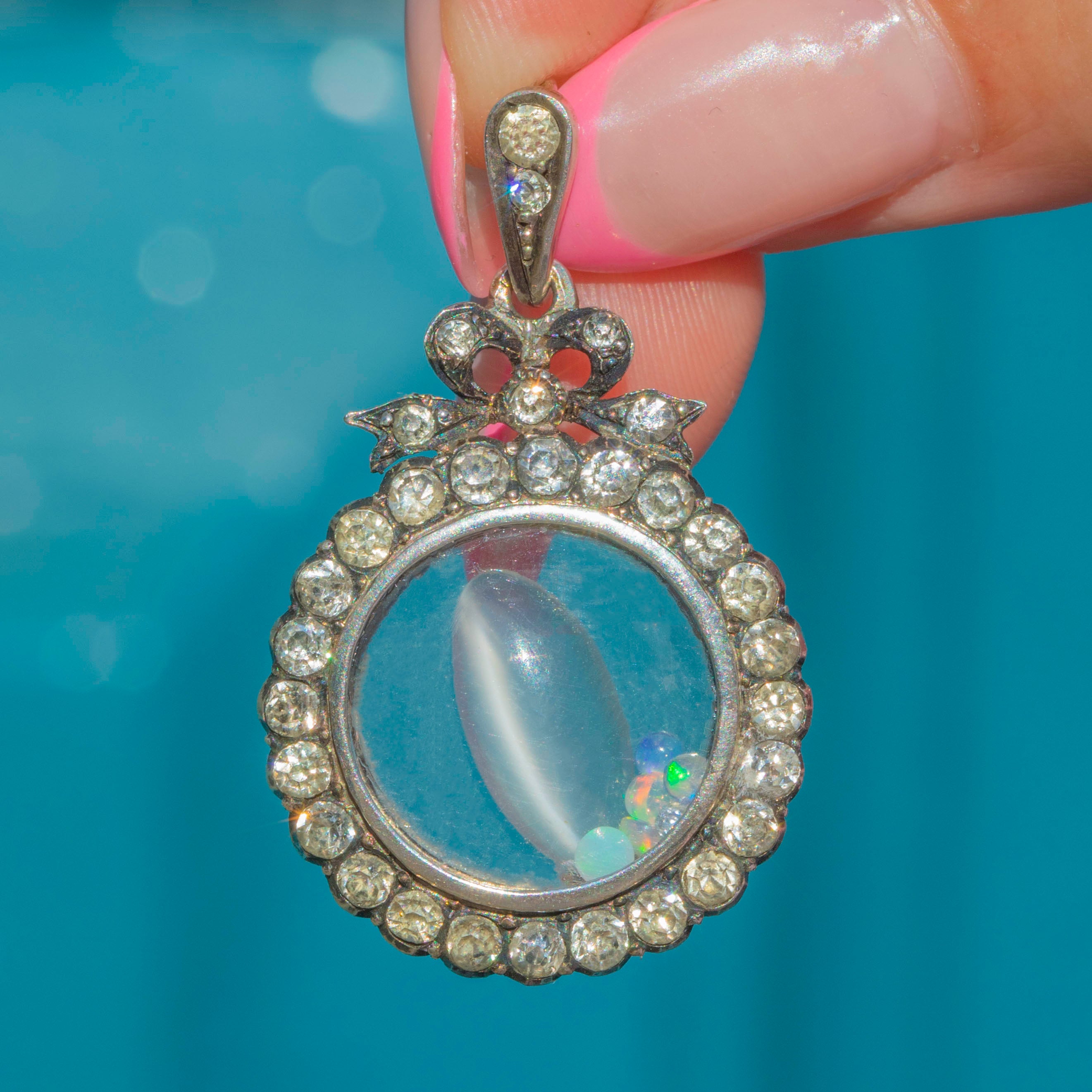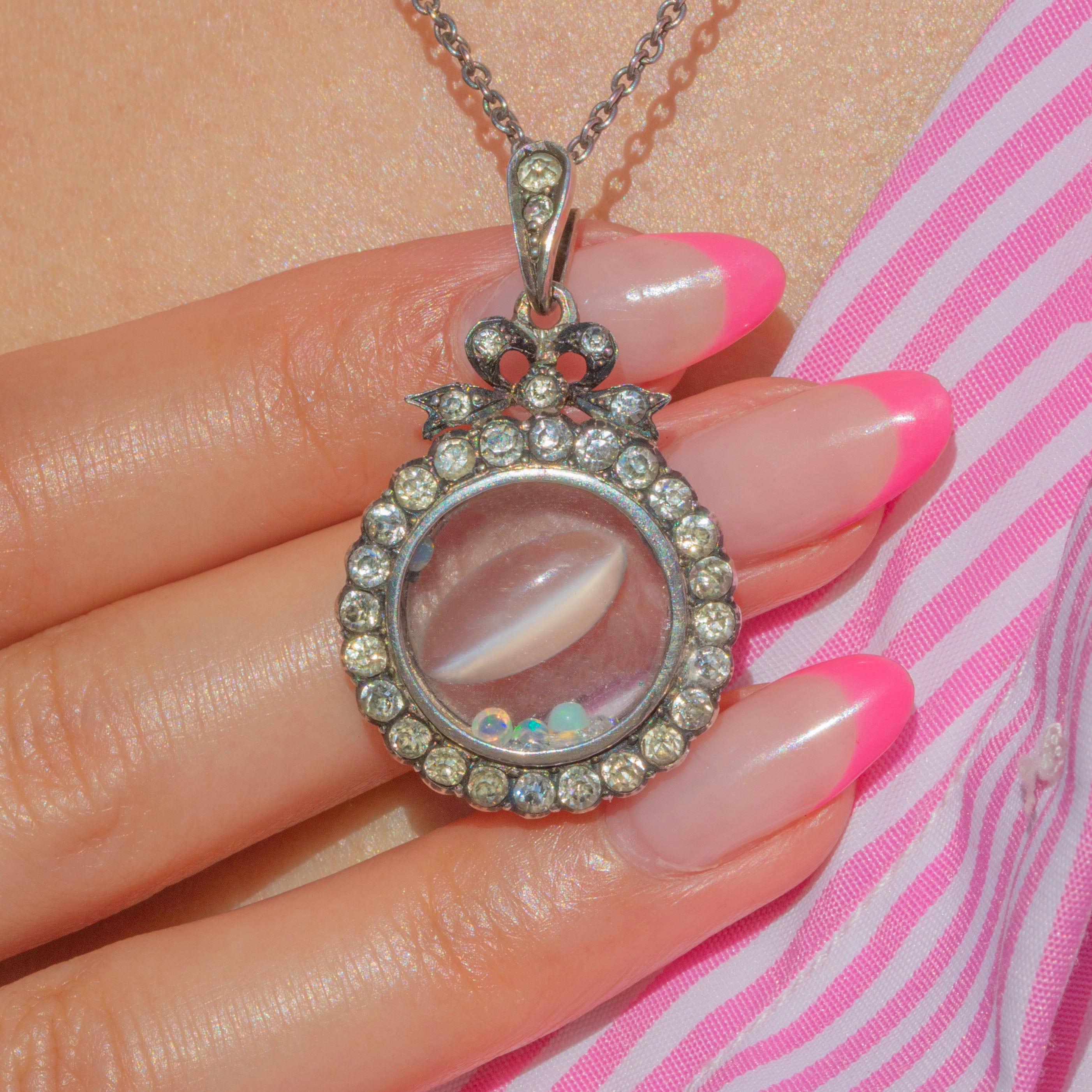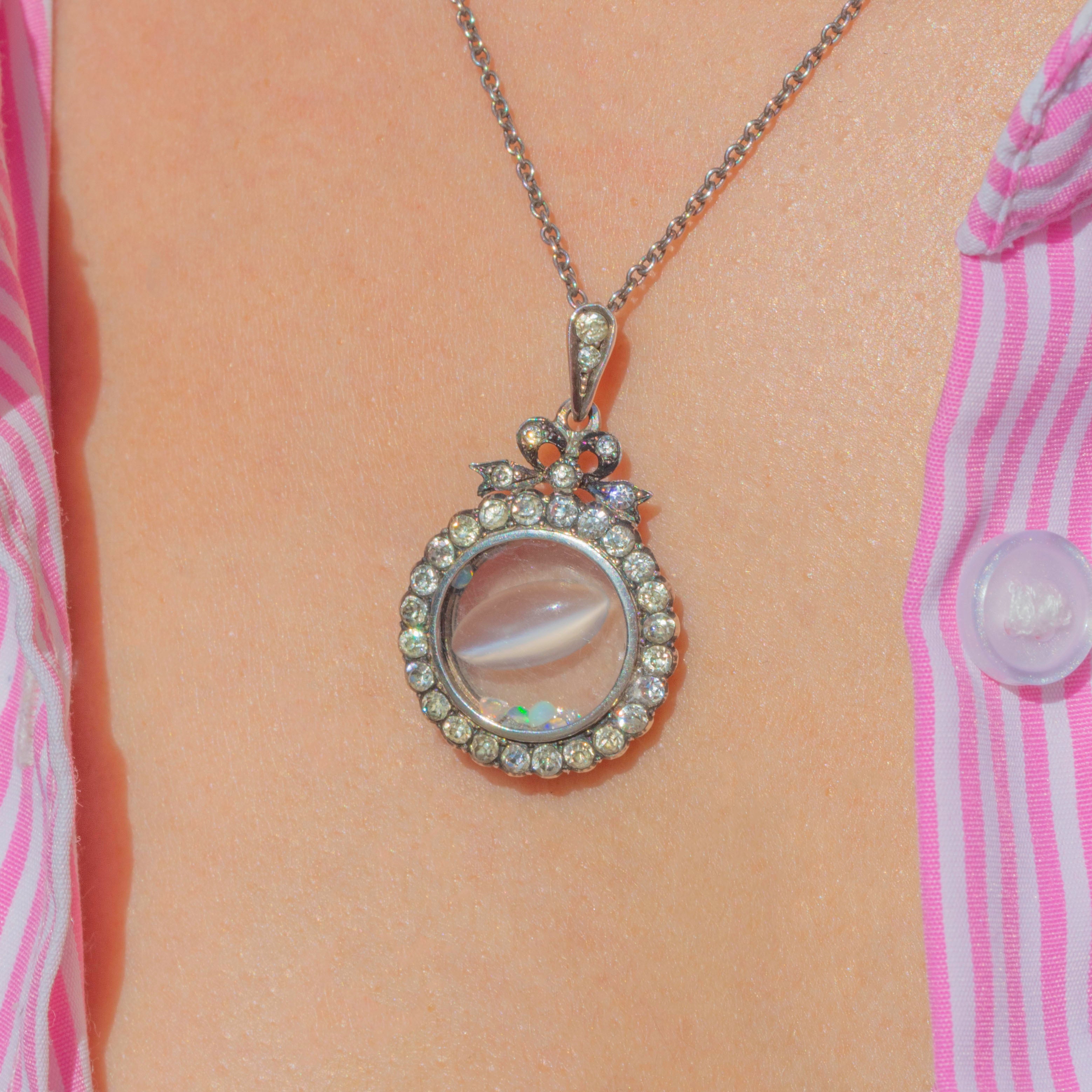 Edwardian Silver Paste Shaker Locket, with Loose Opals, Diamonds and Moonstone